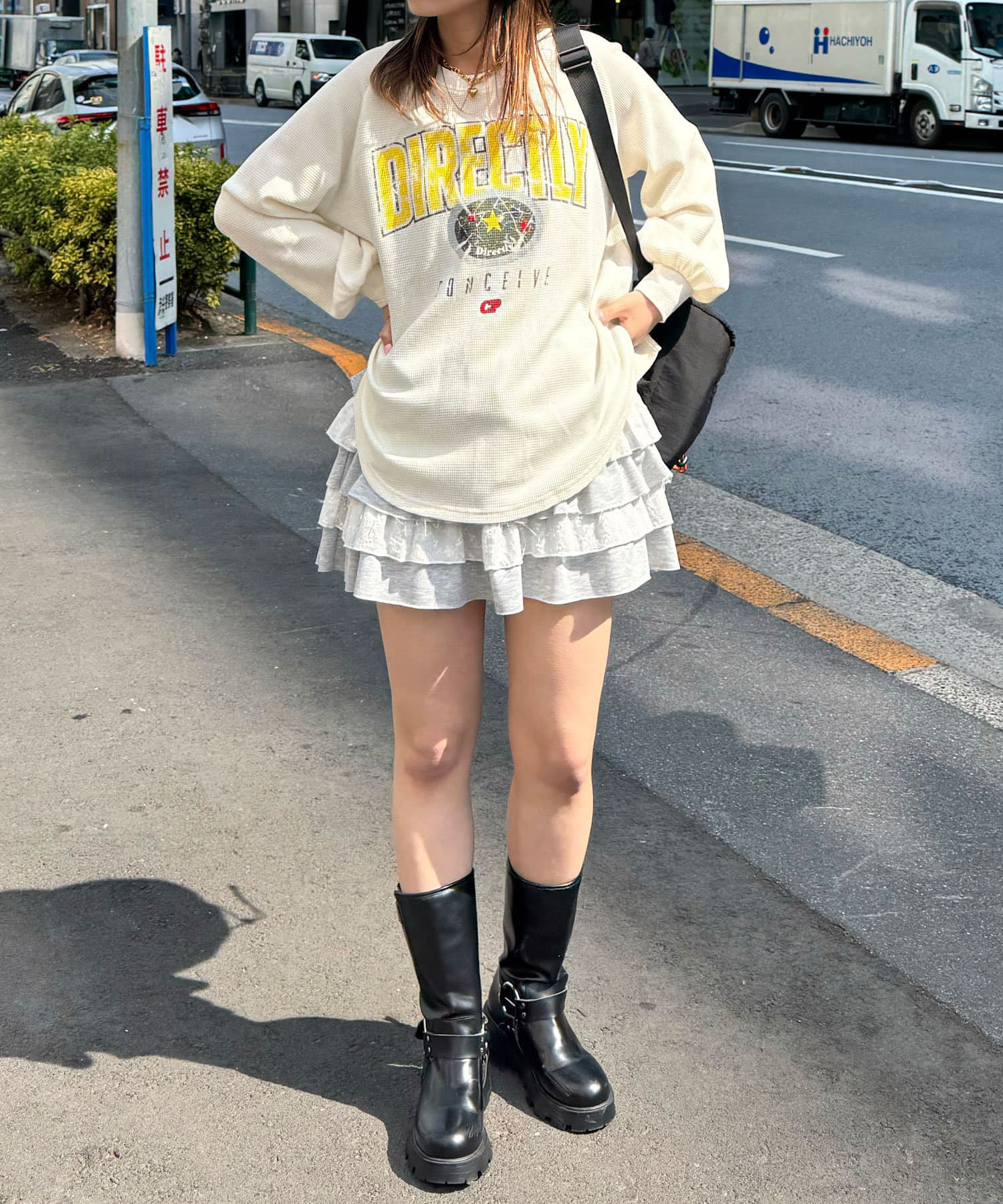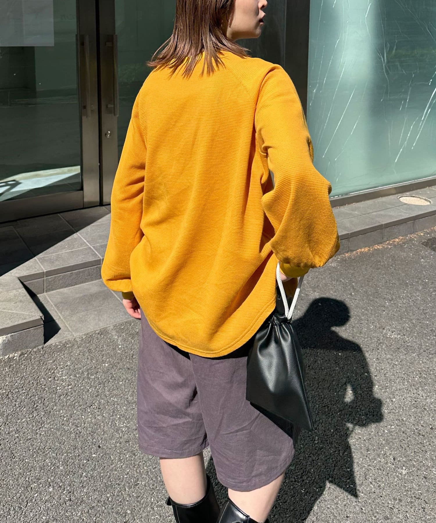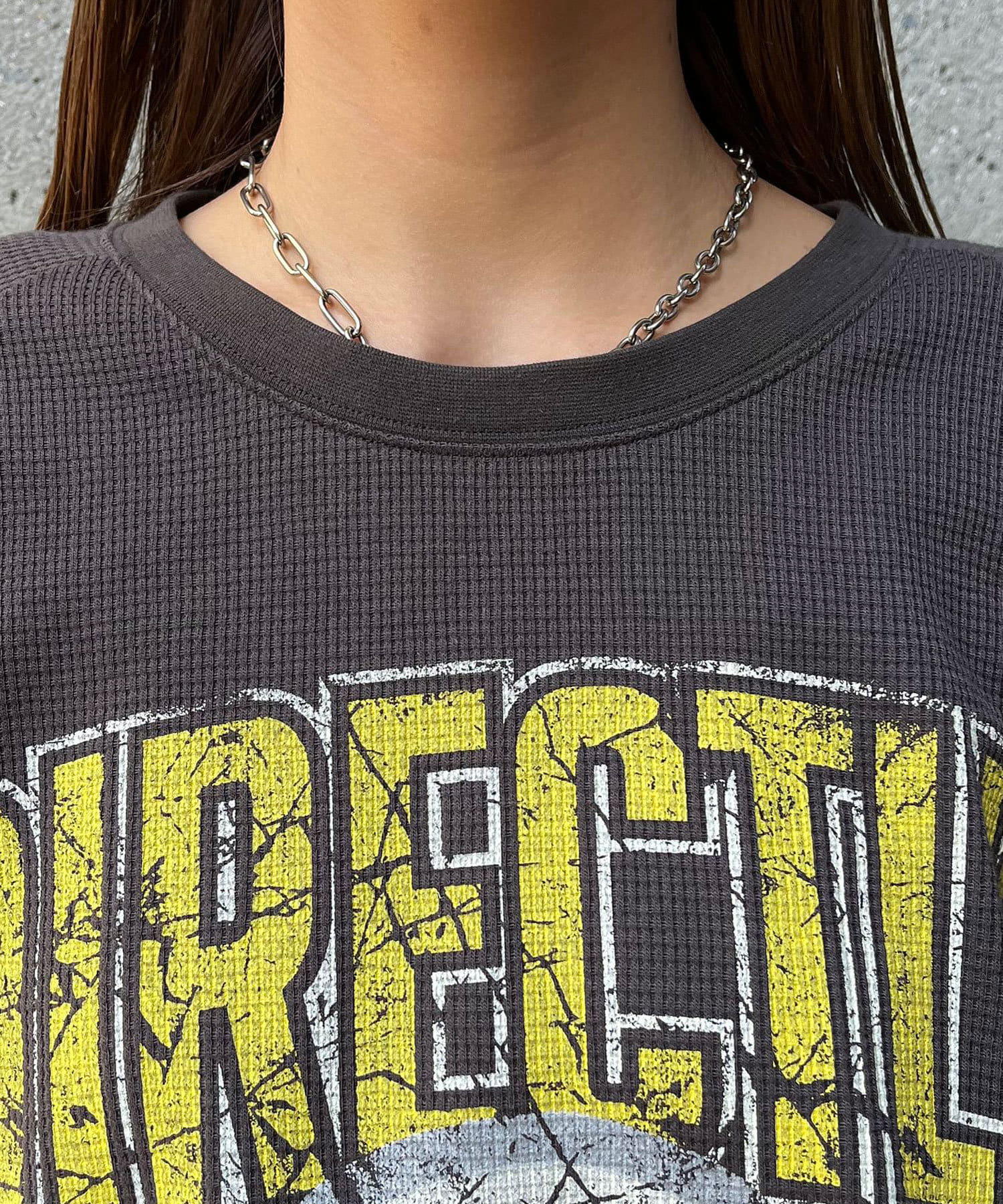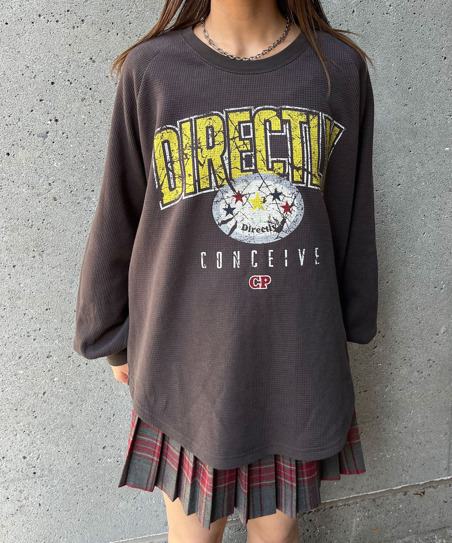 フロントの擦れプリントがレトロ可愛い!ワッフル素材のロンTが新登場!