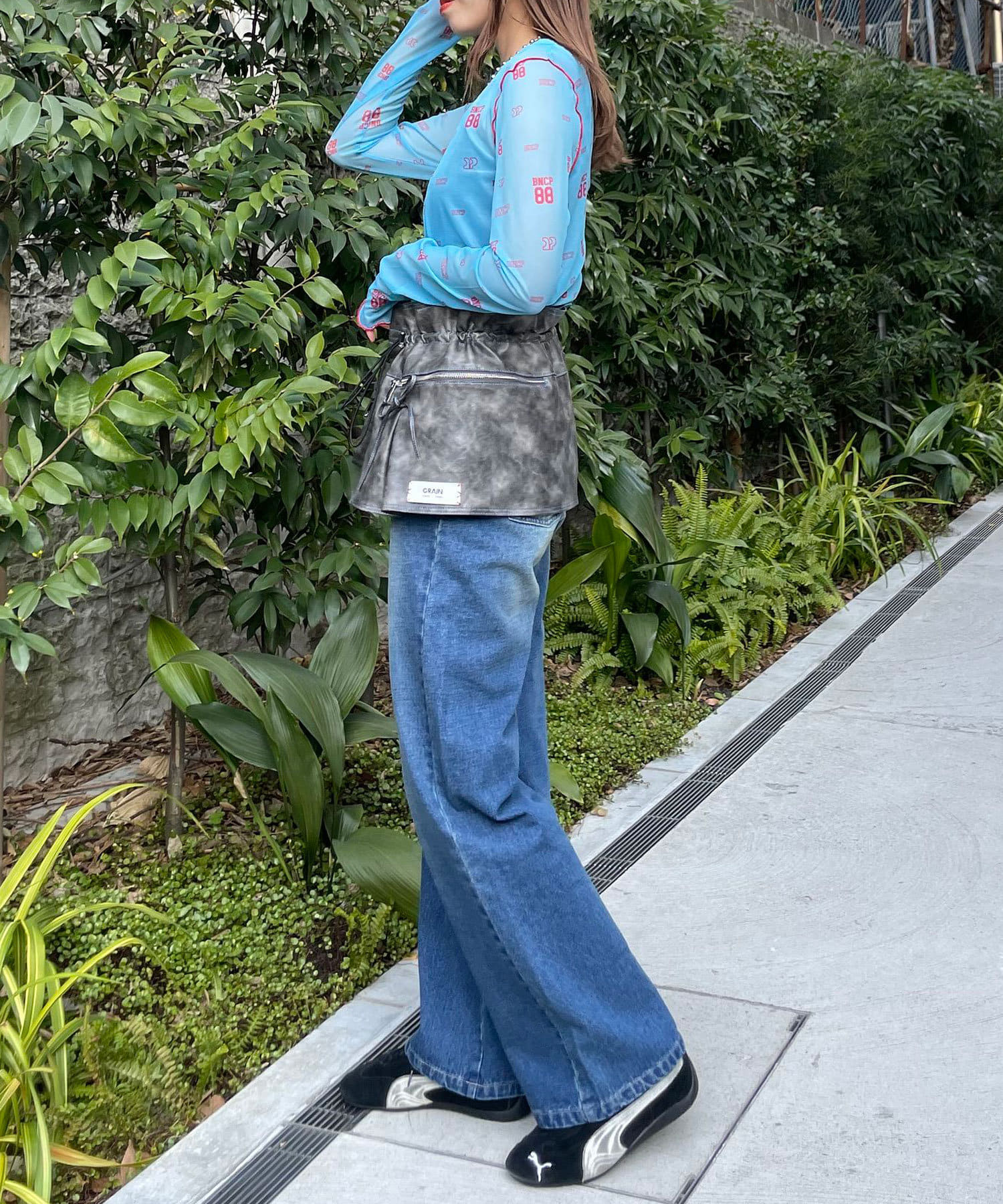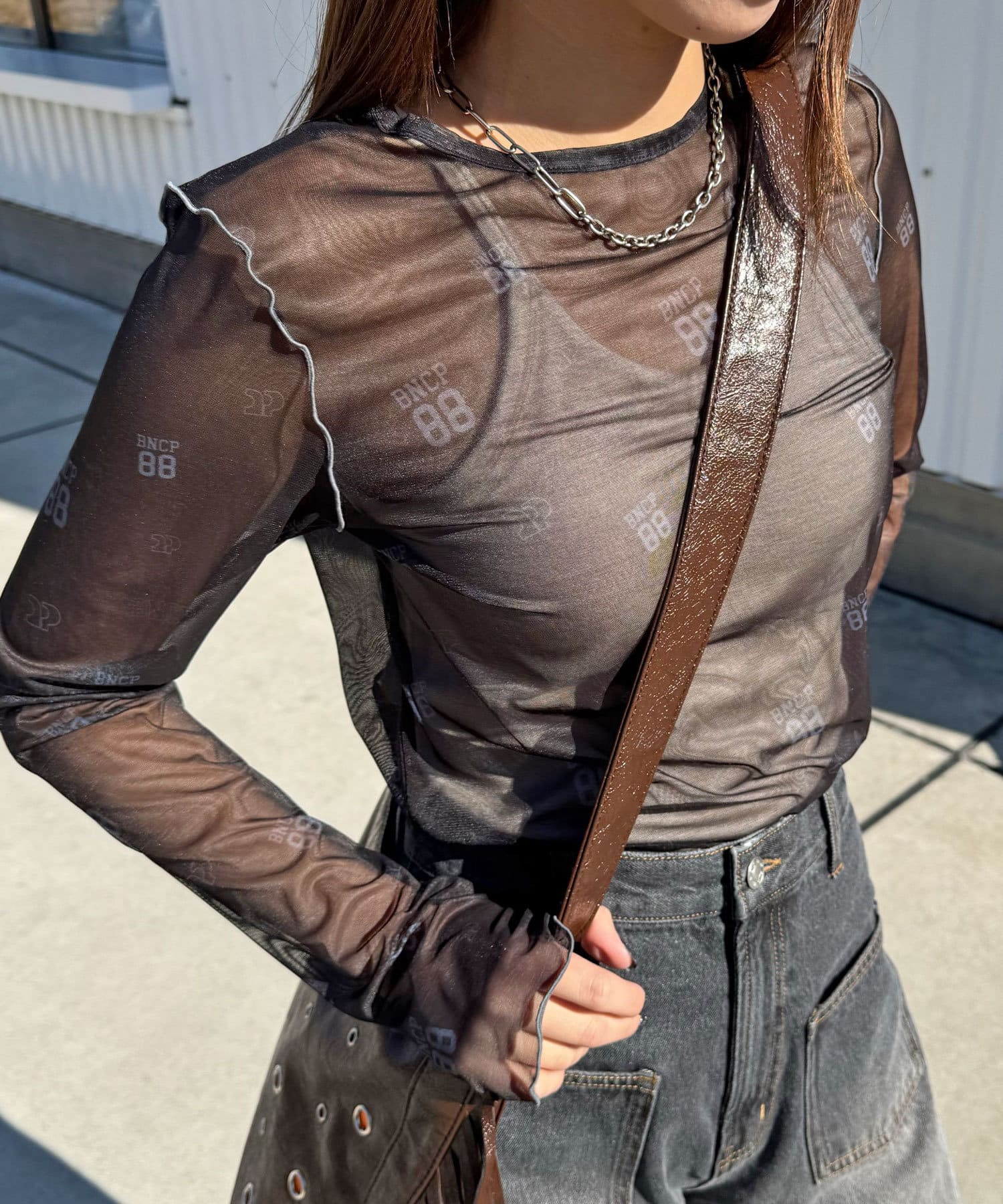 シアーメロートップスは、デニムパンツと合わせてカジュアルな抜け感を演出したり、フレアスカートと組み合わせてフェミニンに仕上げるのがおすすめです。