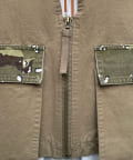 落ち着いたアースカラーのベースに、チョコチップカモのアクセントが映え、シンプルながら存在感のある一着です。