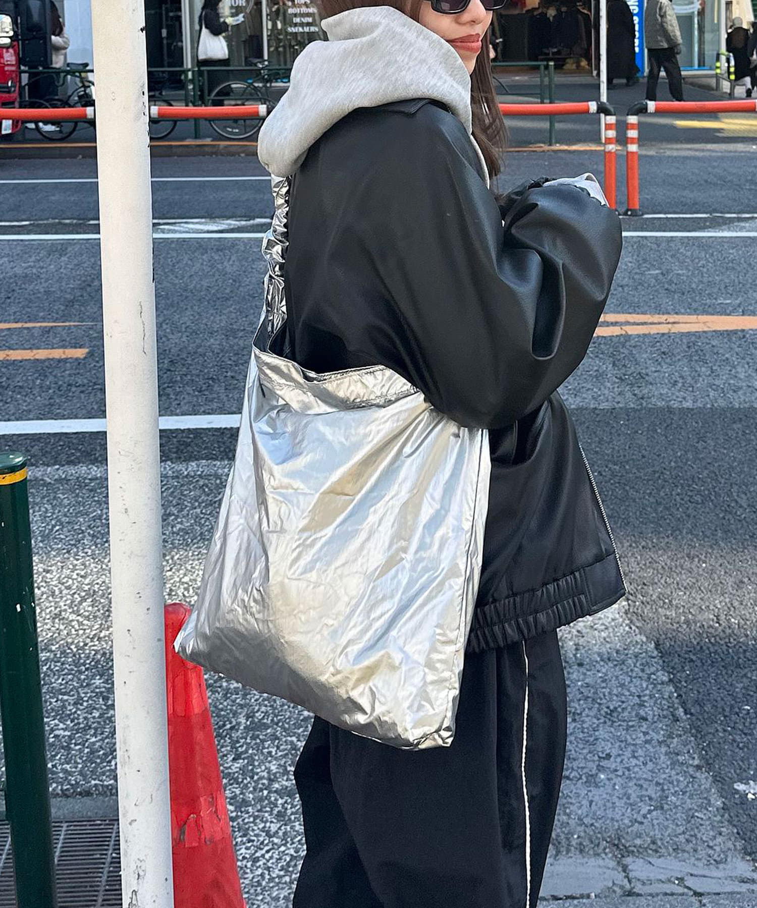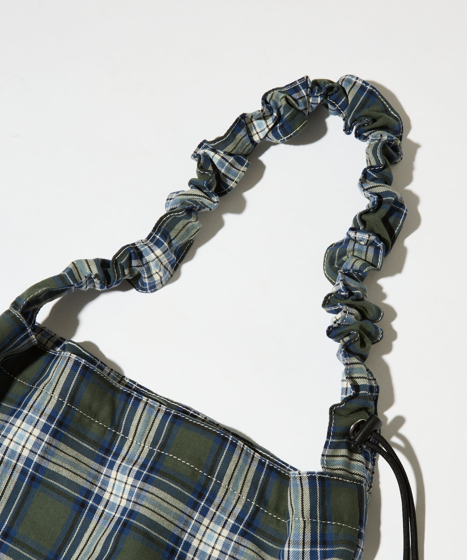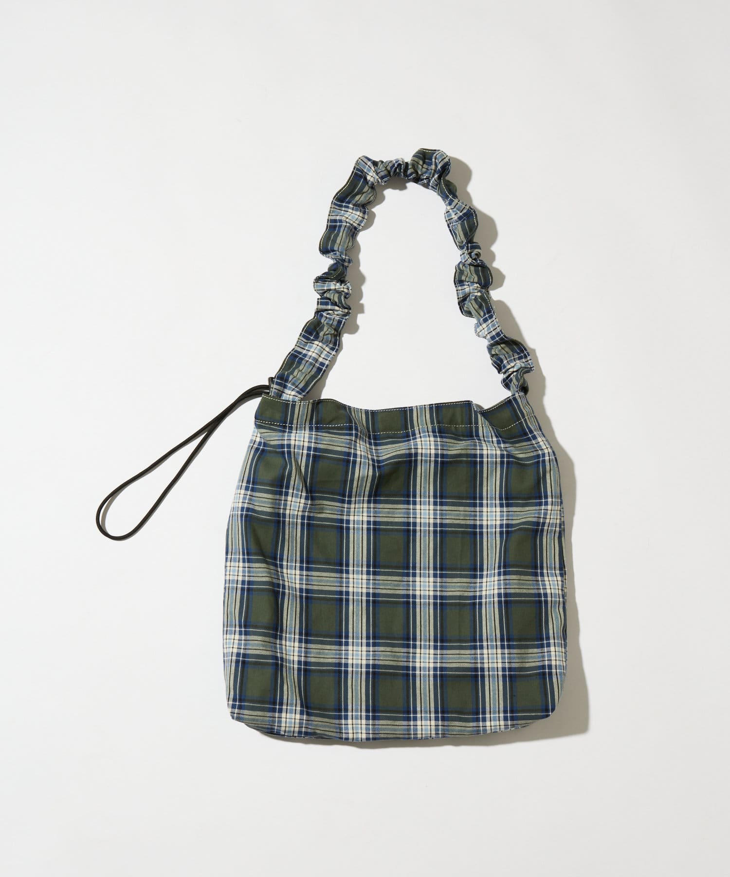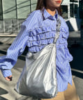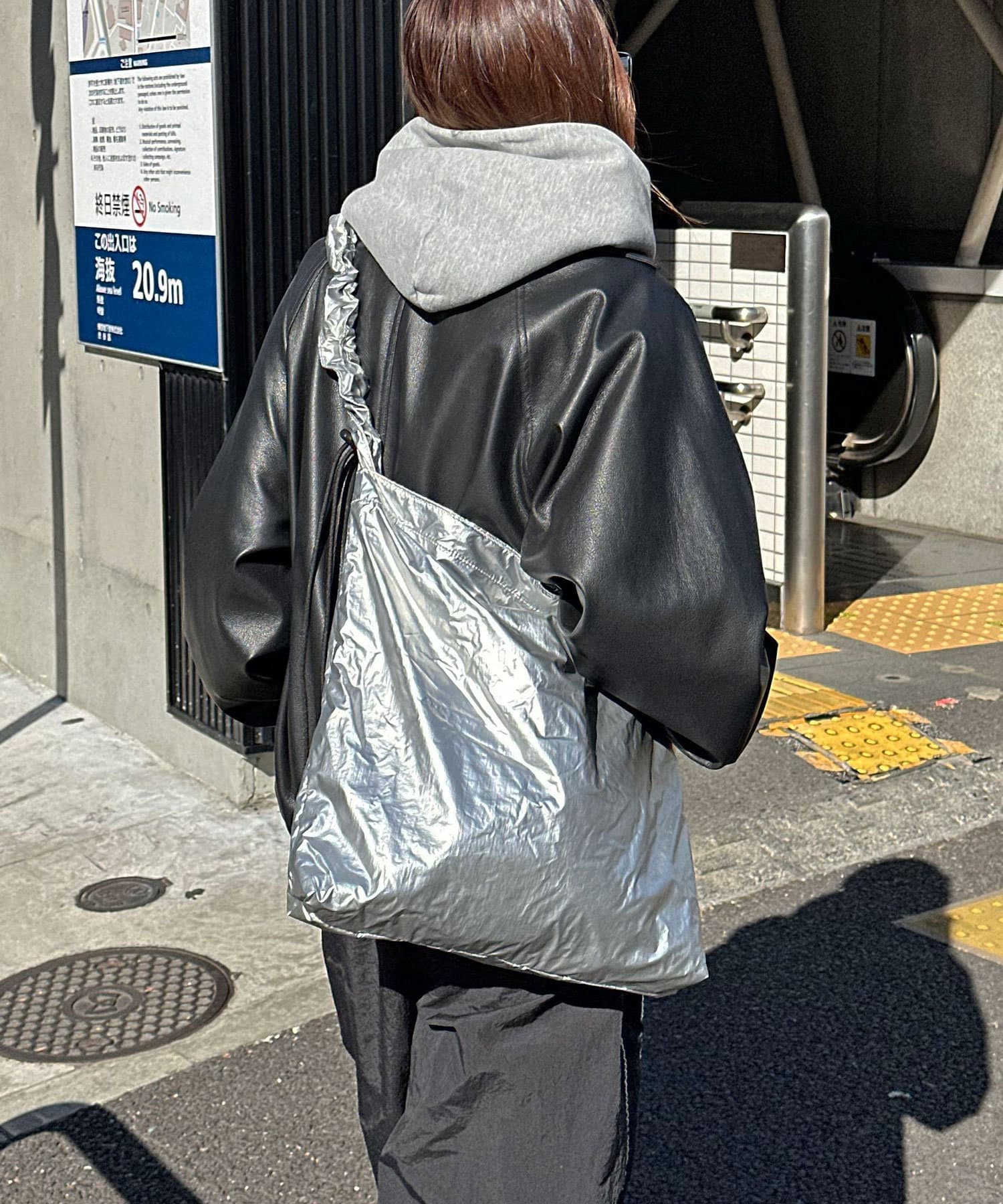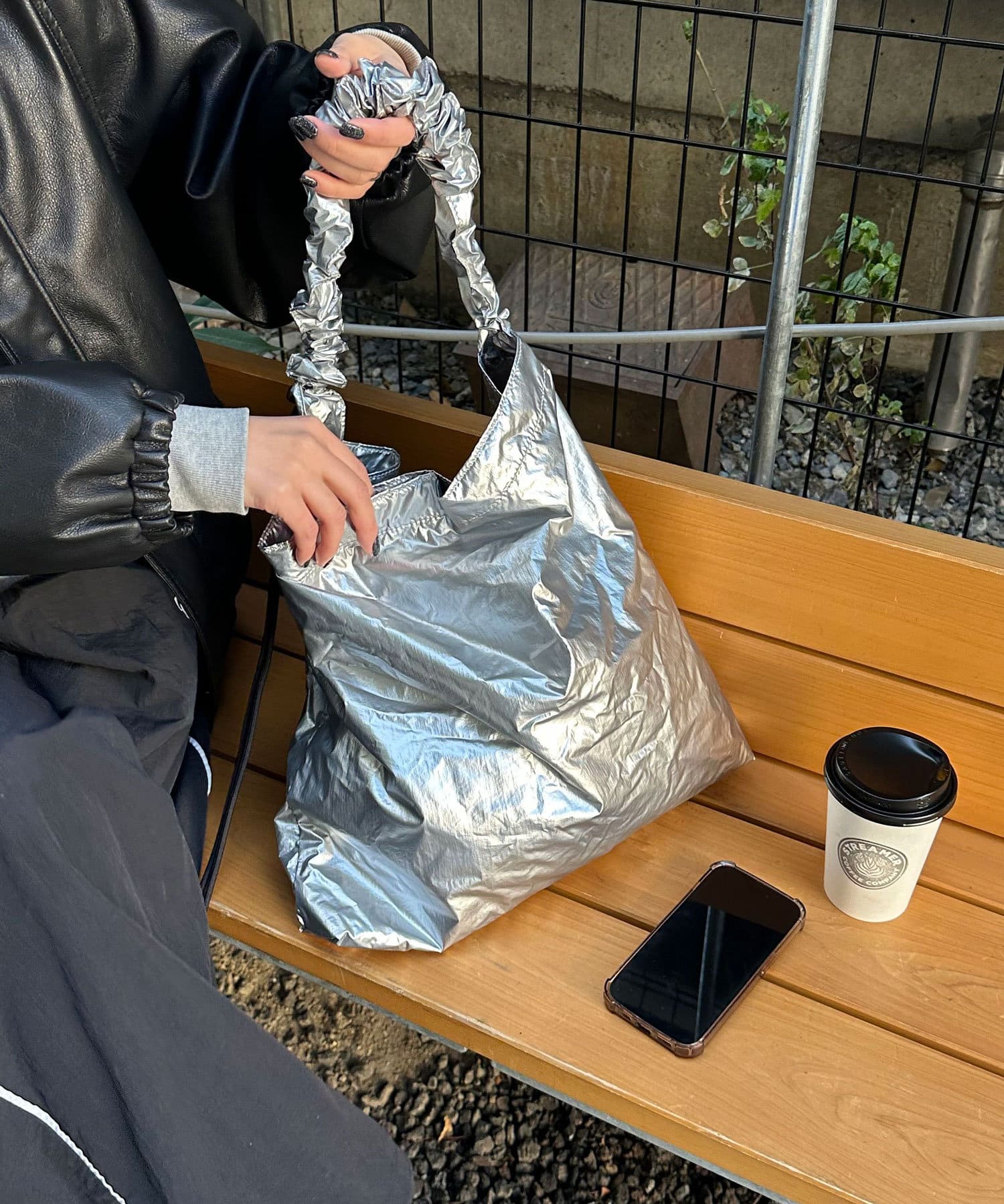 シンプルながらトレンド感を引き立てるギャザーデザインが特徴のショルダーバッグ。