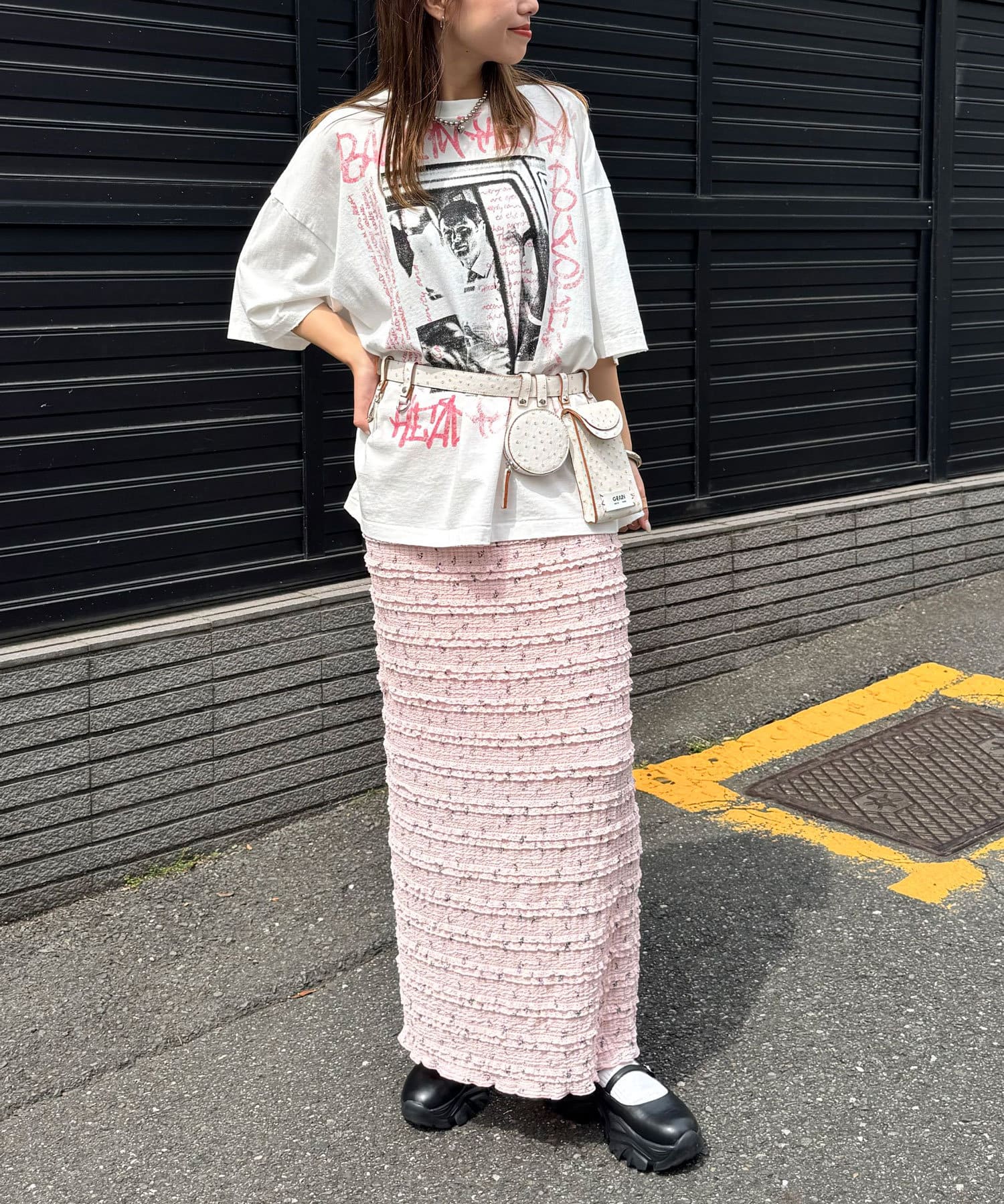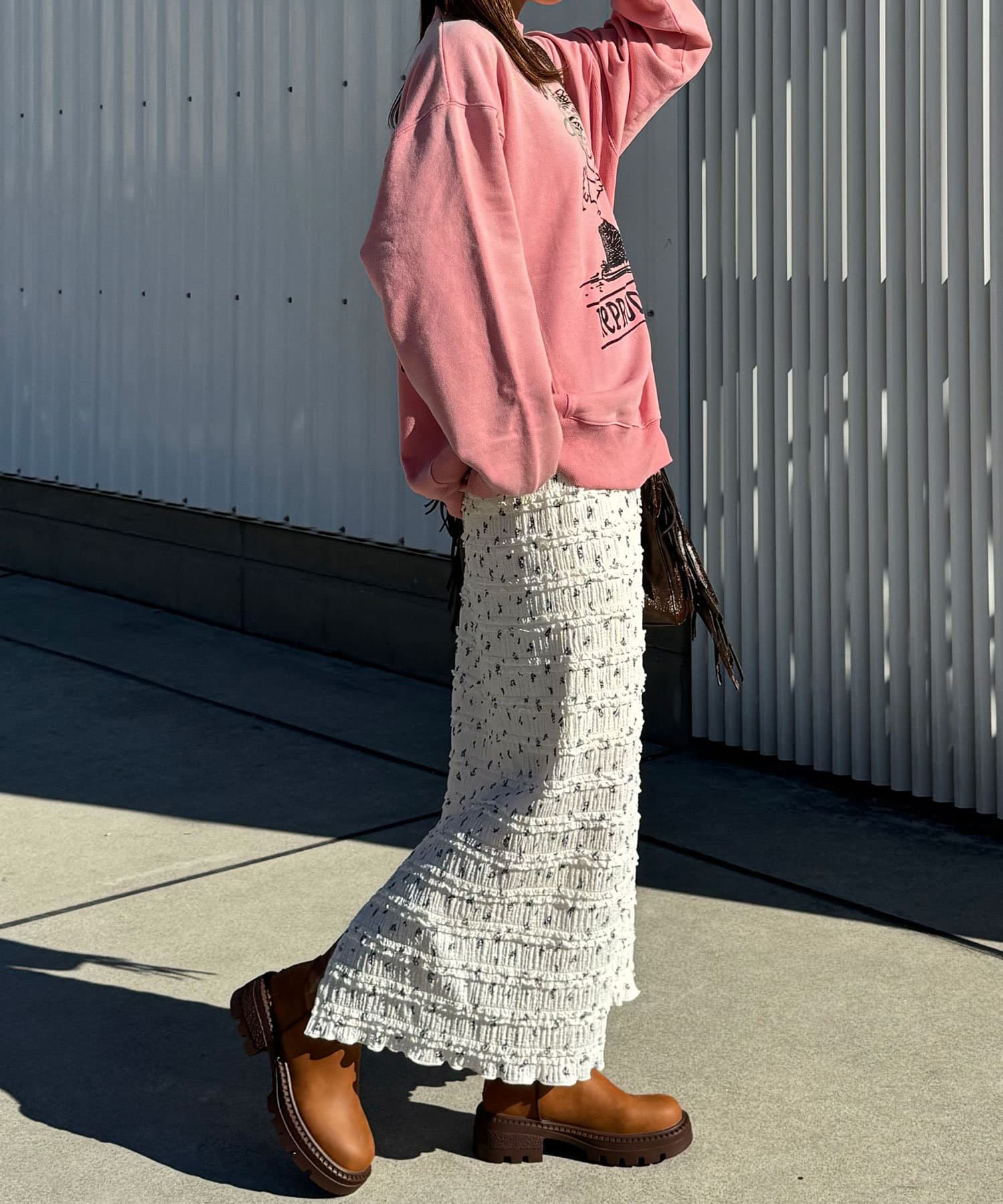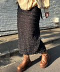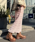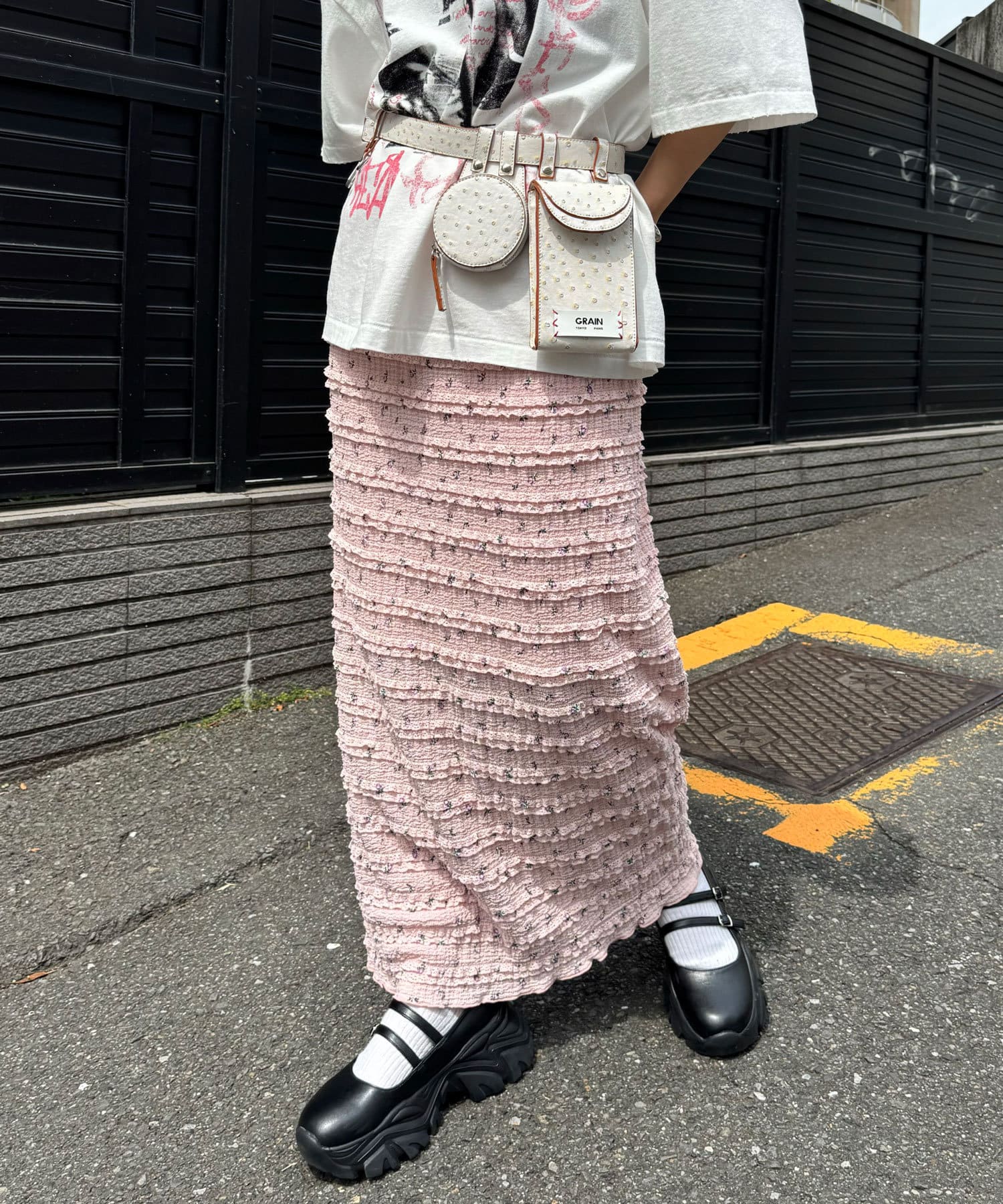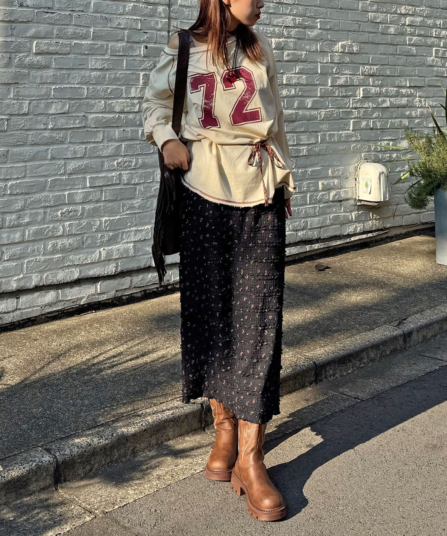繊細な小花柄とフリルディテールが魅力のIラインスカート。
