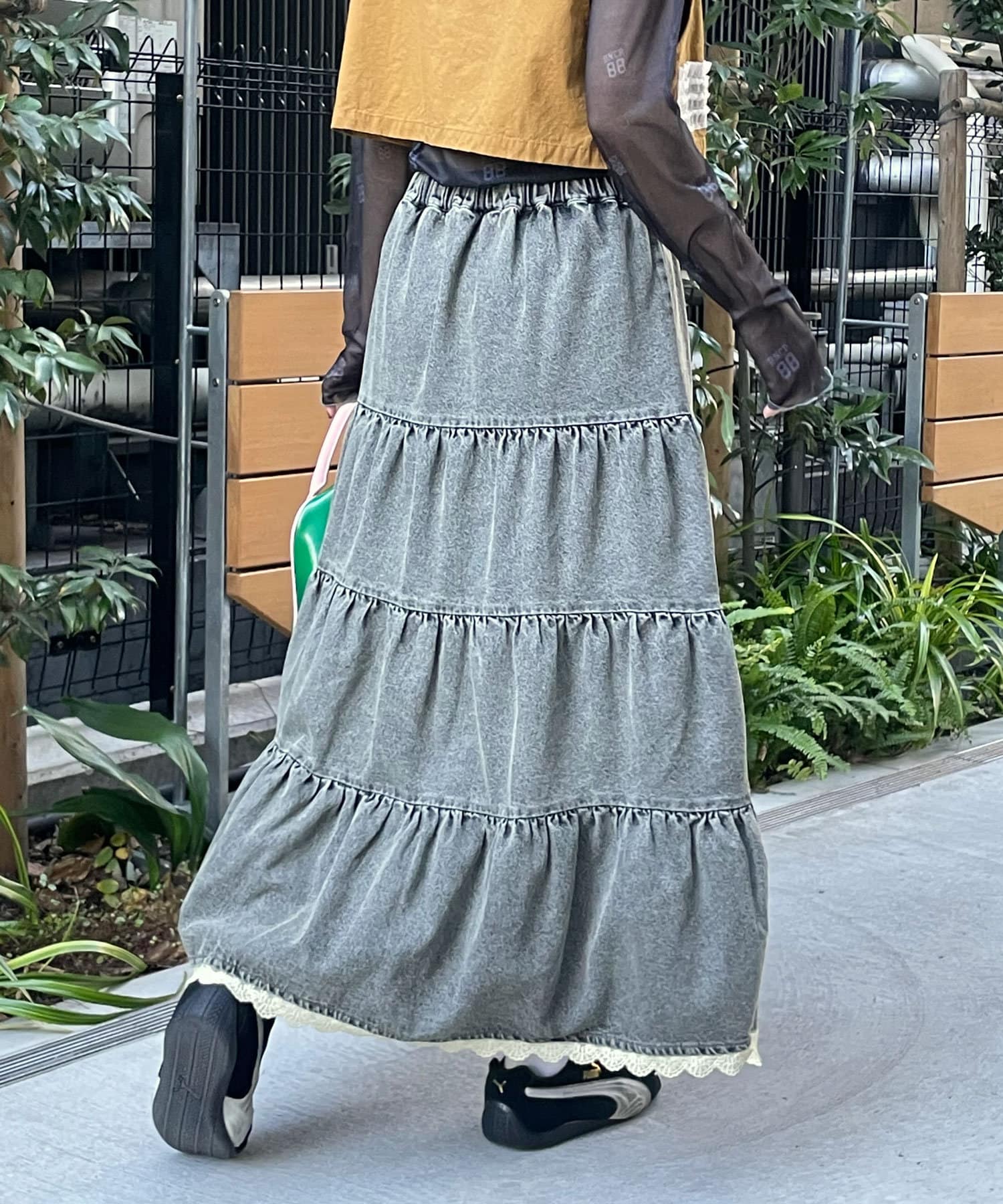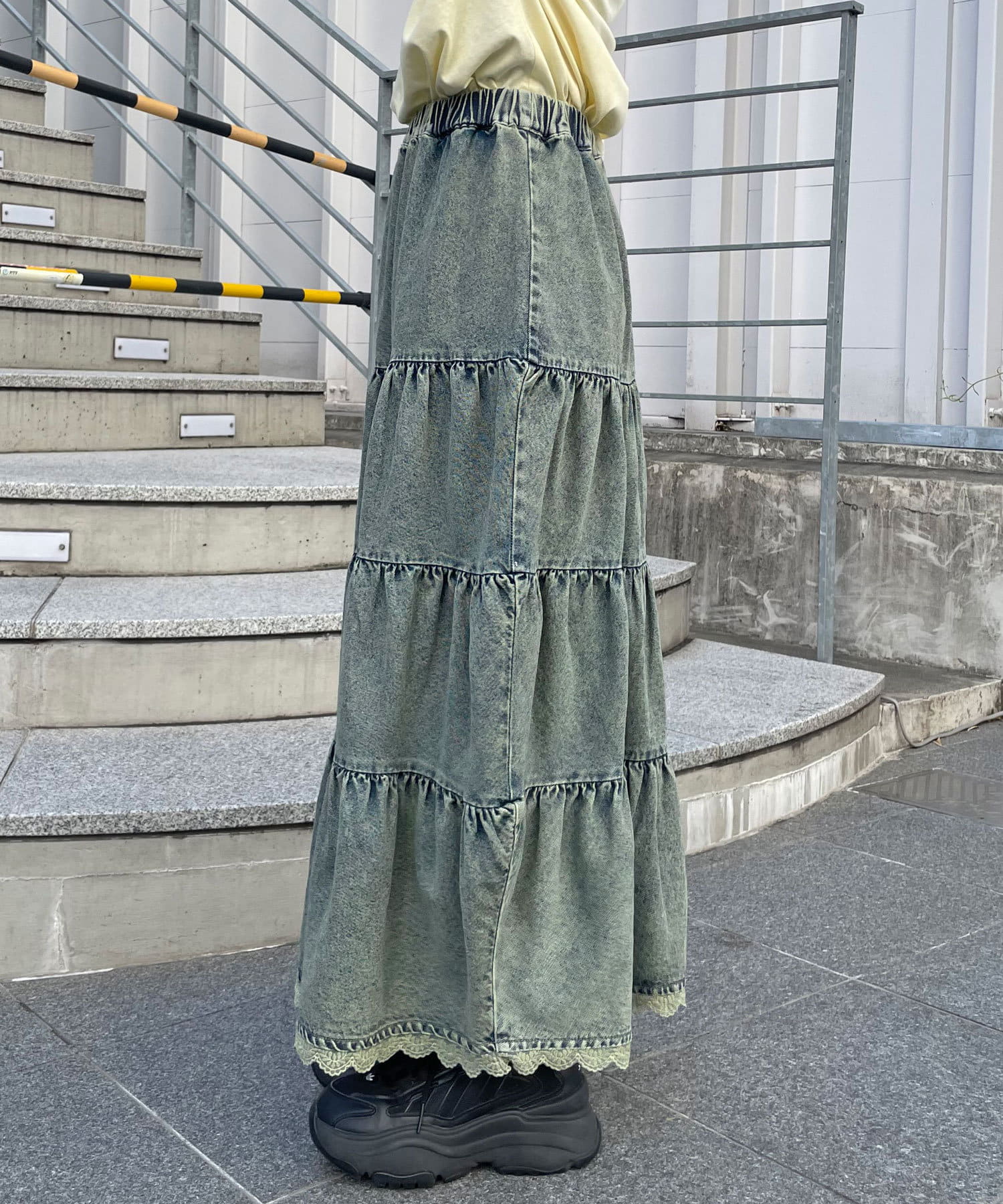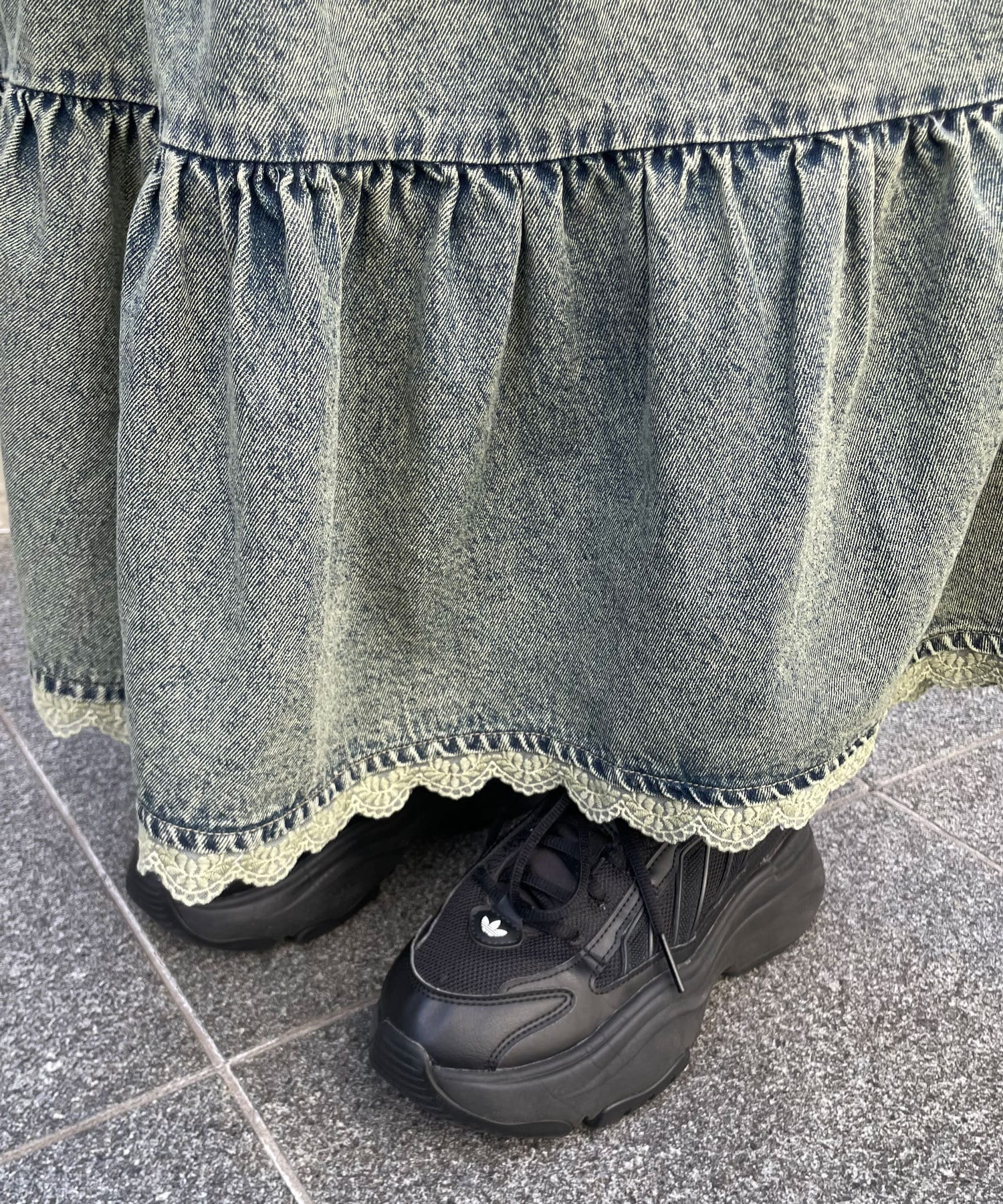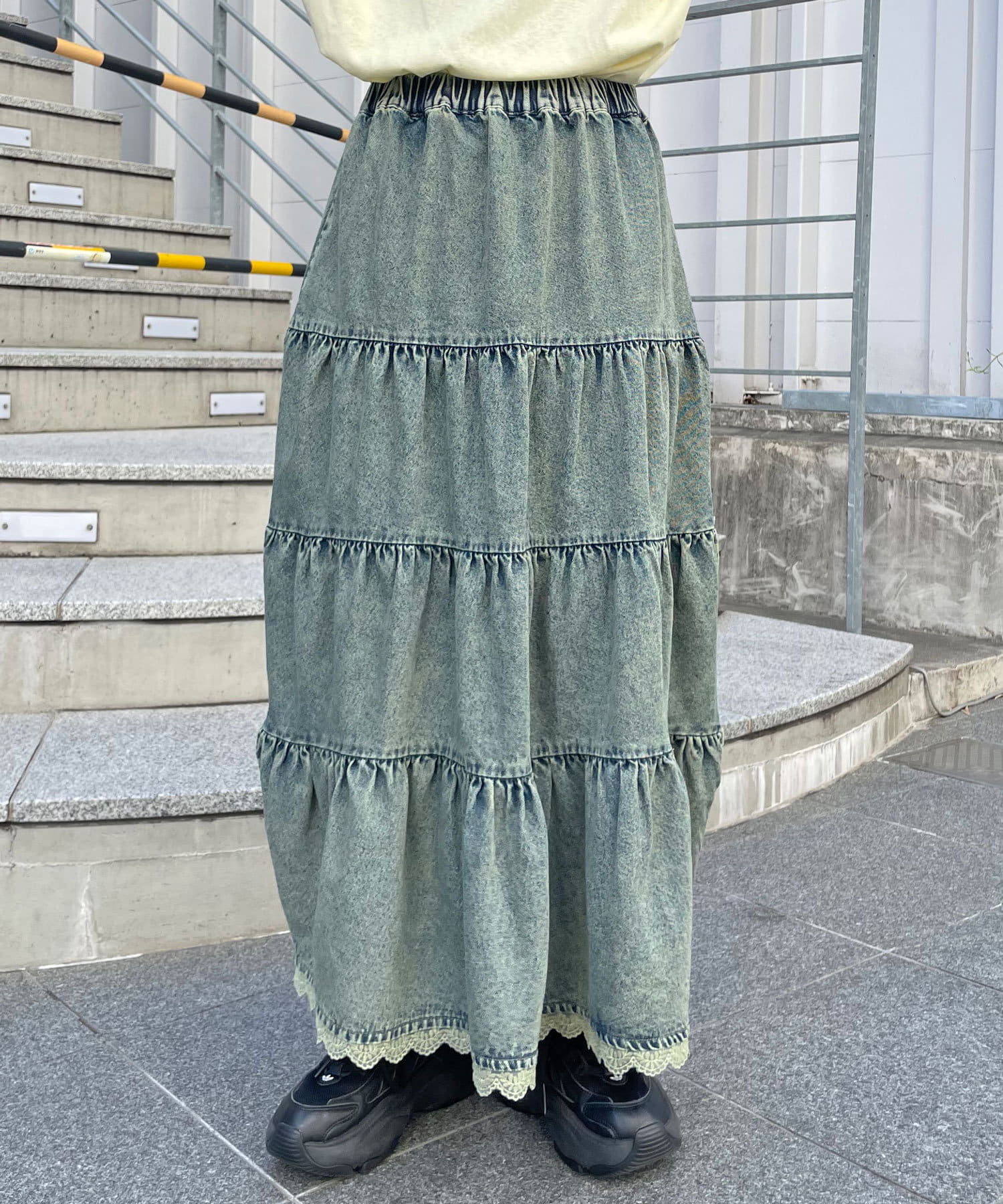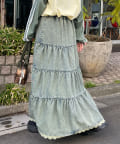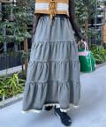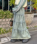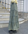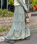 裾レースオーバーダイデニムティアードスカート
