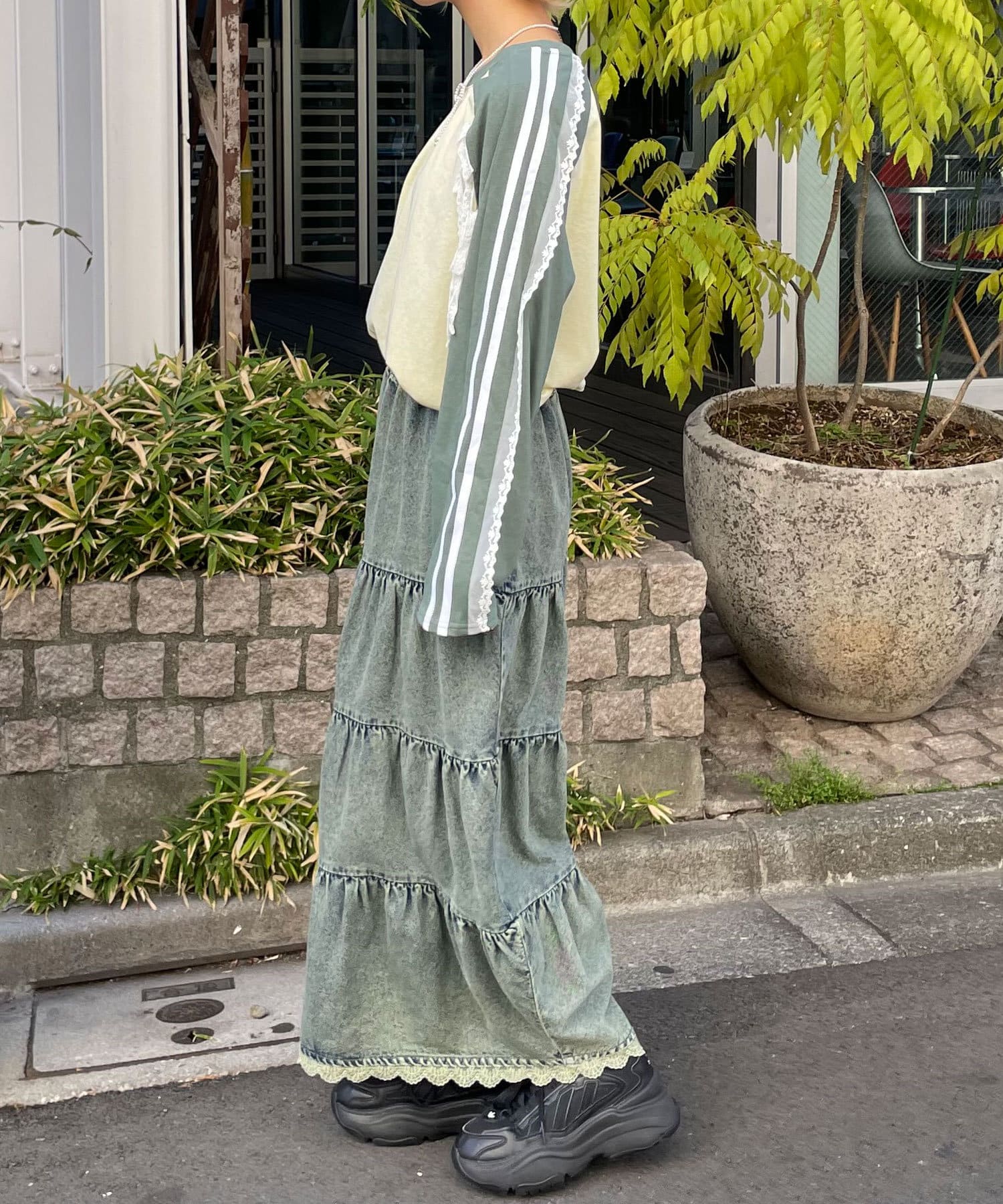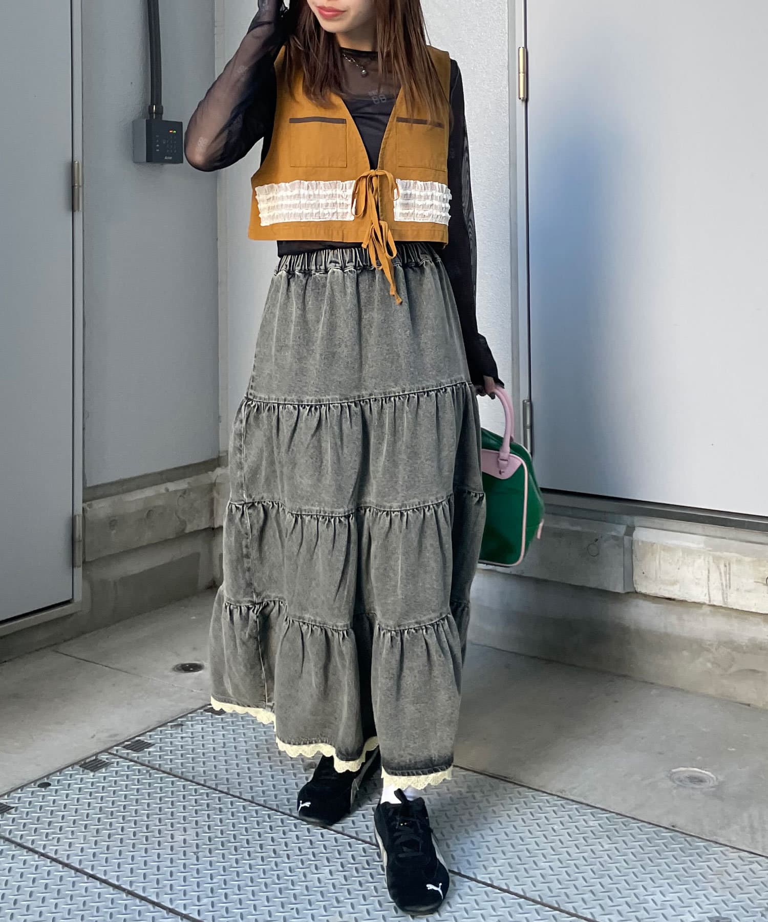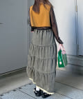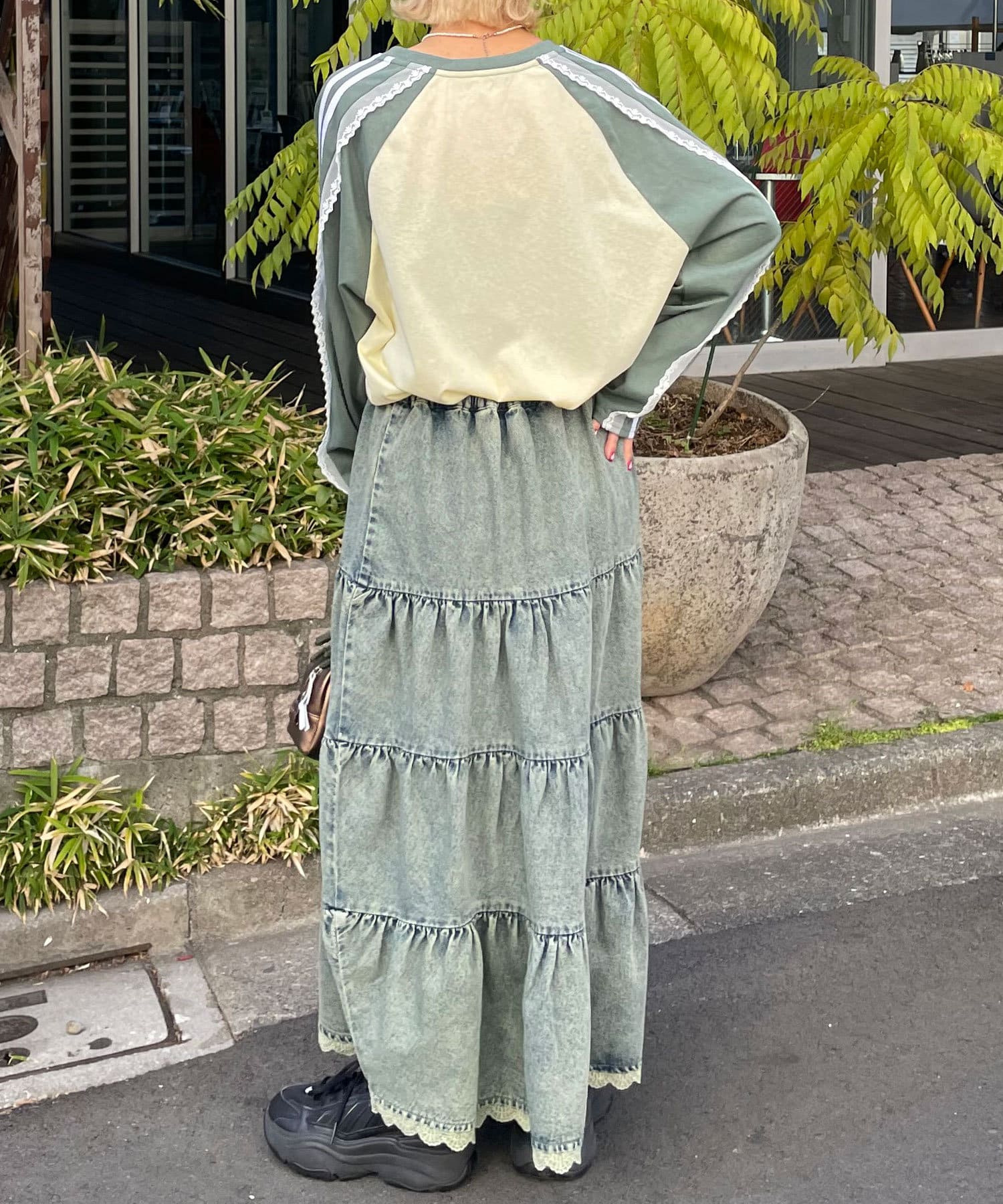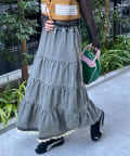 裾レースオーバーダイデニムティアードスカート