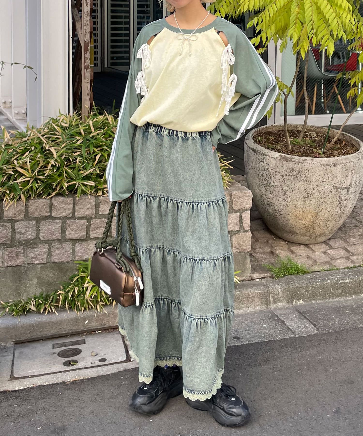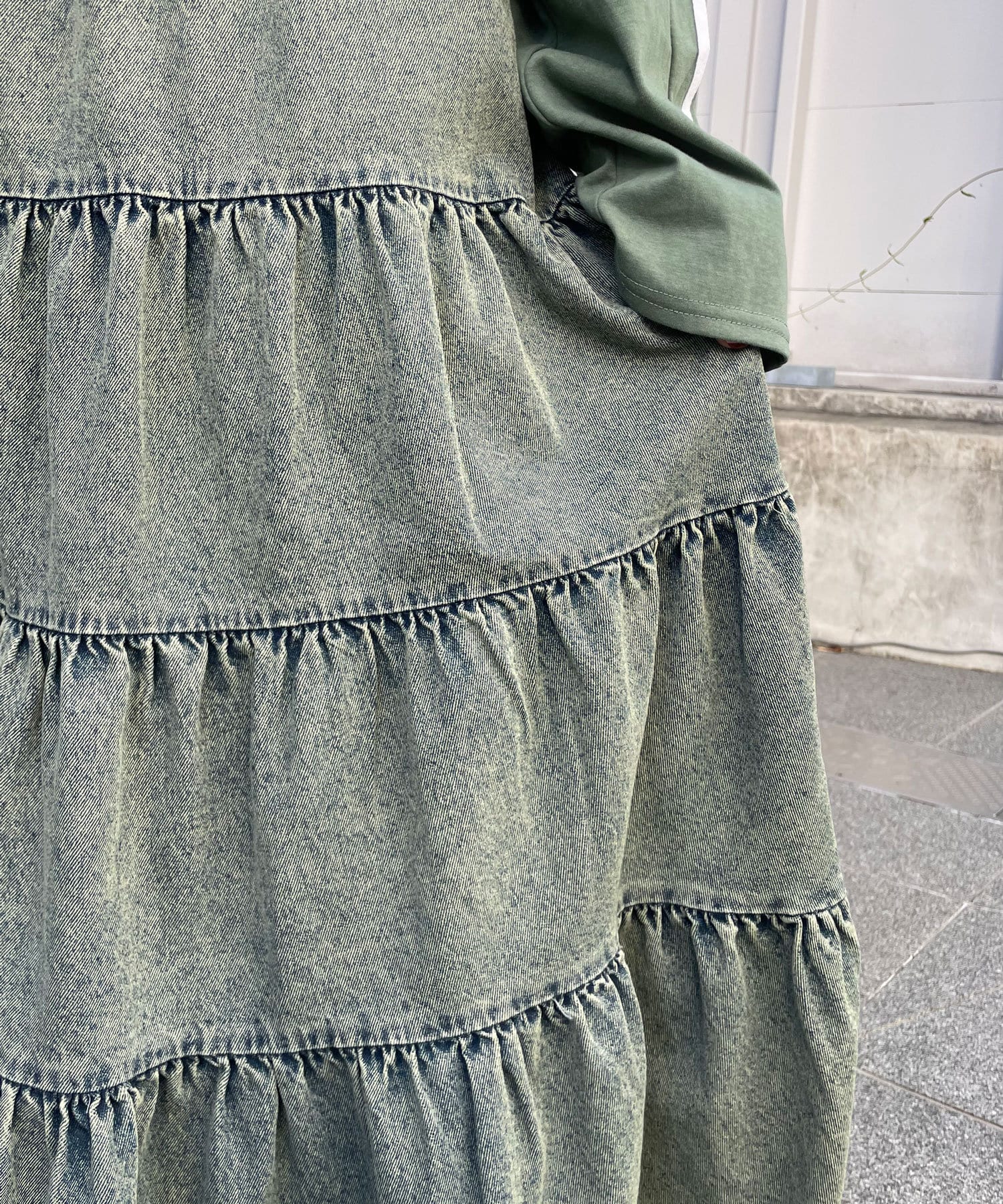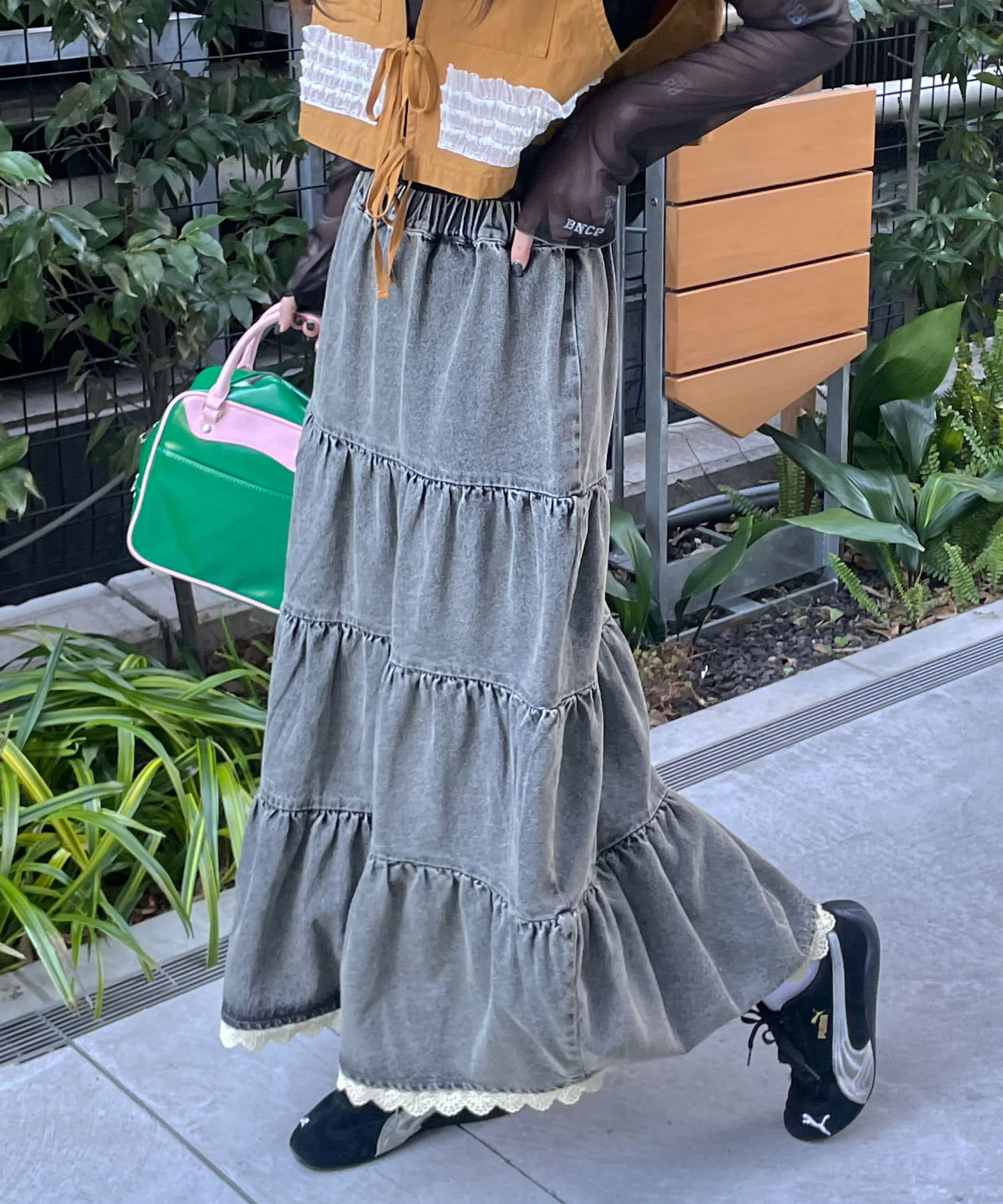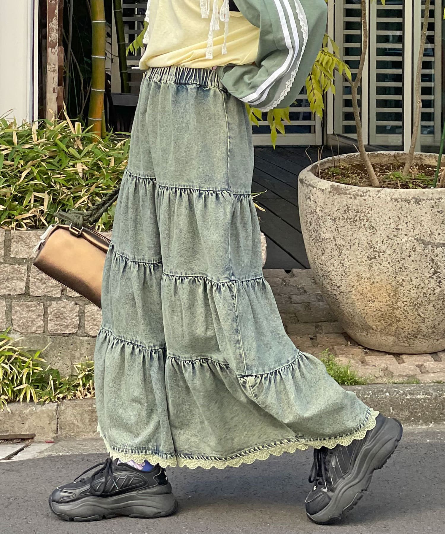 裾レースオーバーダイデニムティアードスカート