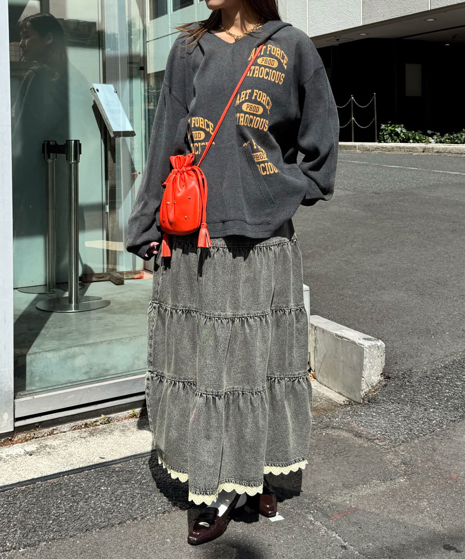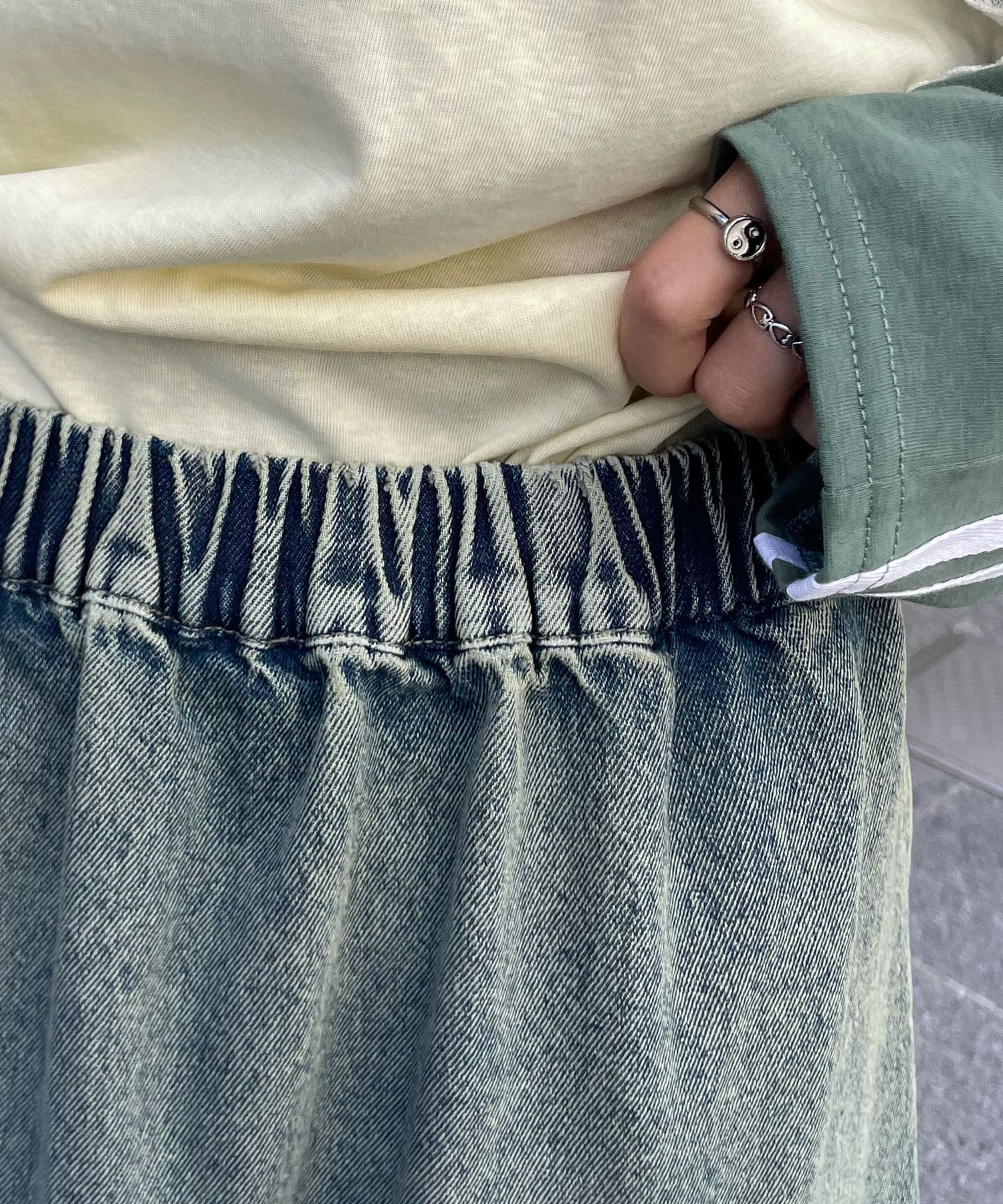 ラフなのに可愛いフリルが効いた大人デニムスカート