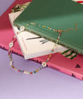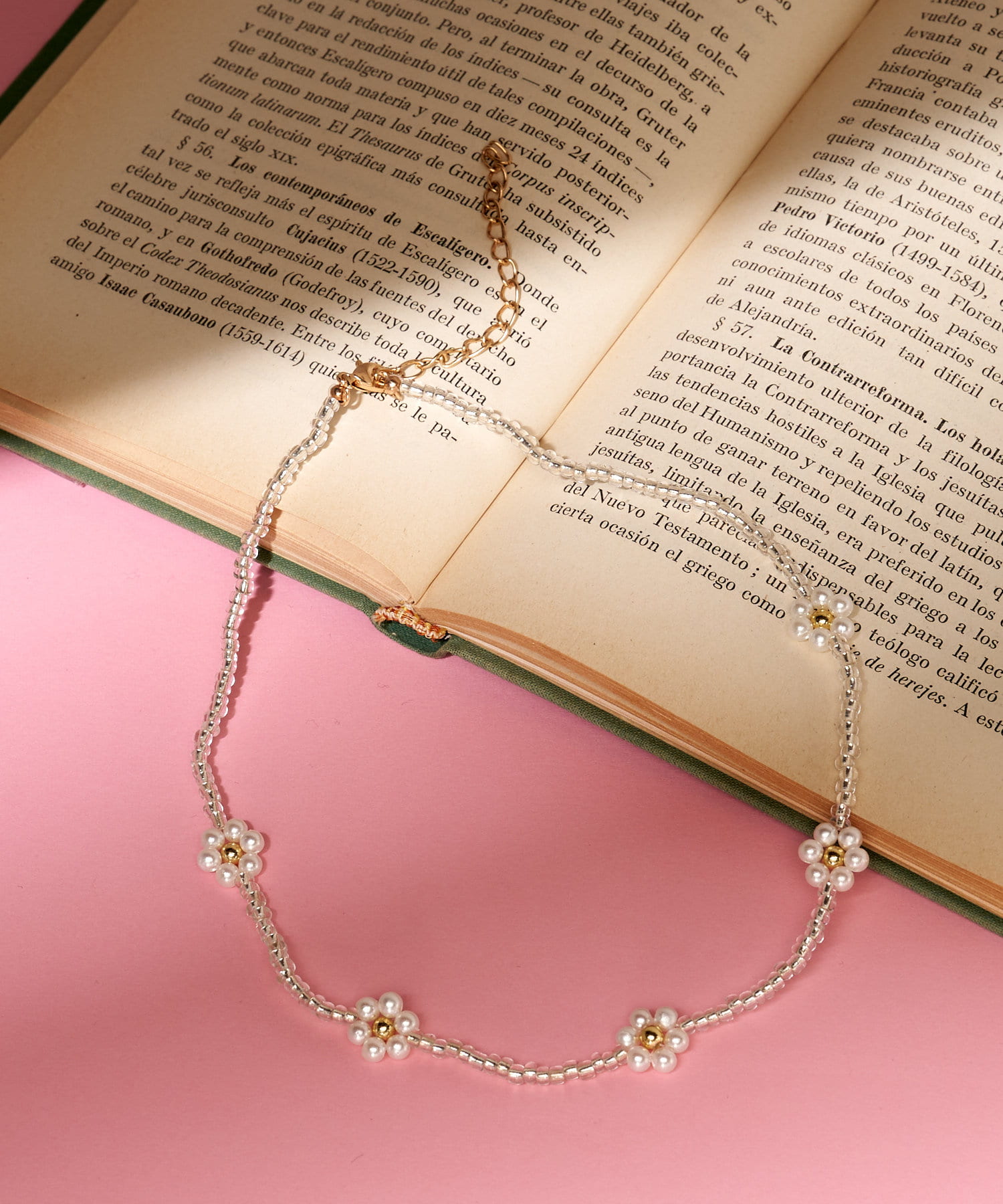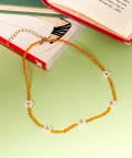 小さなビーズフラワーをあしらった、レトロポップなムード漂うネックレス。