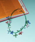 小さな花々が連なった、繊細で可憐なフラワービーズネックレス。