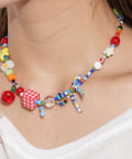 ひとつひとつ表情の異なるビーズを組み合わせた、遊び心あふれるカラフルネックレス。