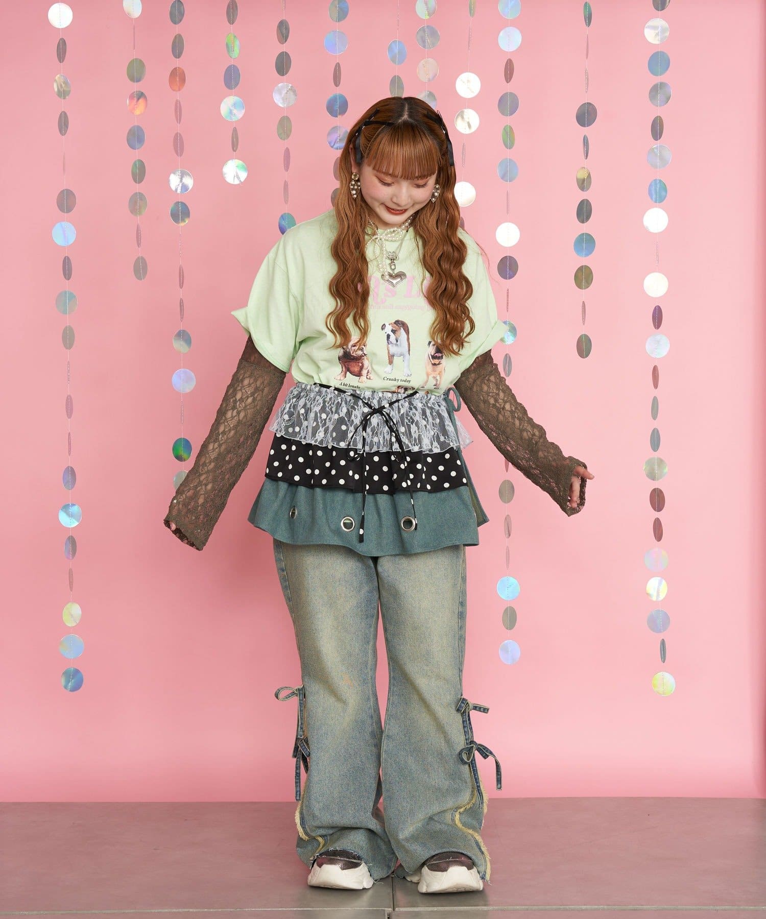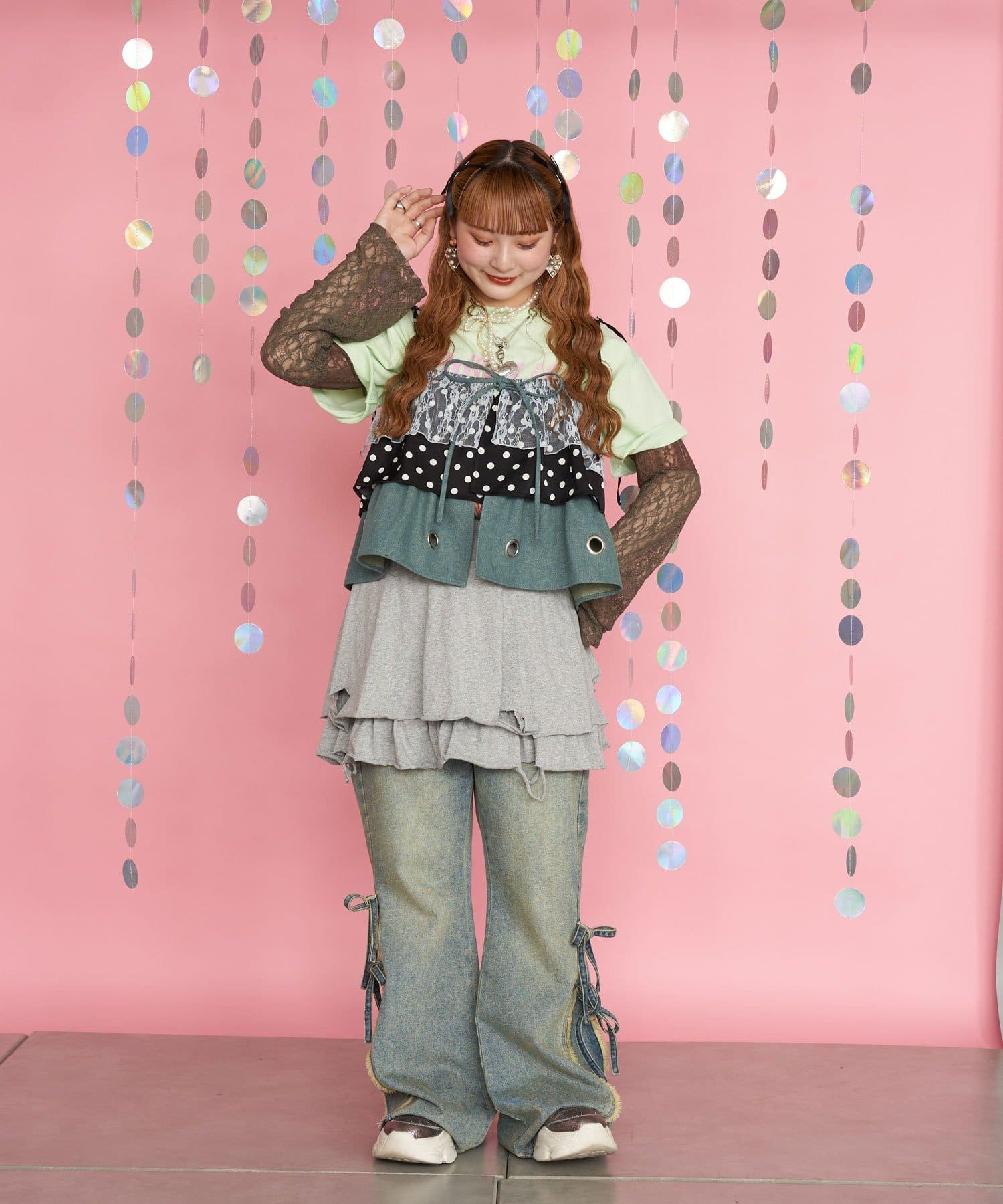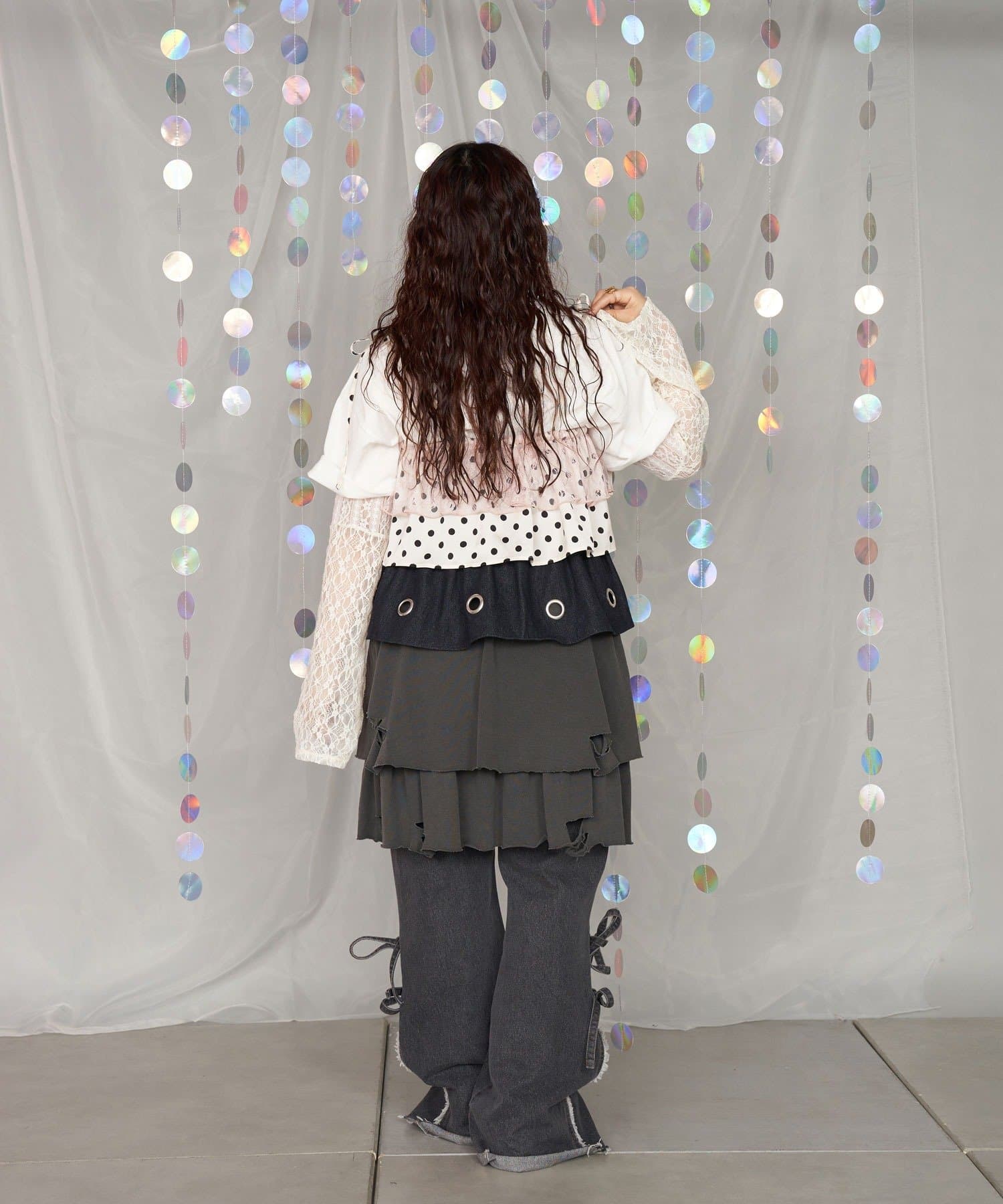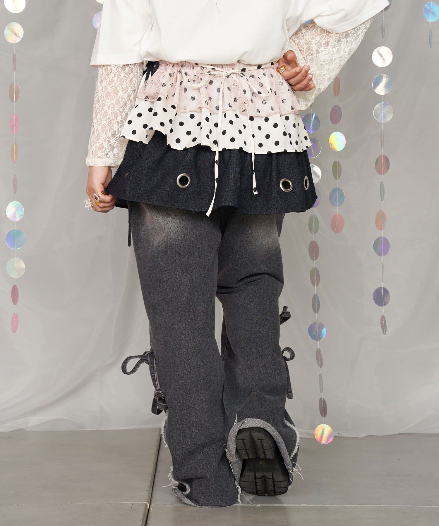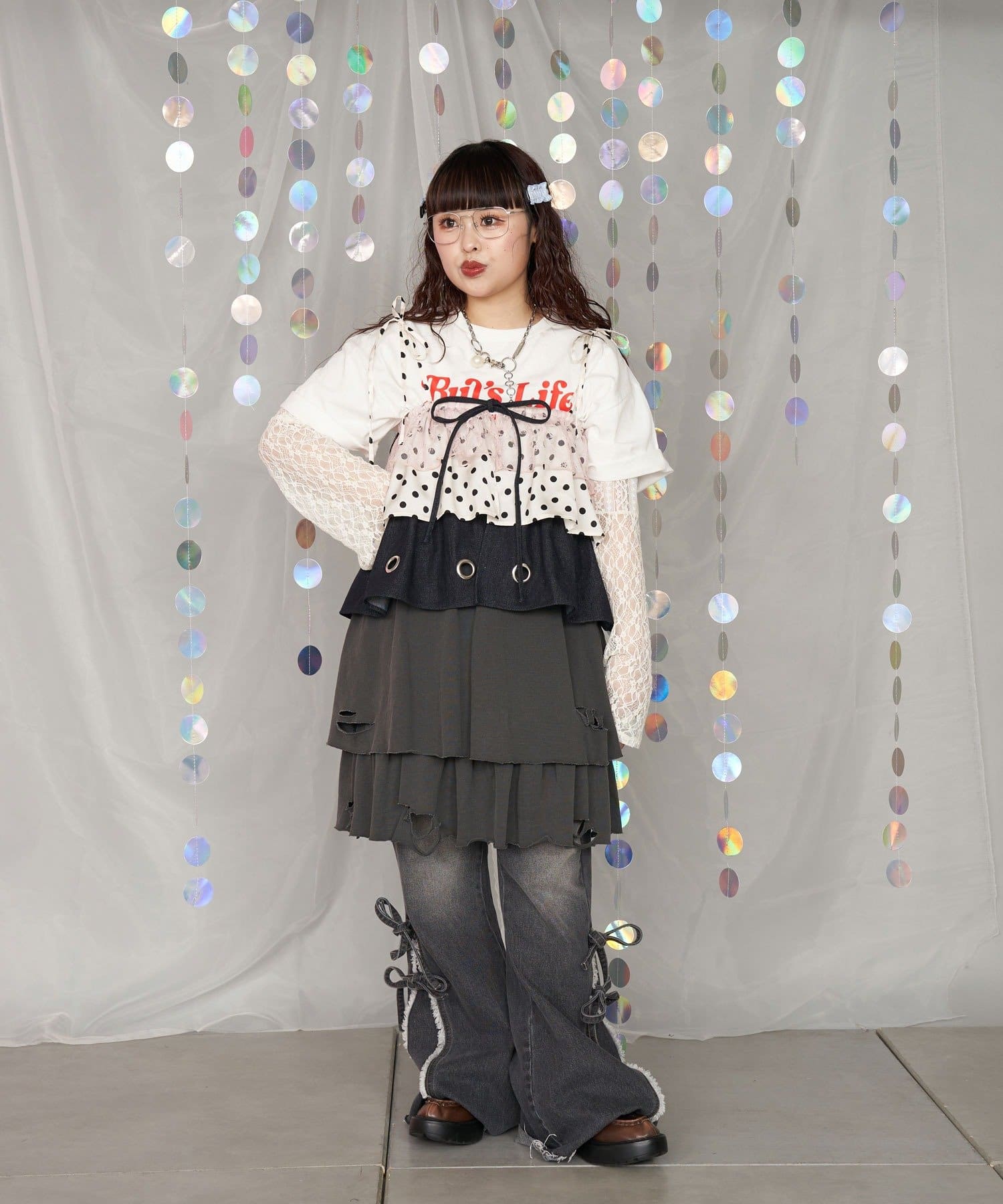 レース・ドット・デニムの三段デザインが個性的なアクセントに!