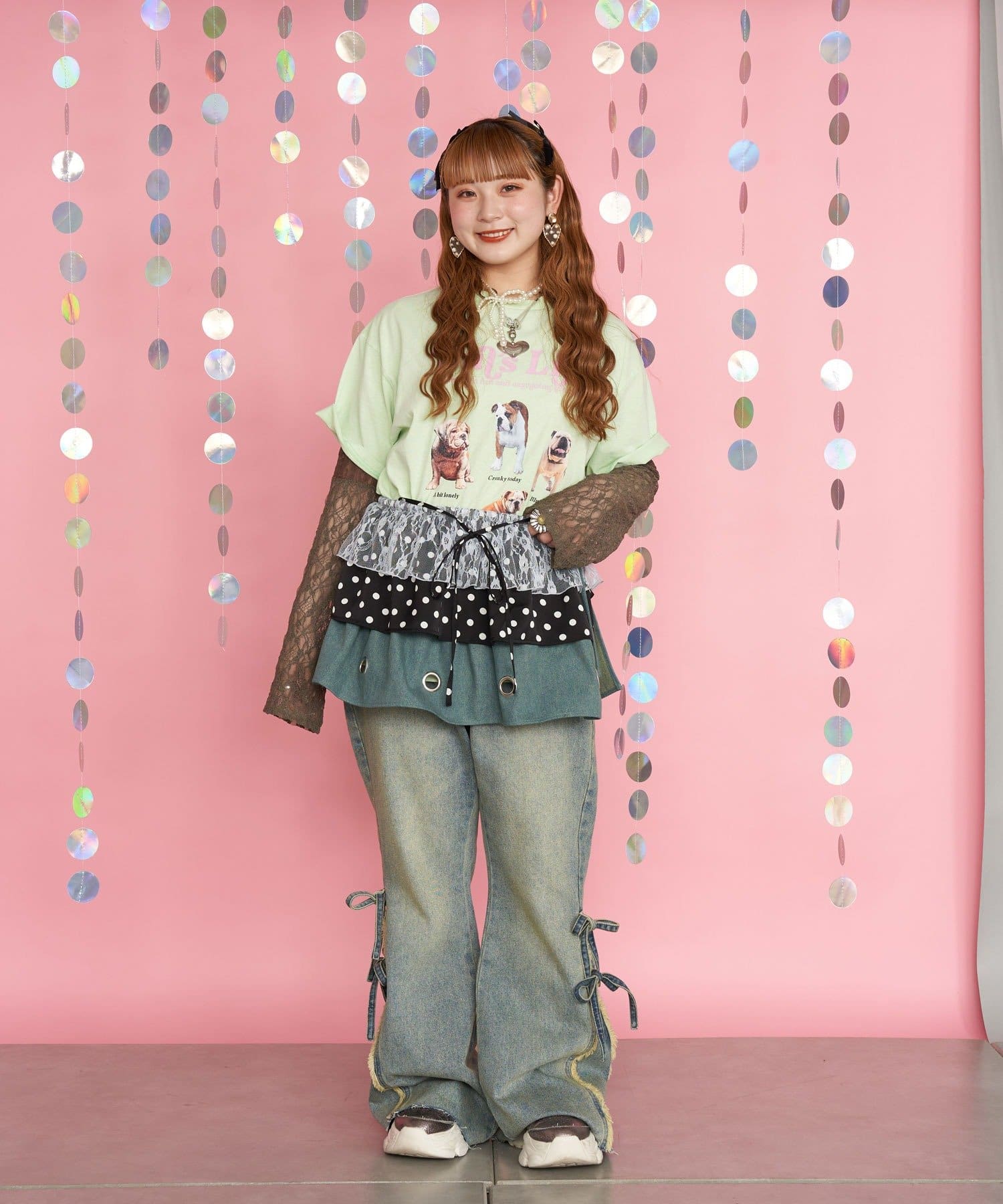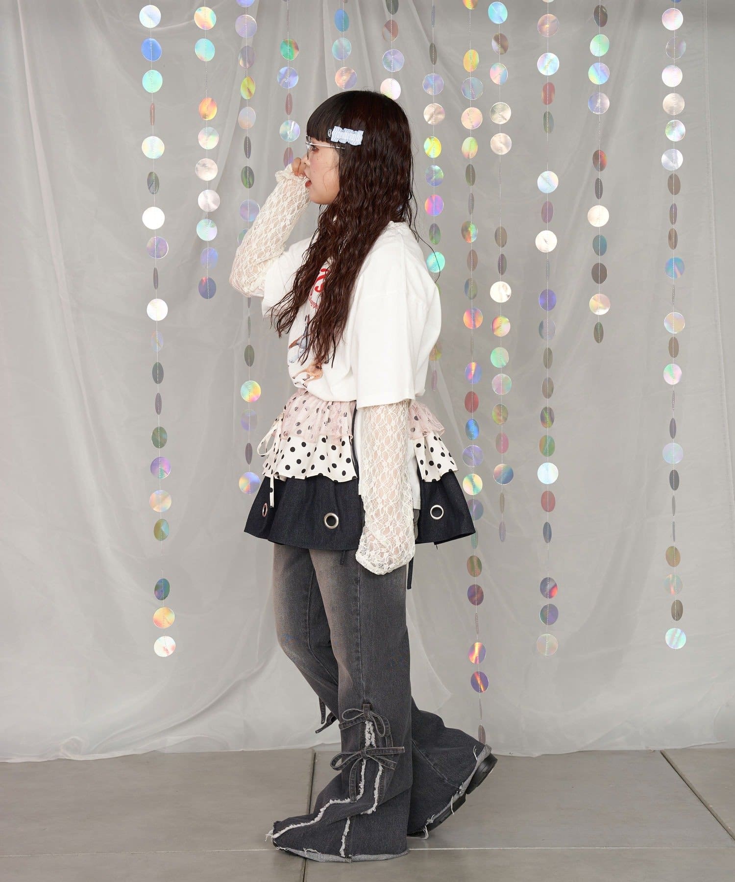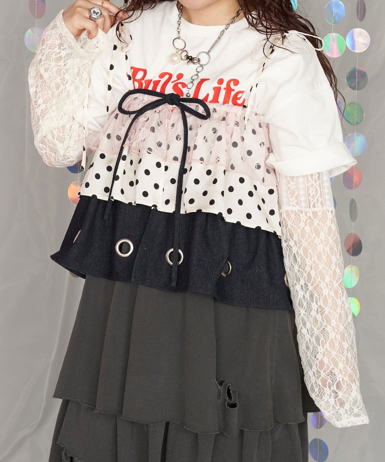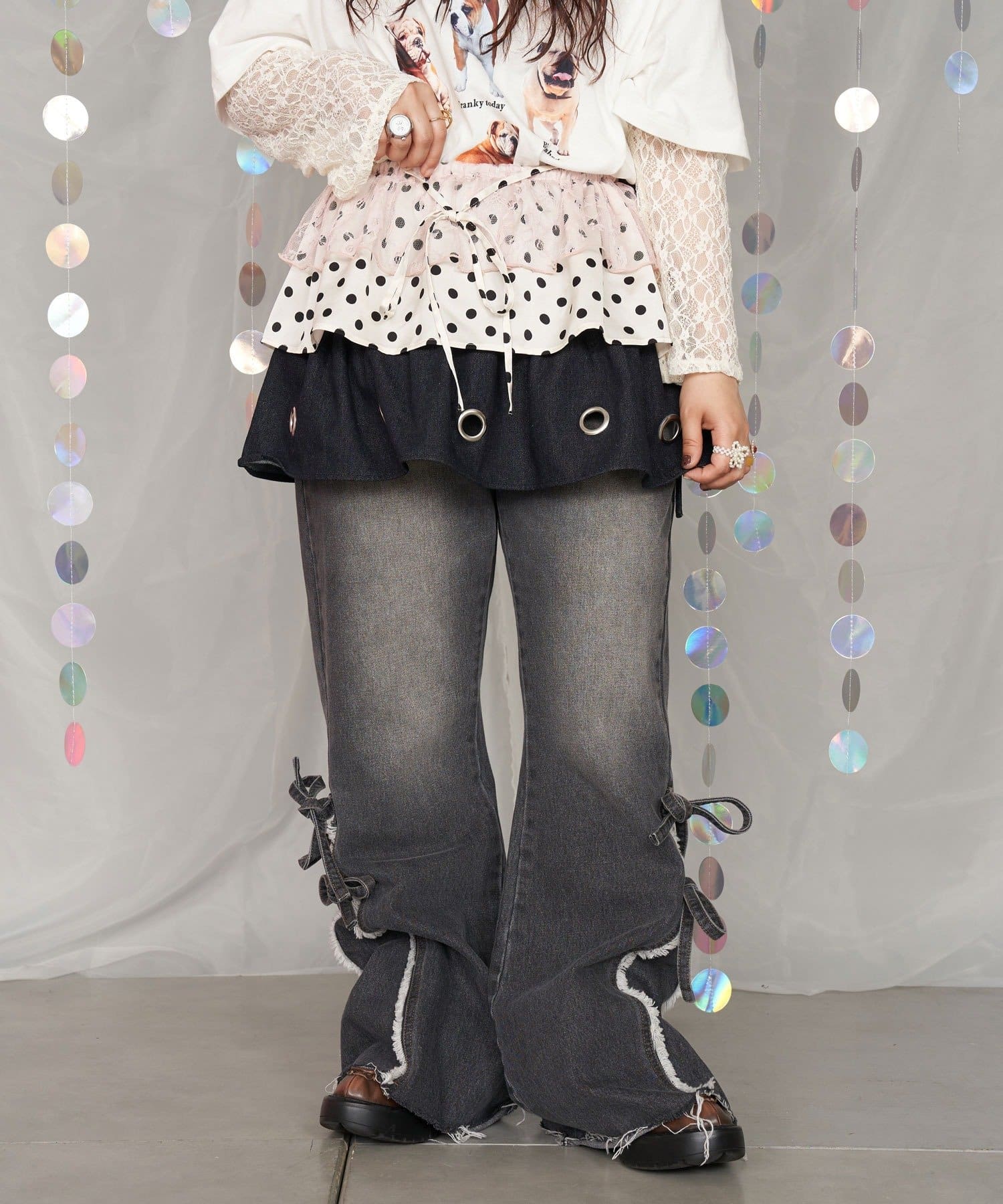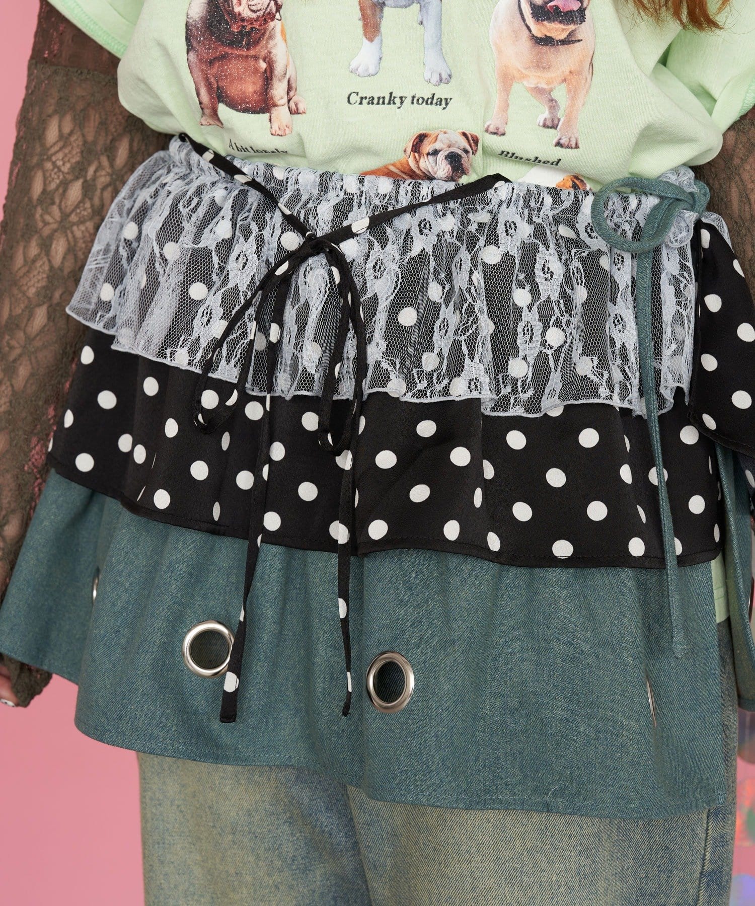 レース・ドット・デニムの三段デザインが個性的なアクセントに!
