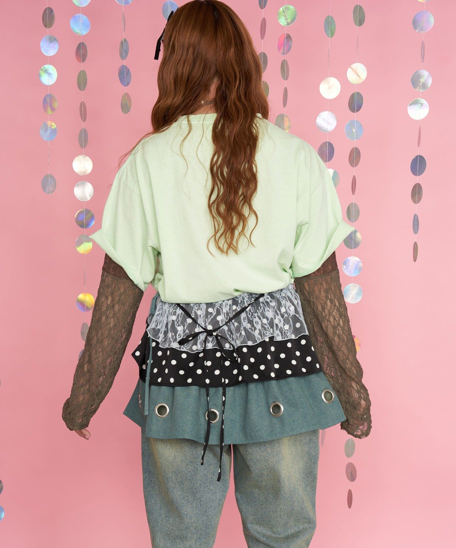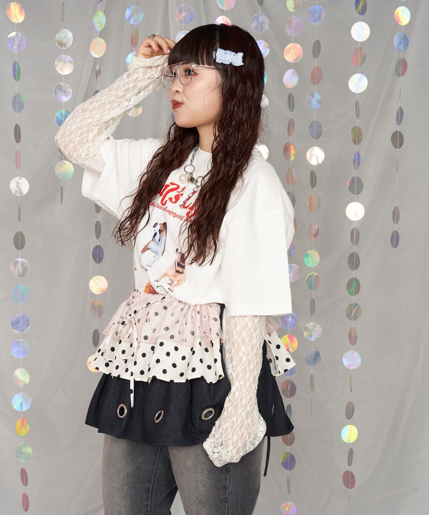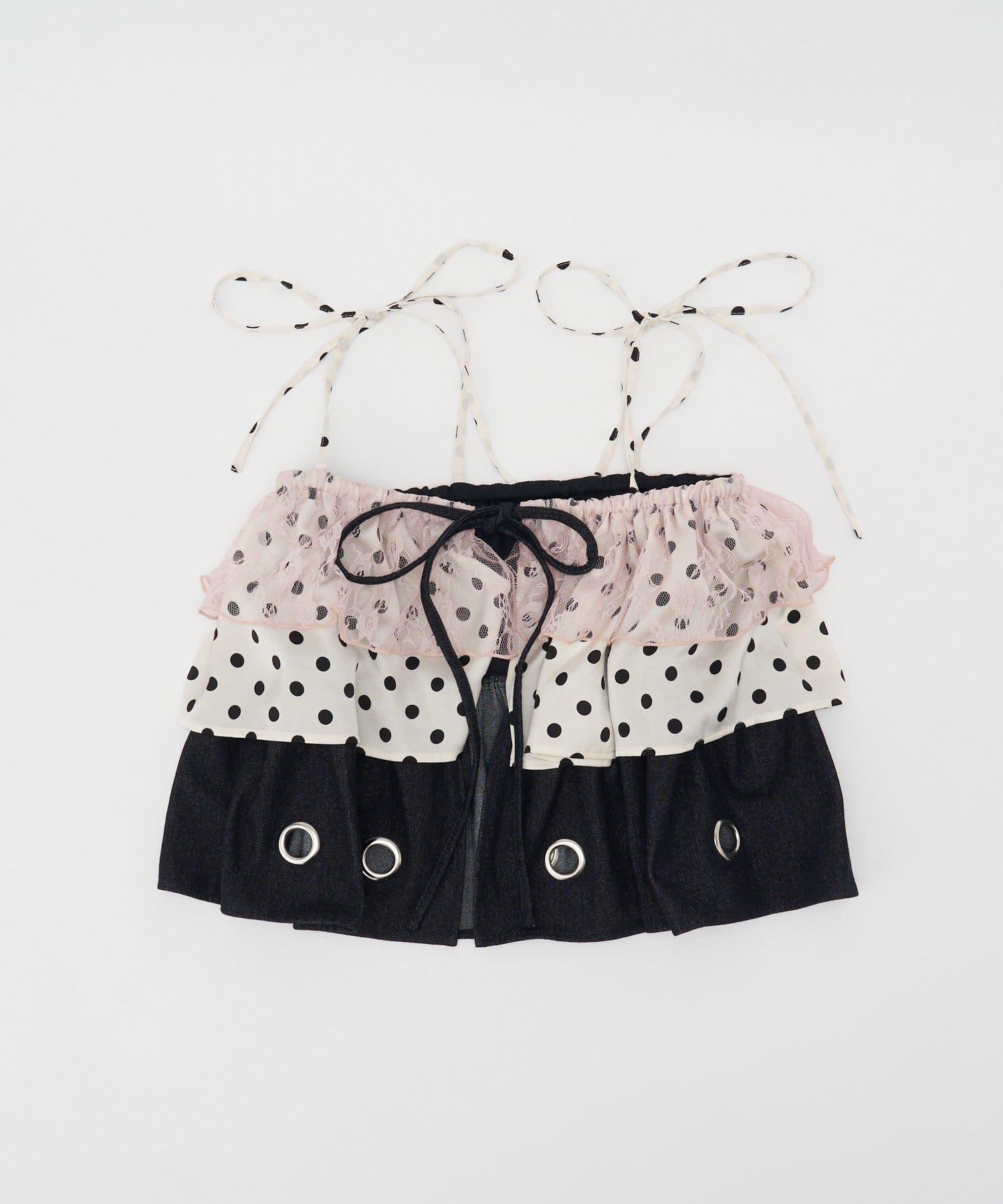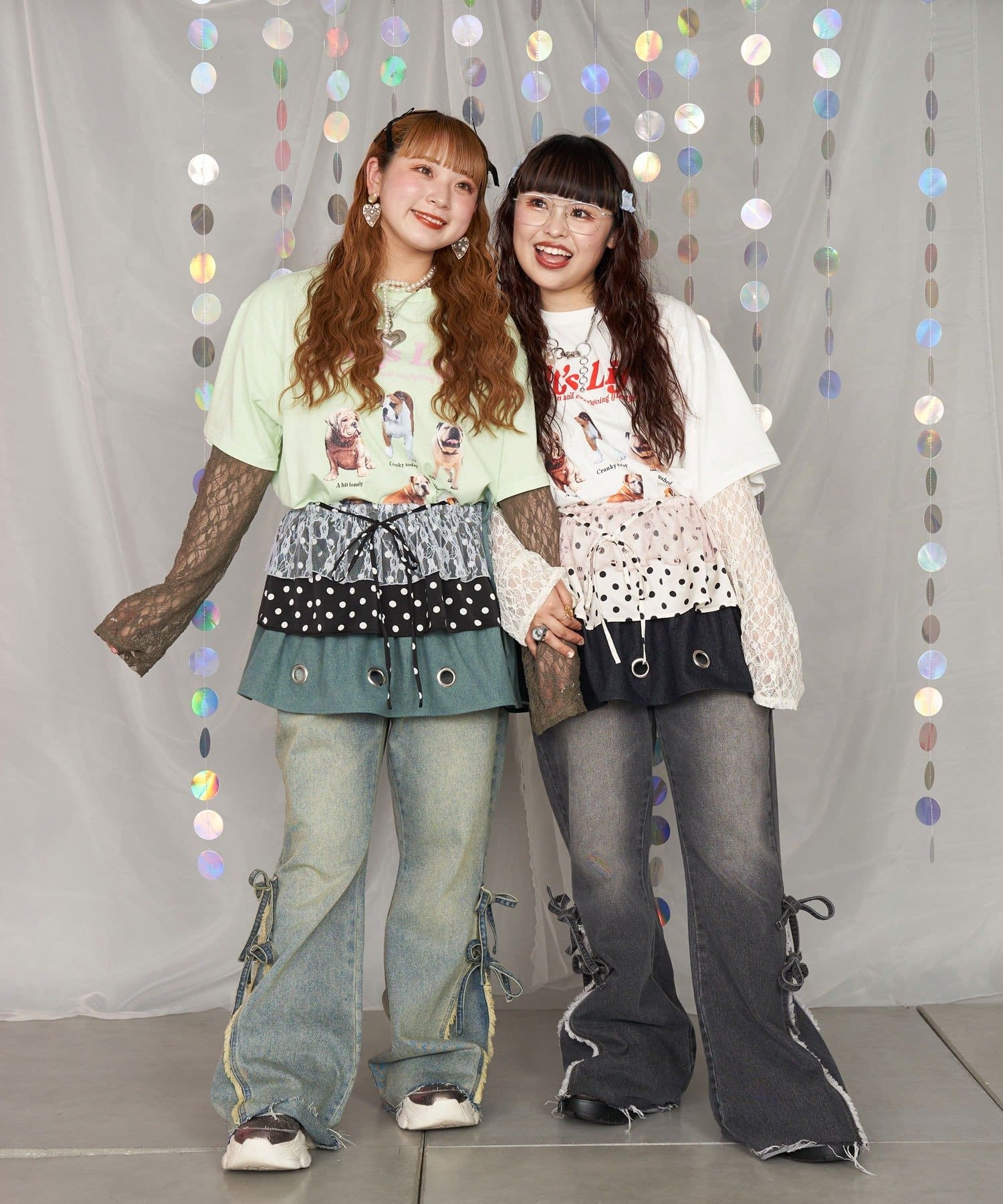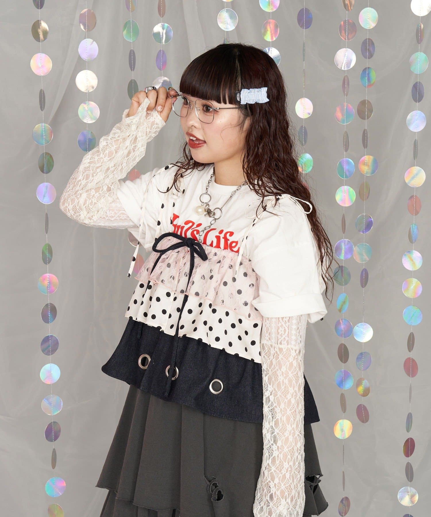 レース・ドット・デニムの三段デザインが個性的なアクセントに!
