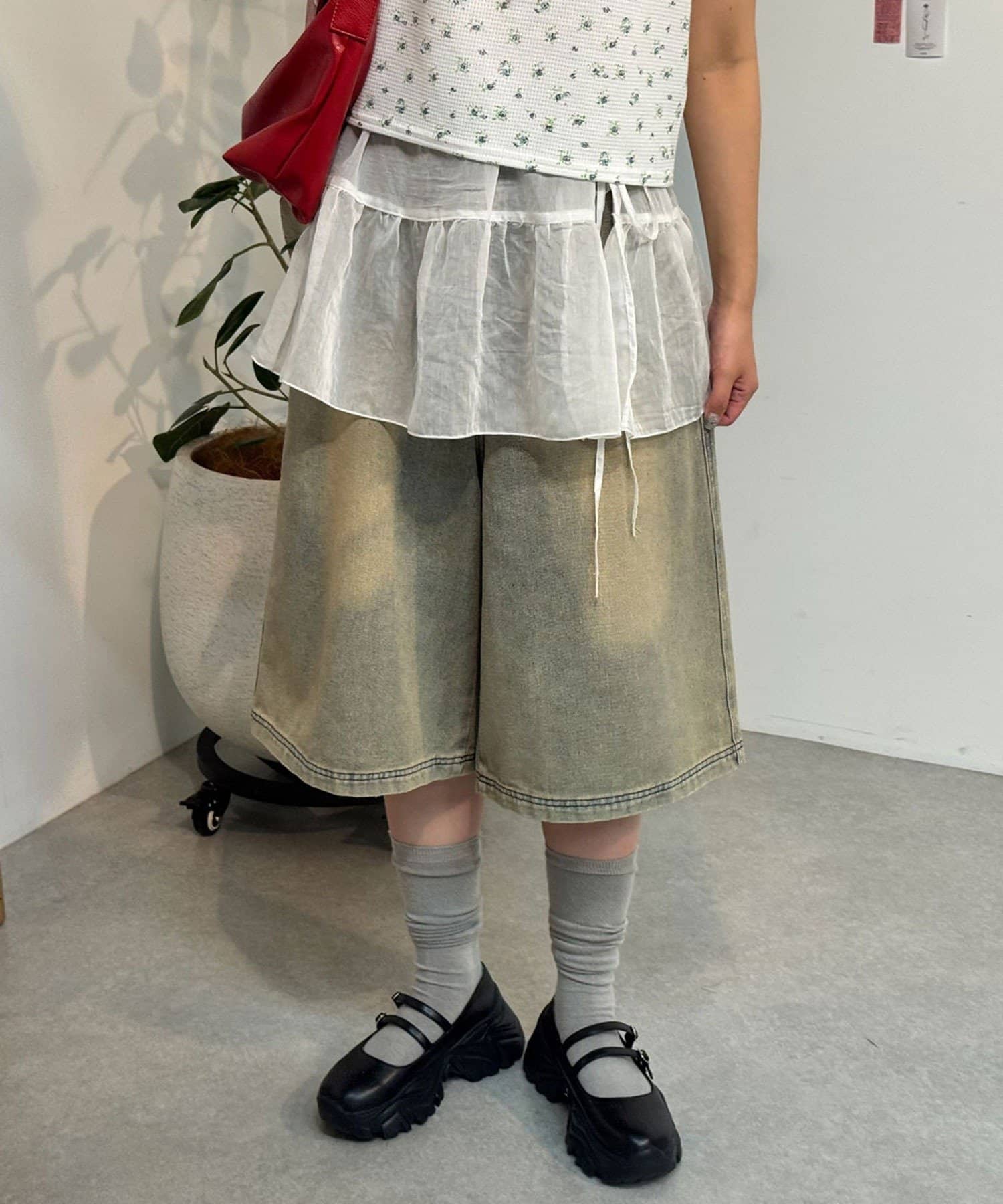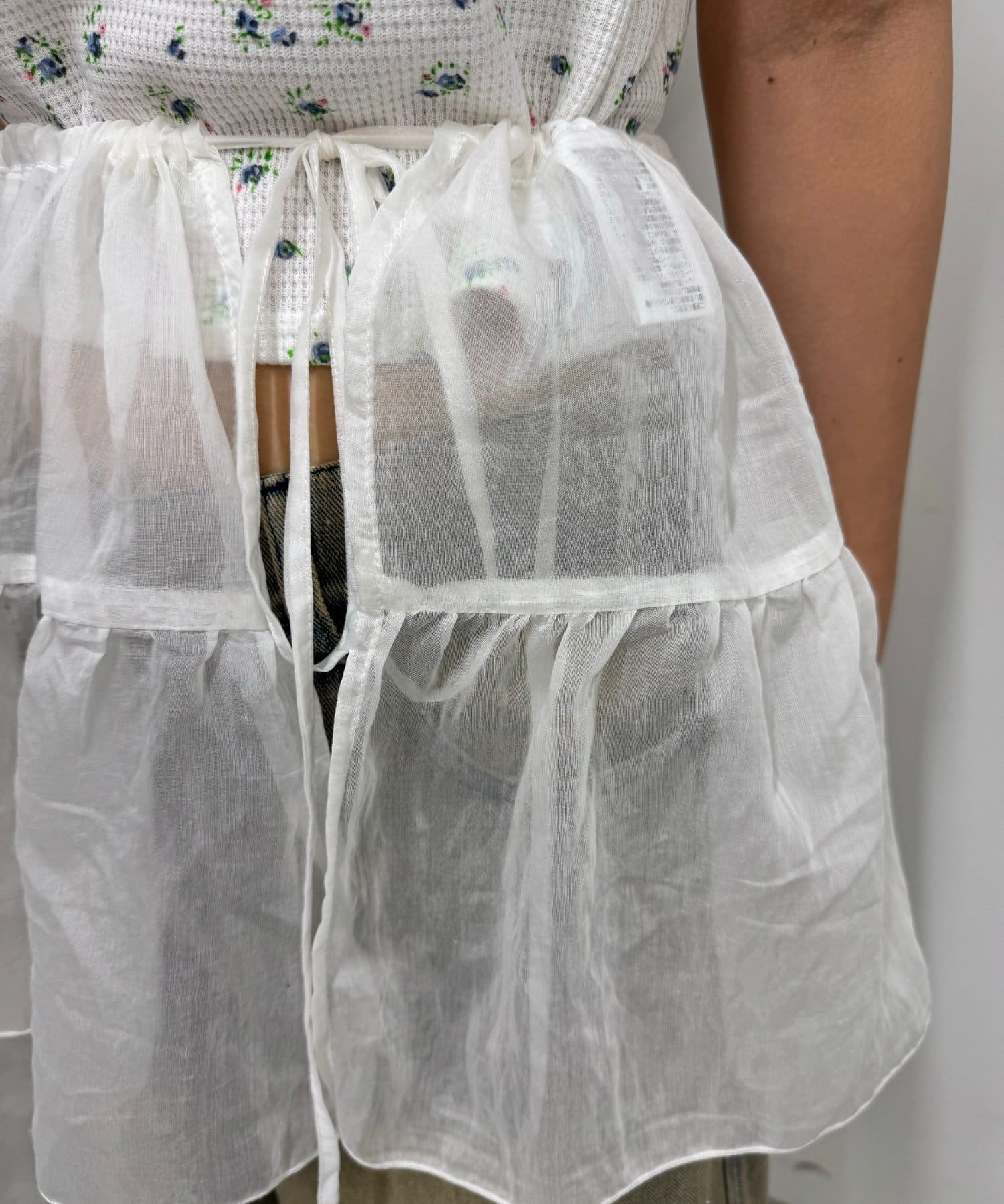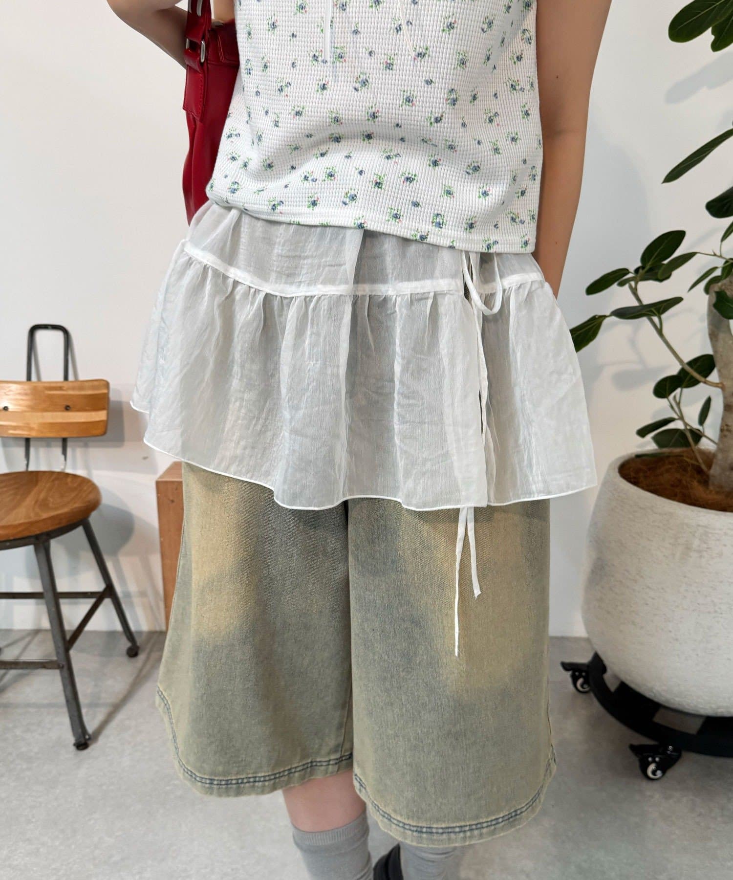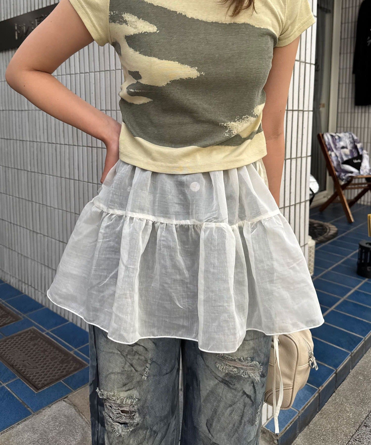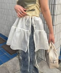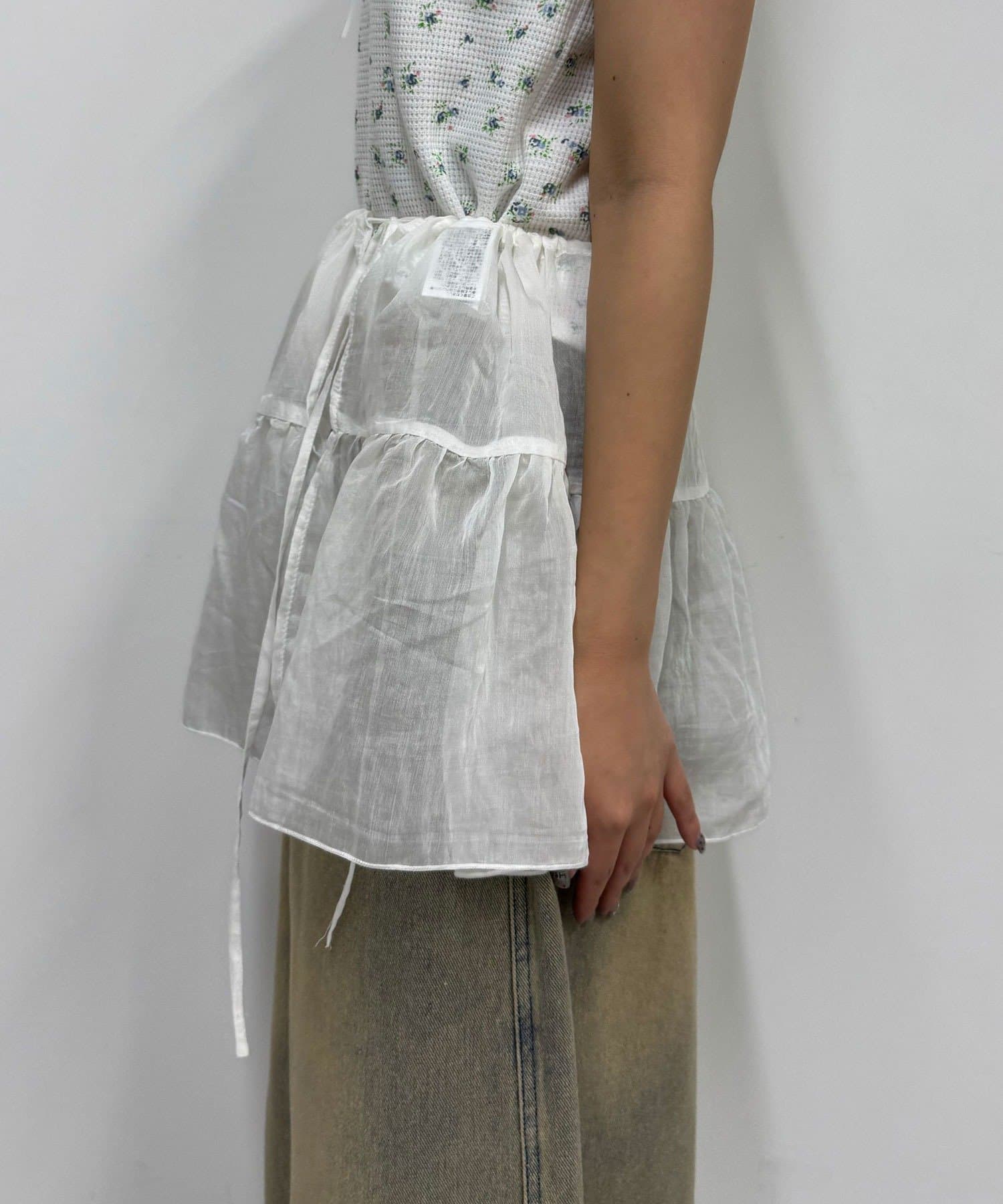 透け感のある素材が今っぽい、ティアードデザインの巻きスカート。
