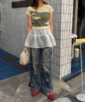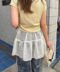 コンパクトなTシャツやキャミソールを合わせると、すっきりバランスよく決まります。