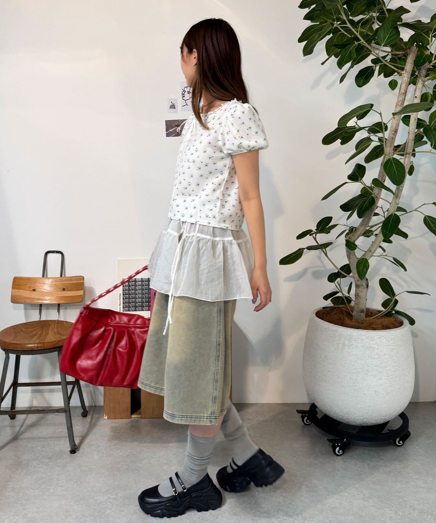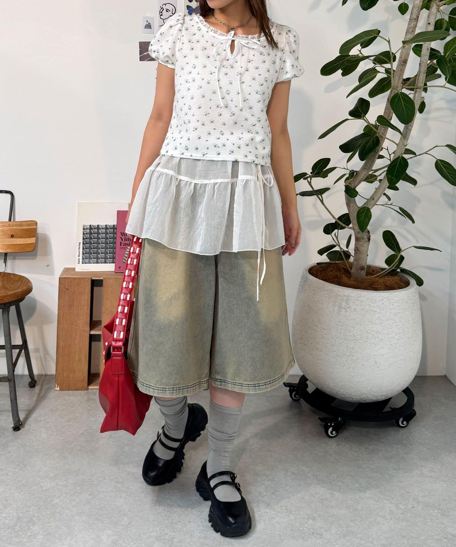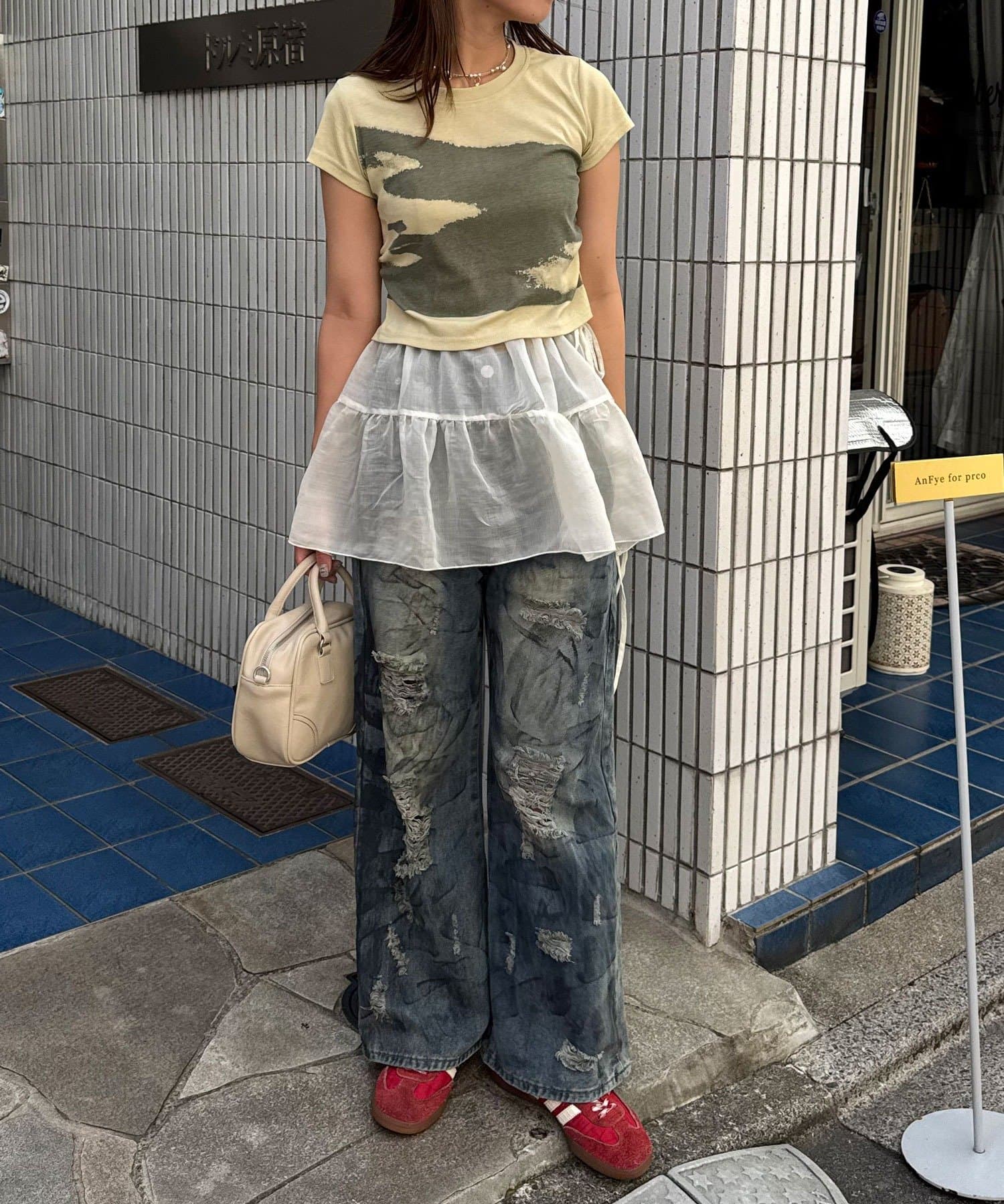 甘さと抜け感を両立した、フェミニンにもカジュアルにも使える一枚です。