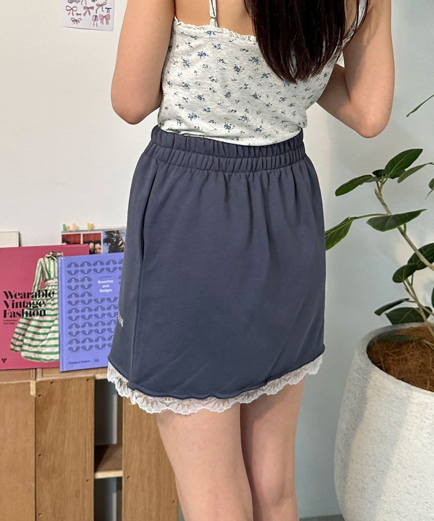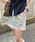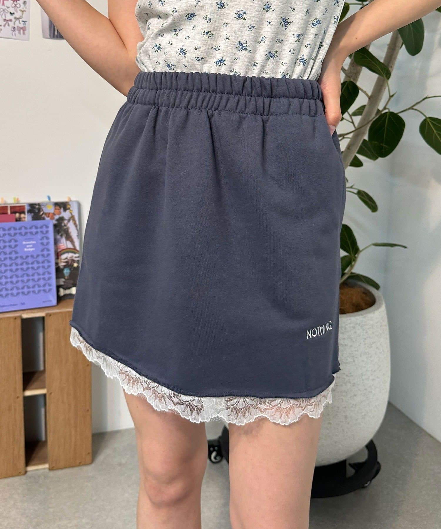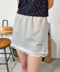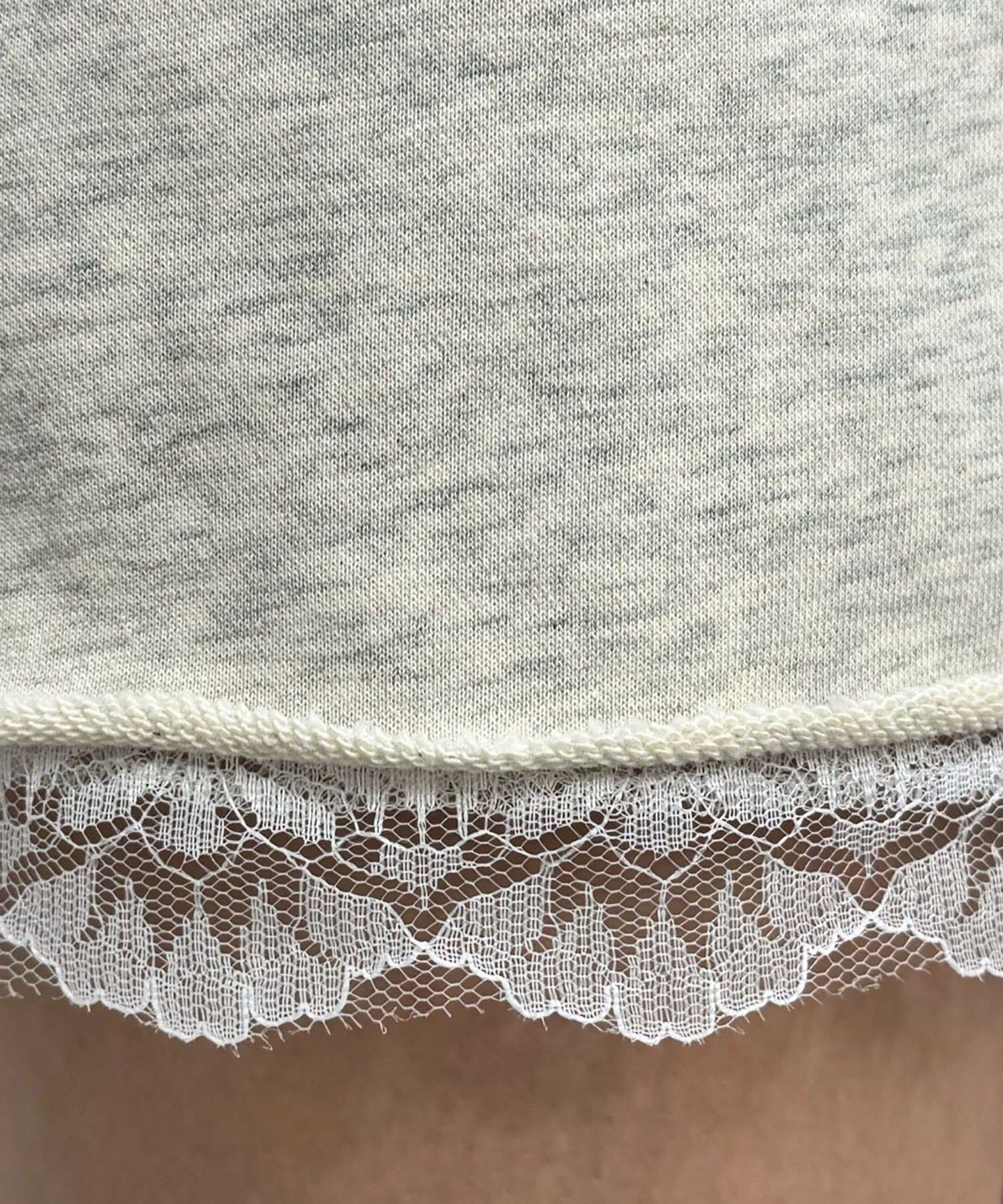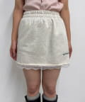 カジュアルなスウェット素材に、裾の繊細なレースをプラスしたミニスカート。