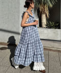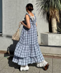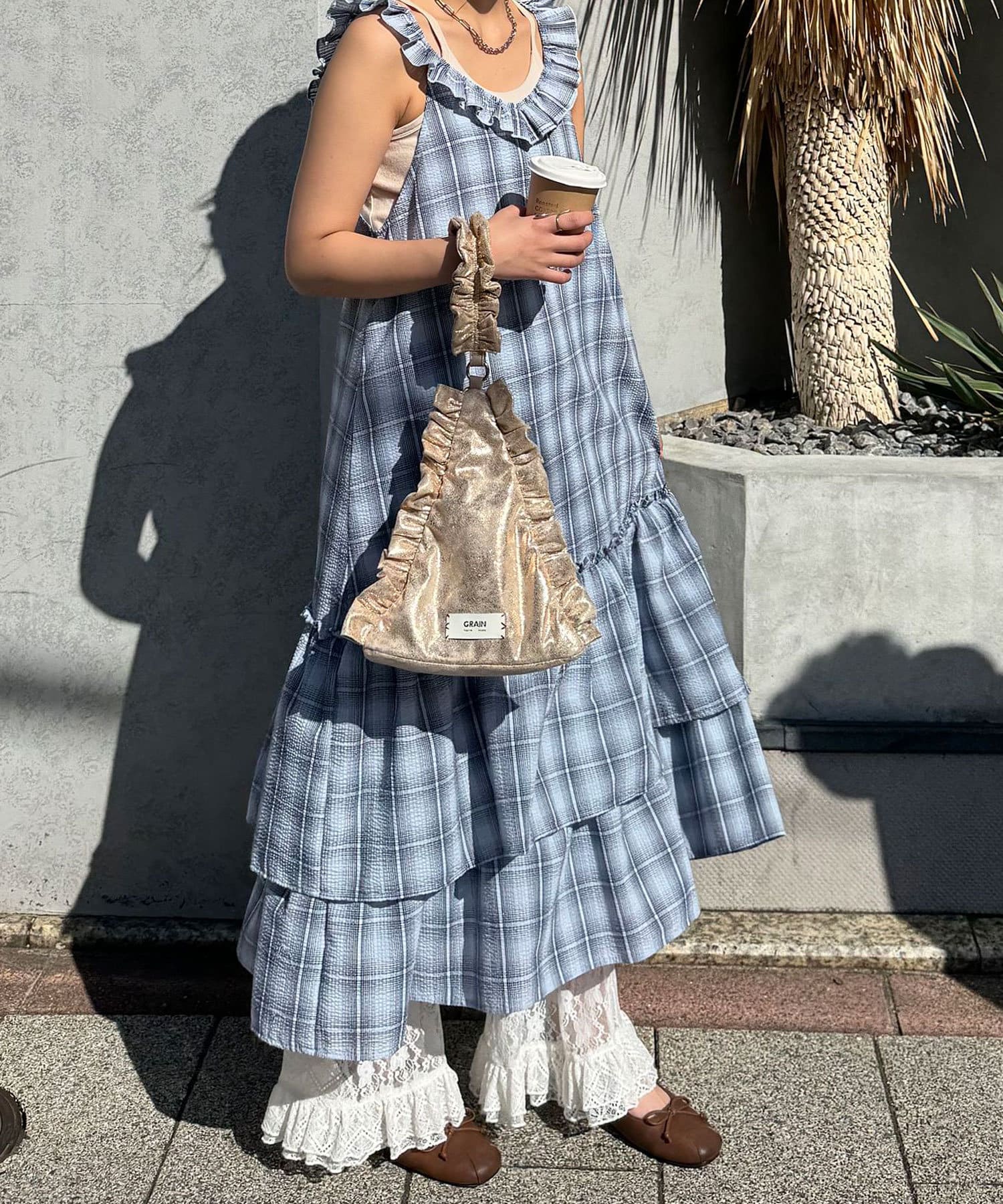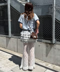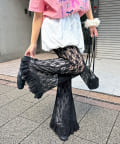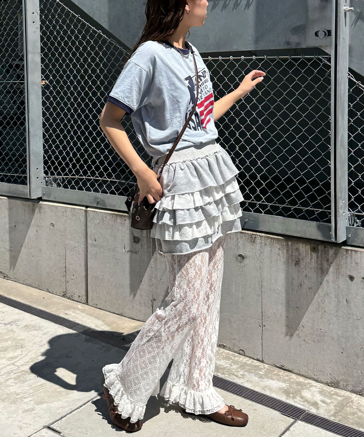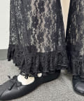 繊細なレースのフレアラインやフリルが、足元に抜け感と存在感をプラス。