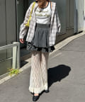 ミニスカートやワンピースに重ねて、トレンドレイヤードコーデが完成。