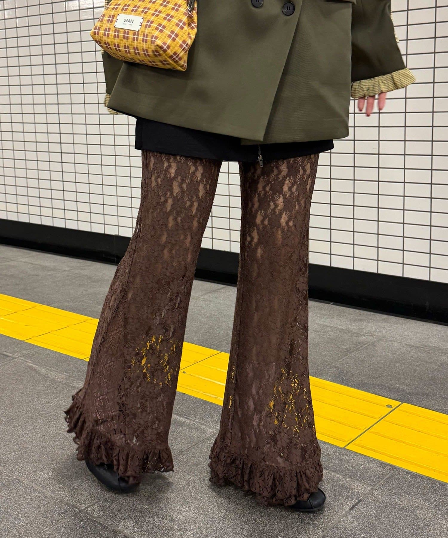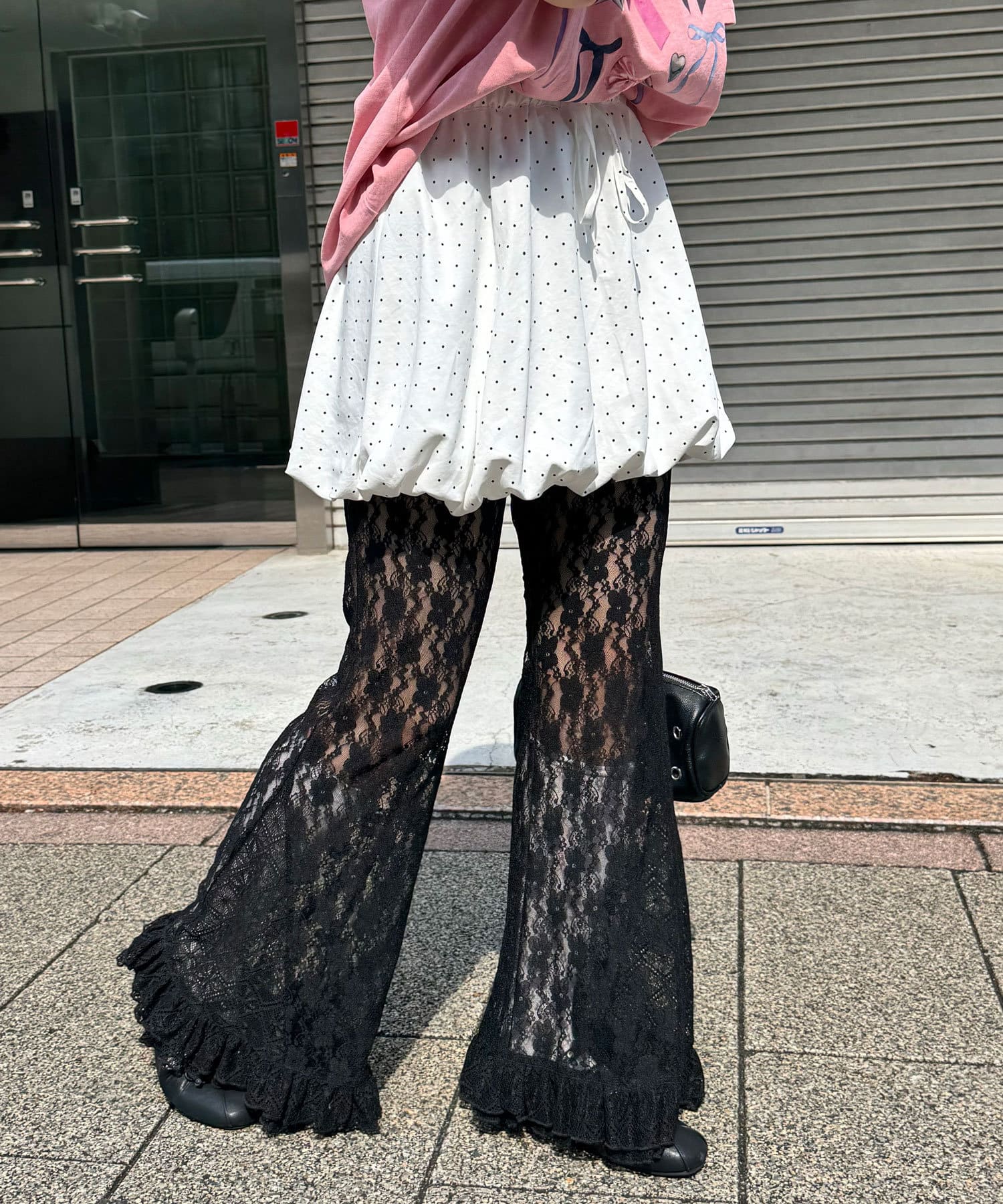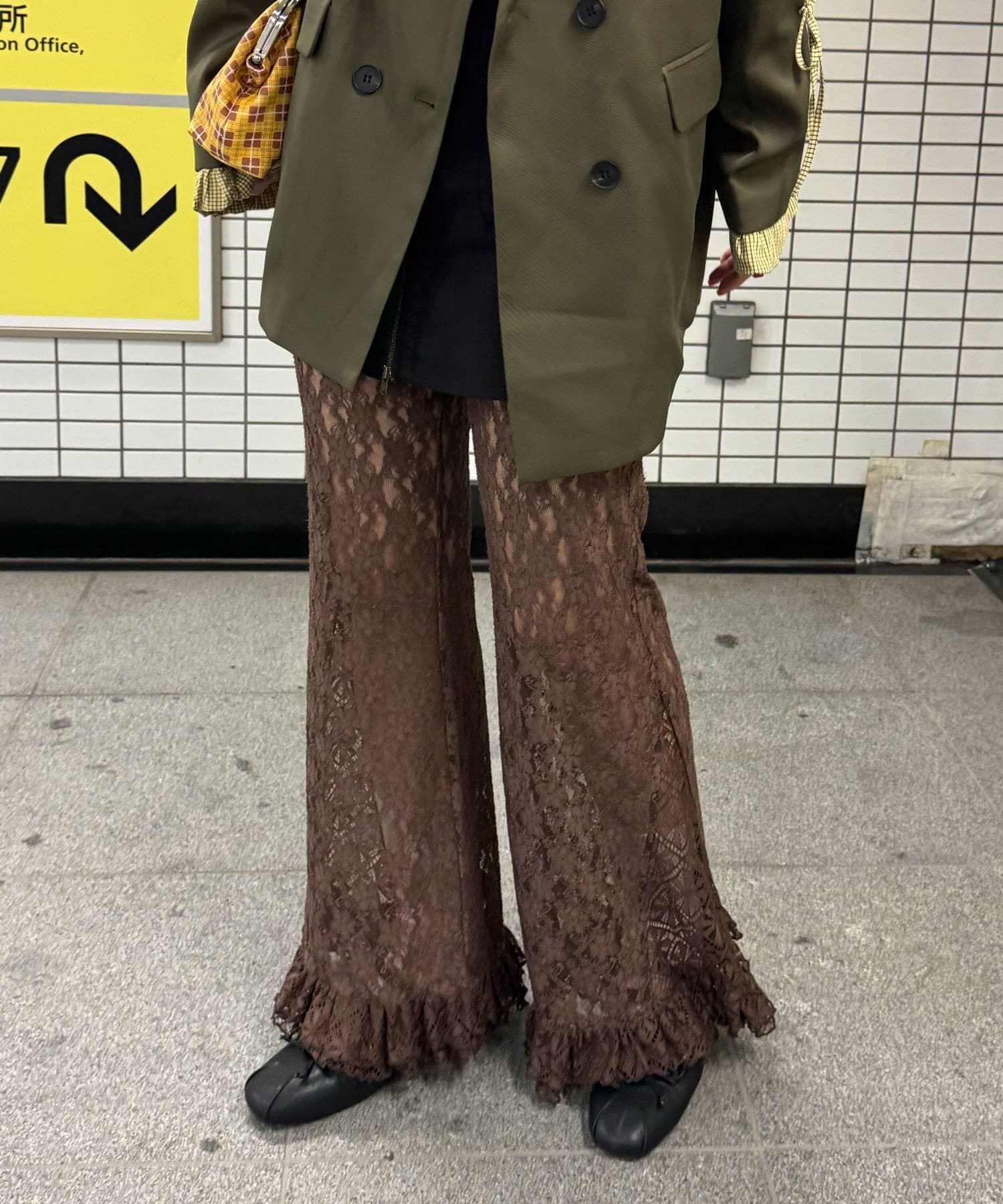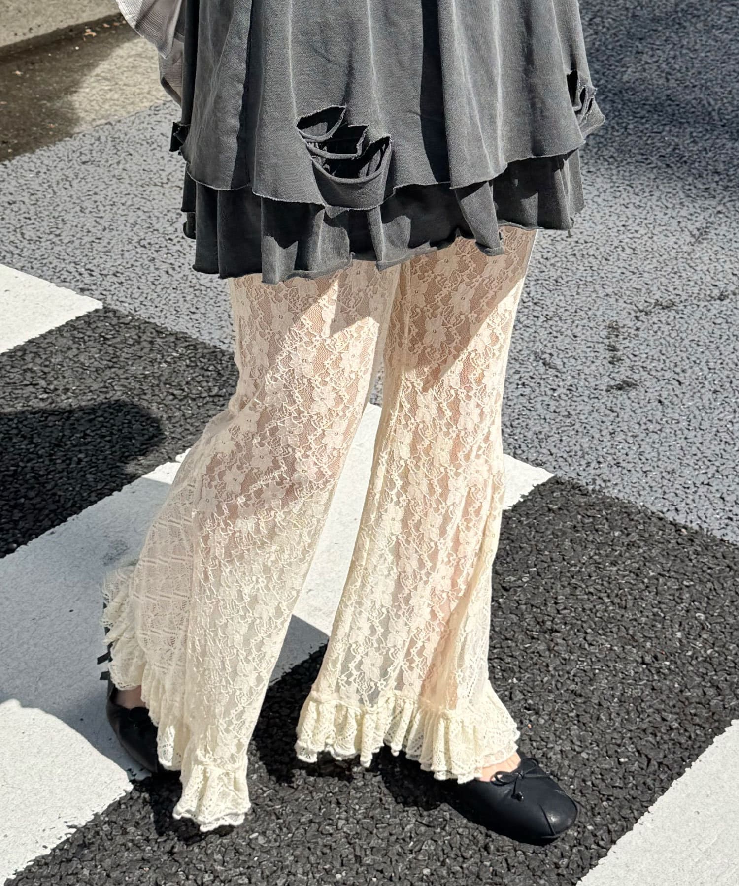 いつものコーデに重ねるだけで、ぐっと雰囲気が出るレースパンツ。