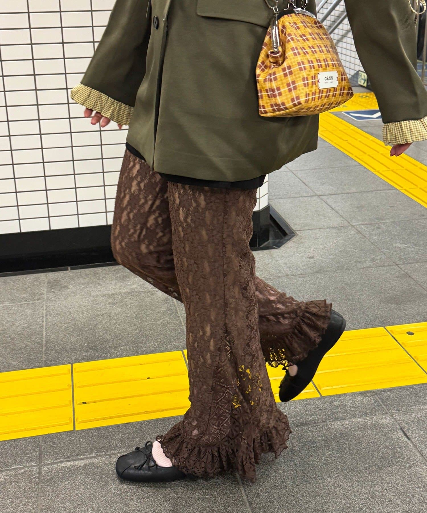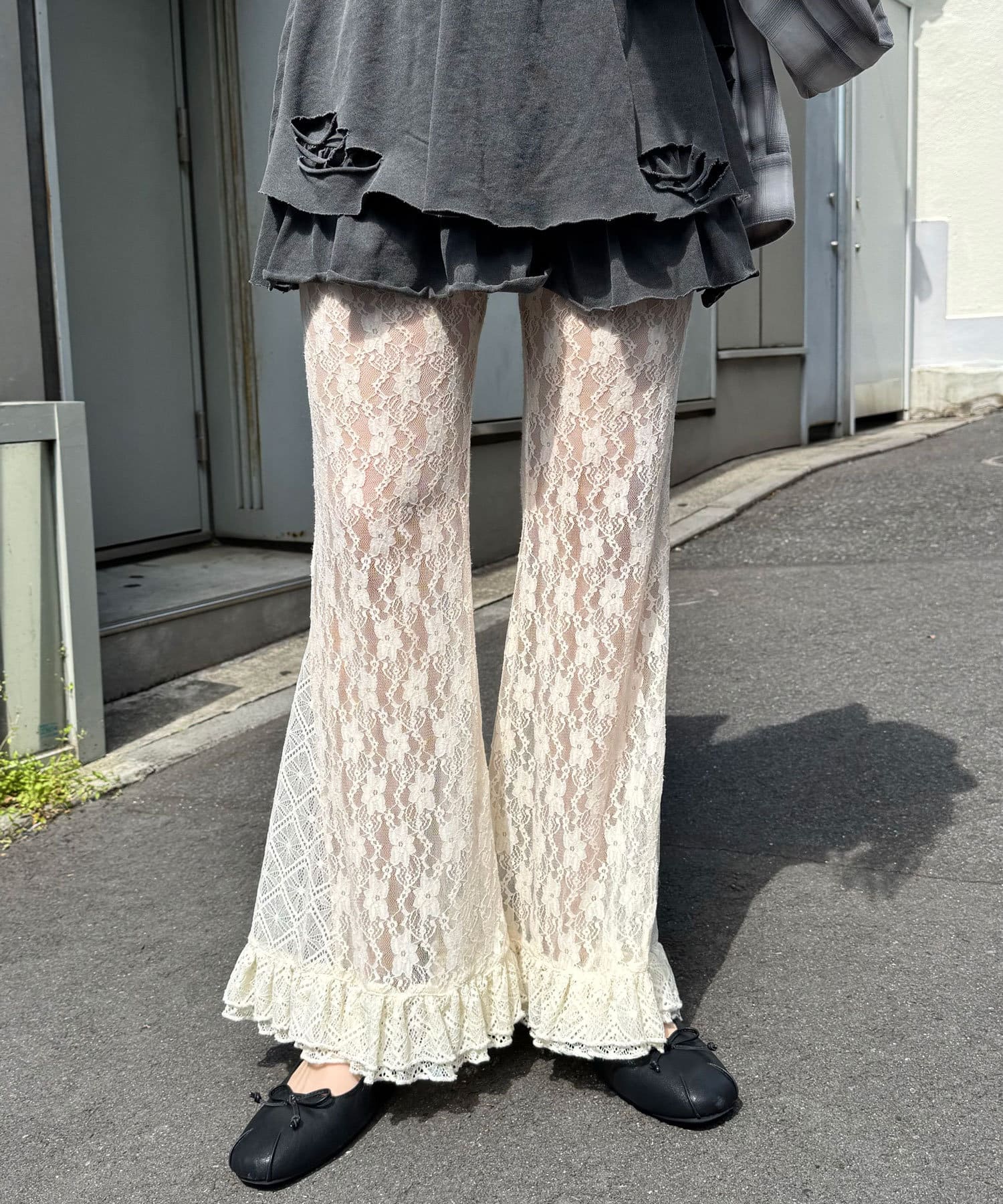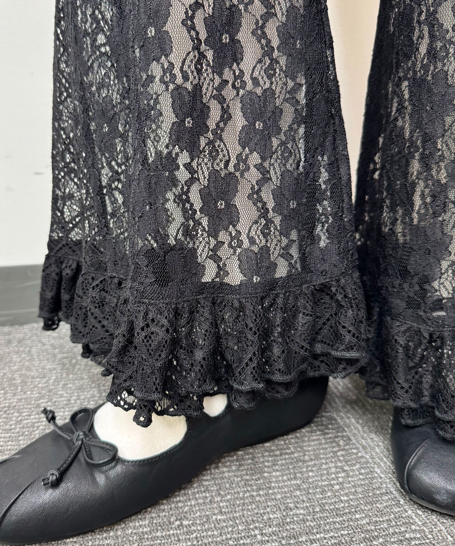いつものコーデに重ねるだけで、ぐっと雰囲気が出るレースパンツ。
