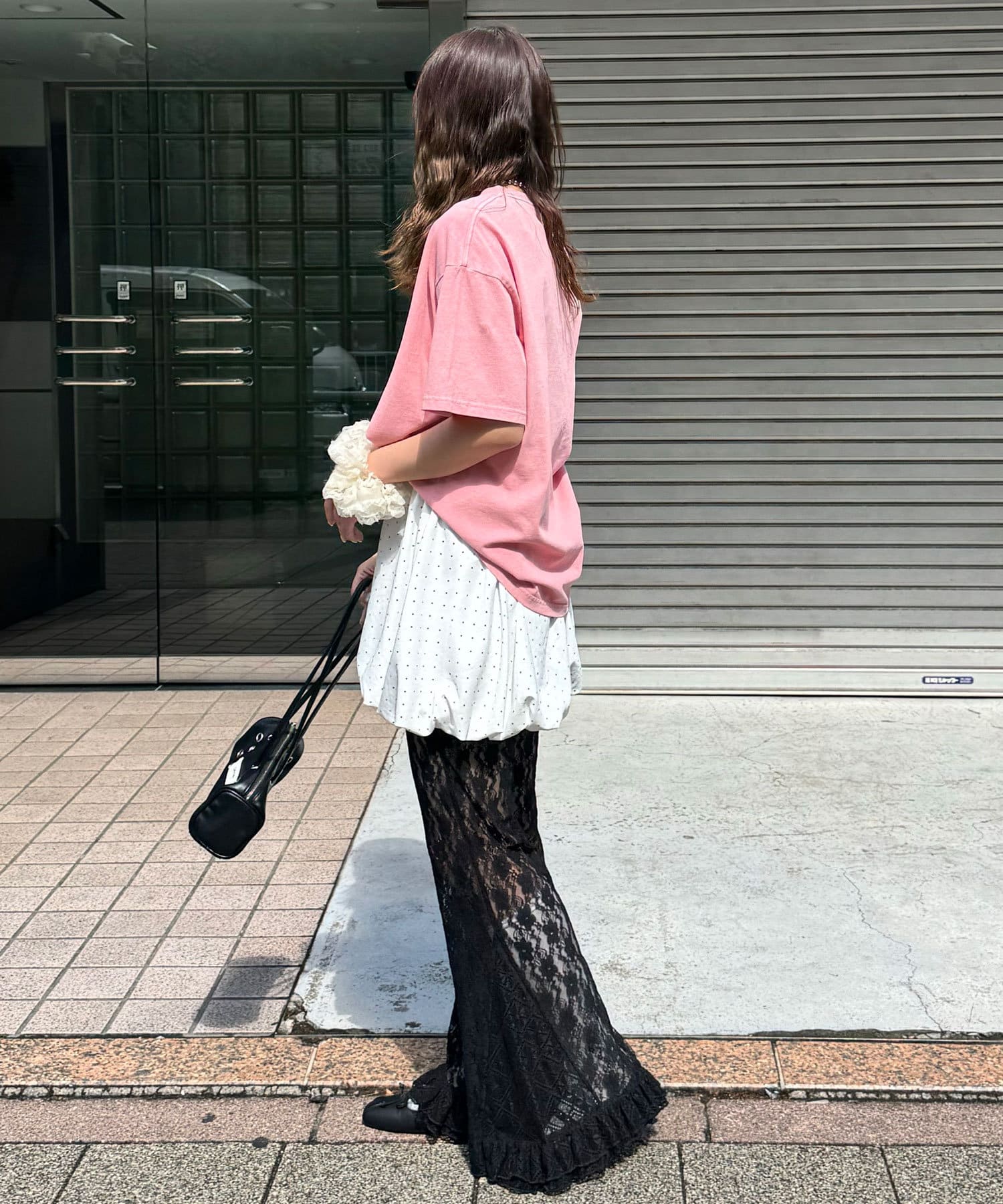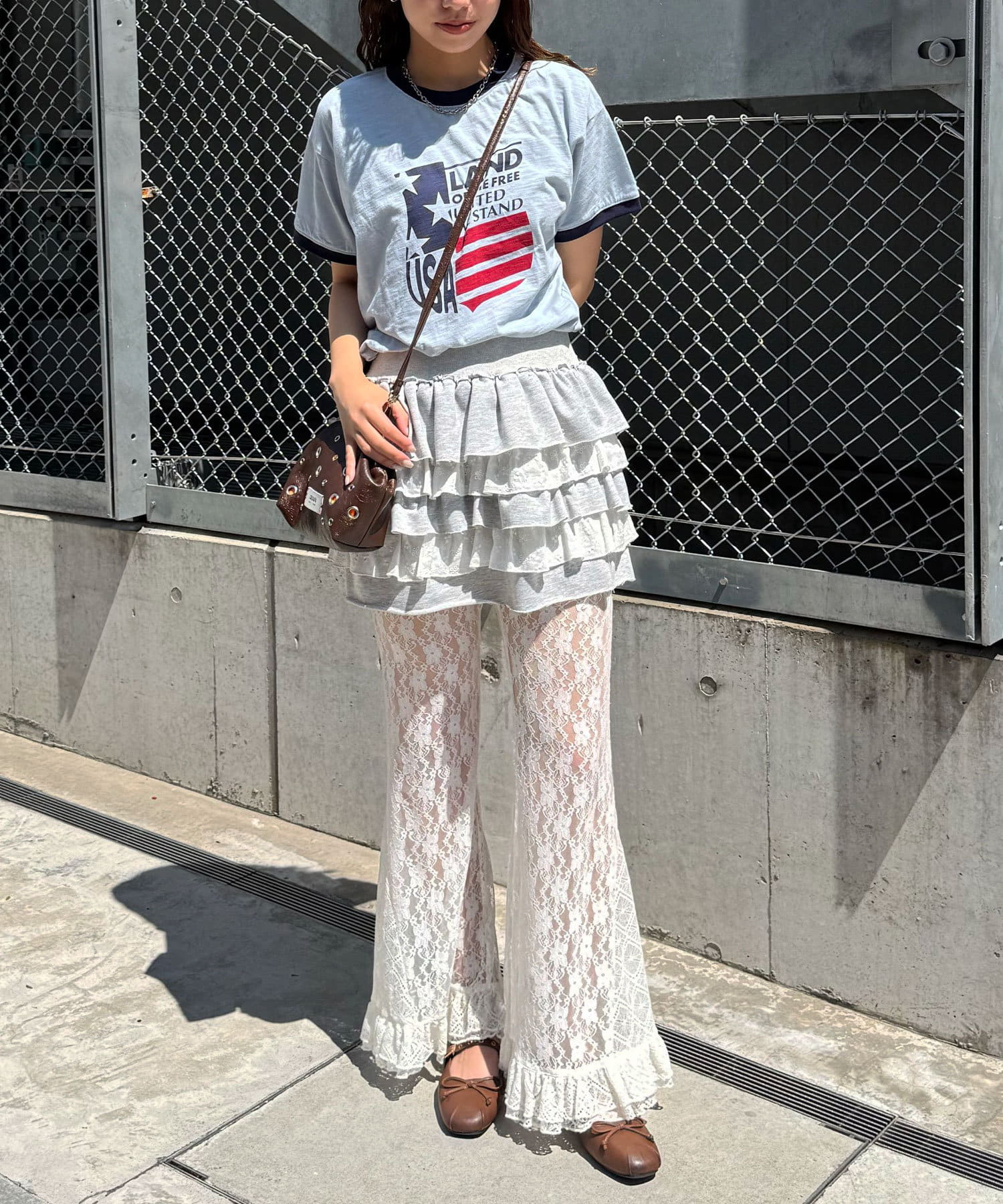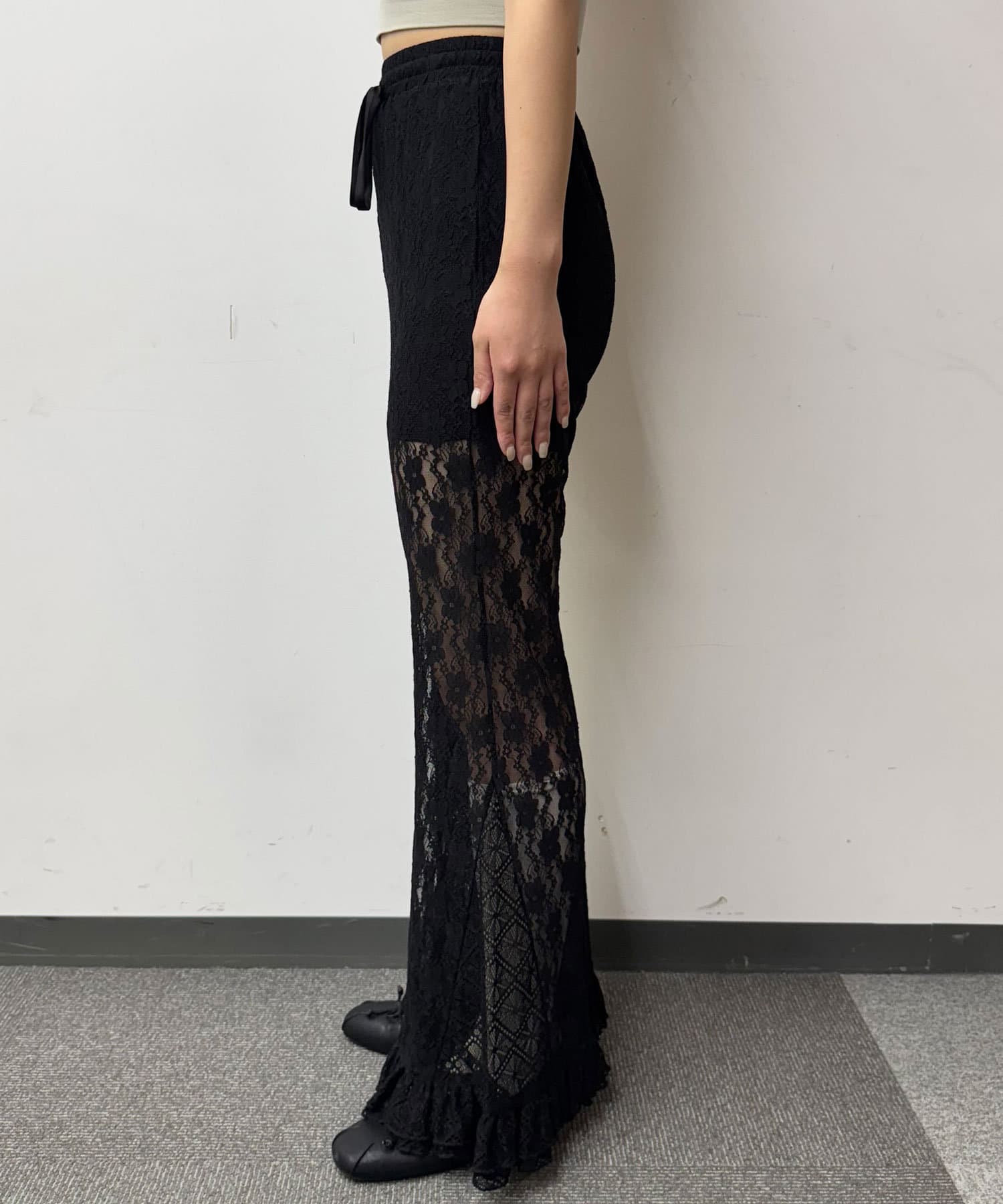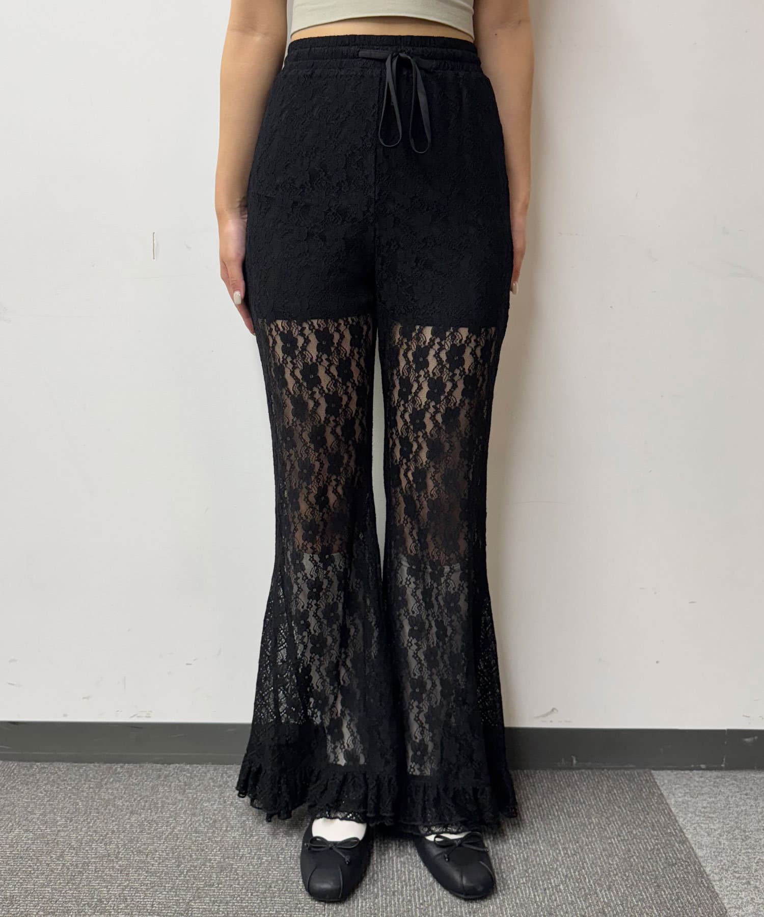 いつものコーデに重ねるだけで、ぐっと雰囲気が出るレースパンツ。