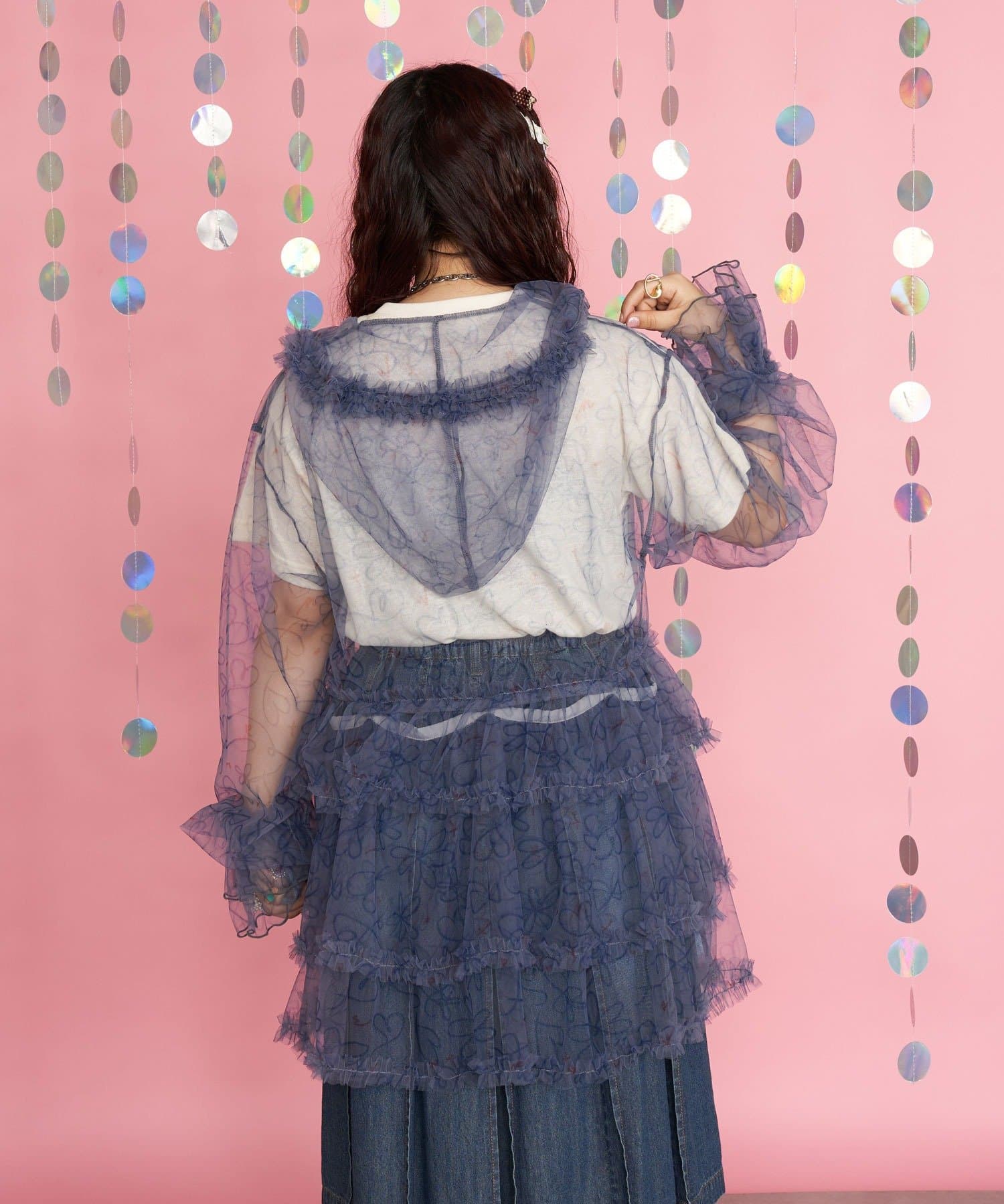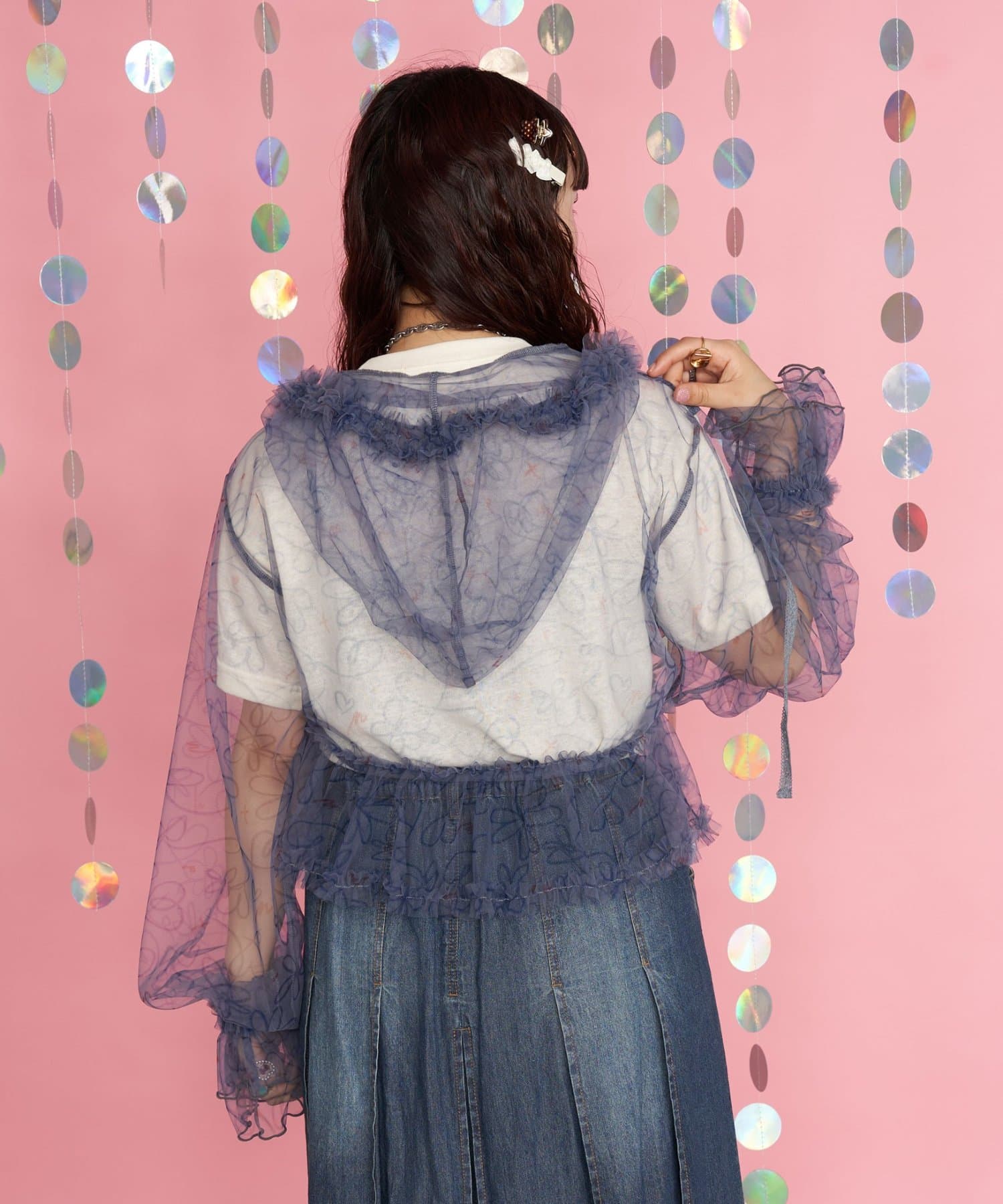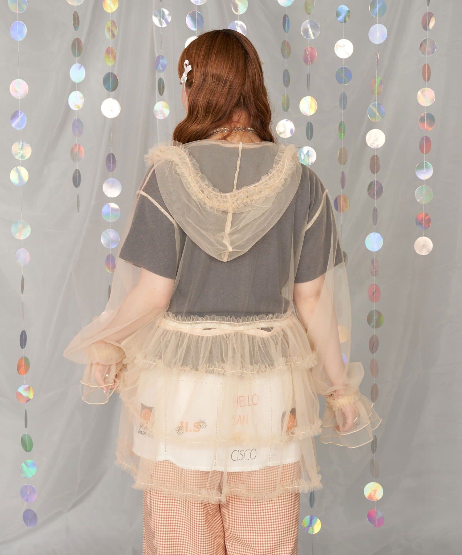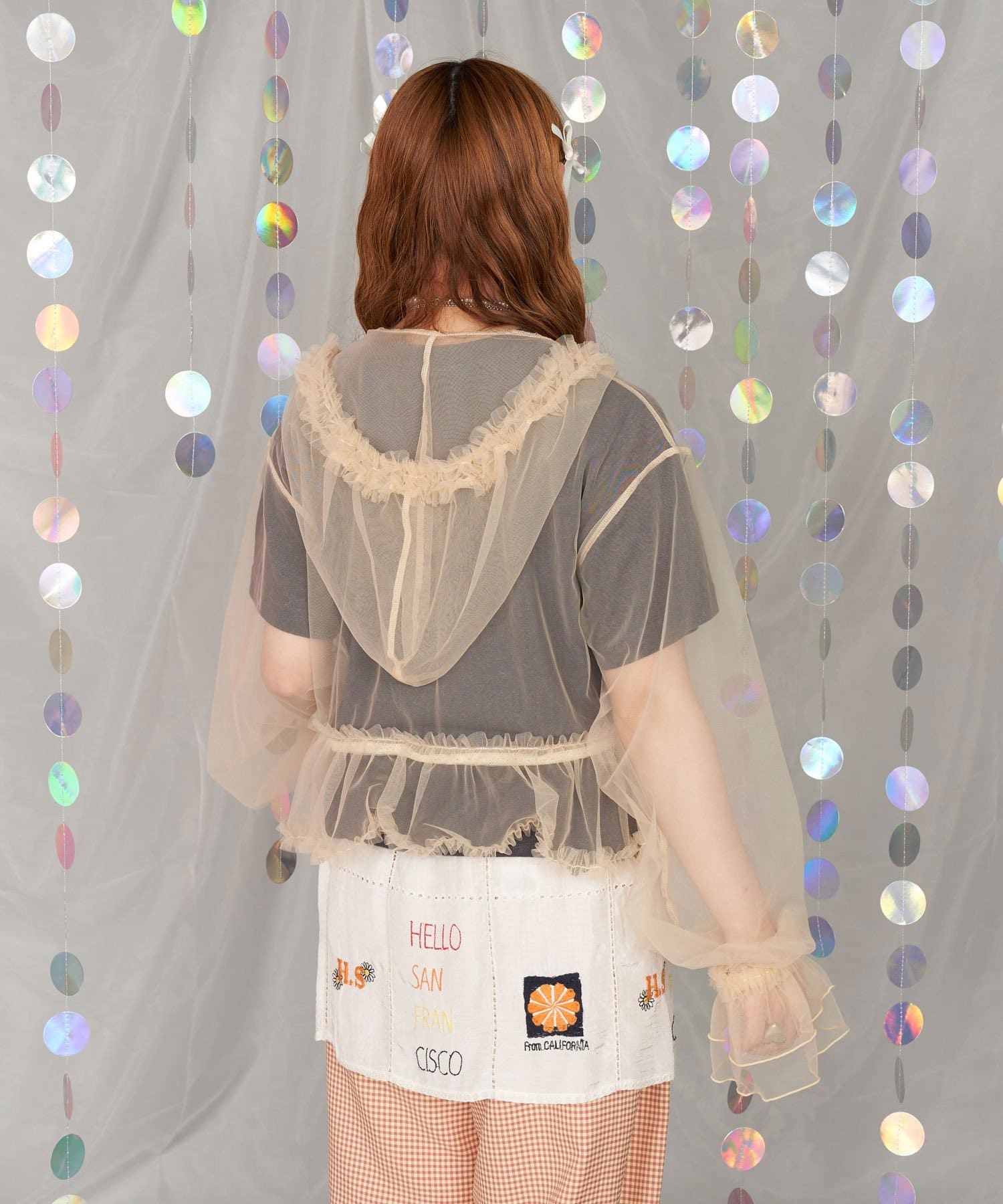 【@yuna_maruu企画】【Me+Me/ミープラスミー】チュールフリルシアーフーディーブラウス