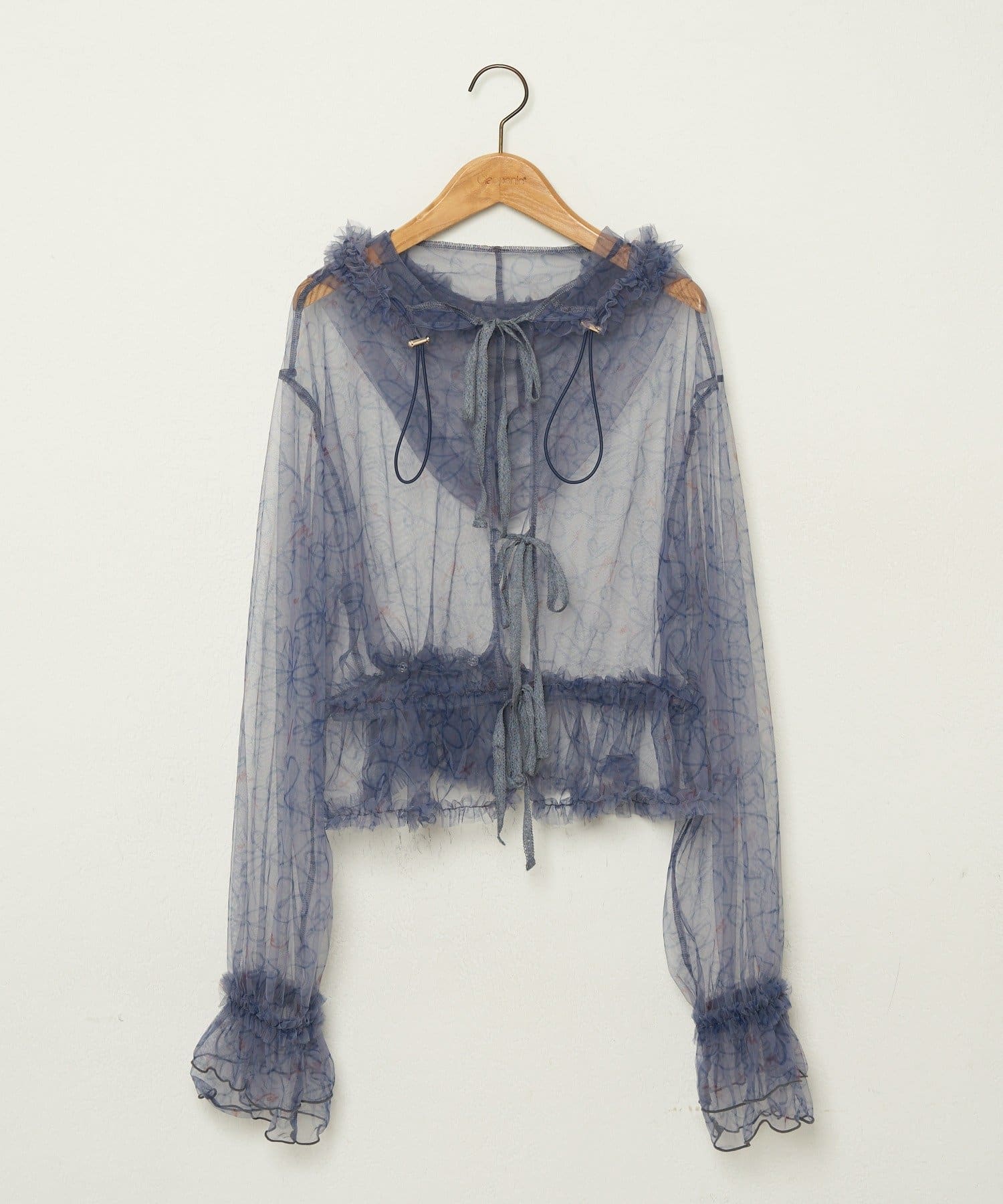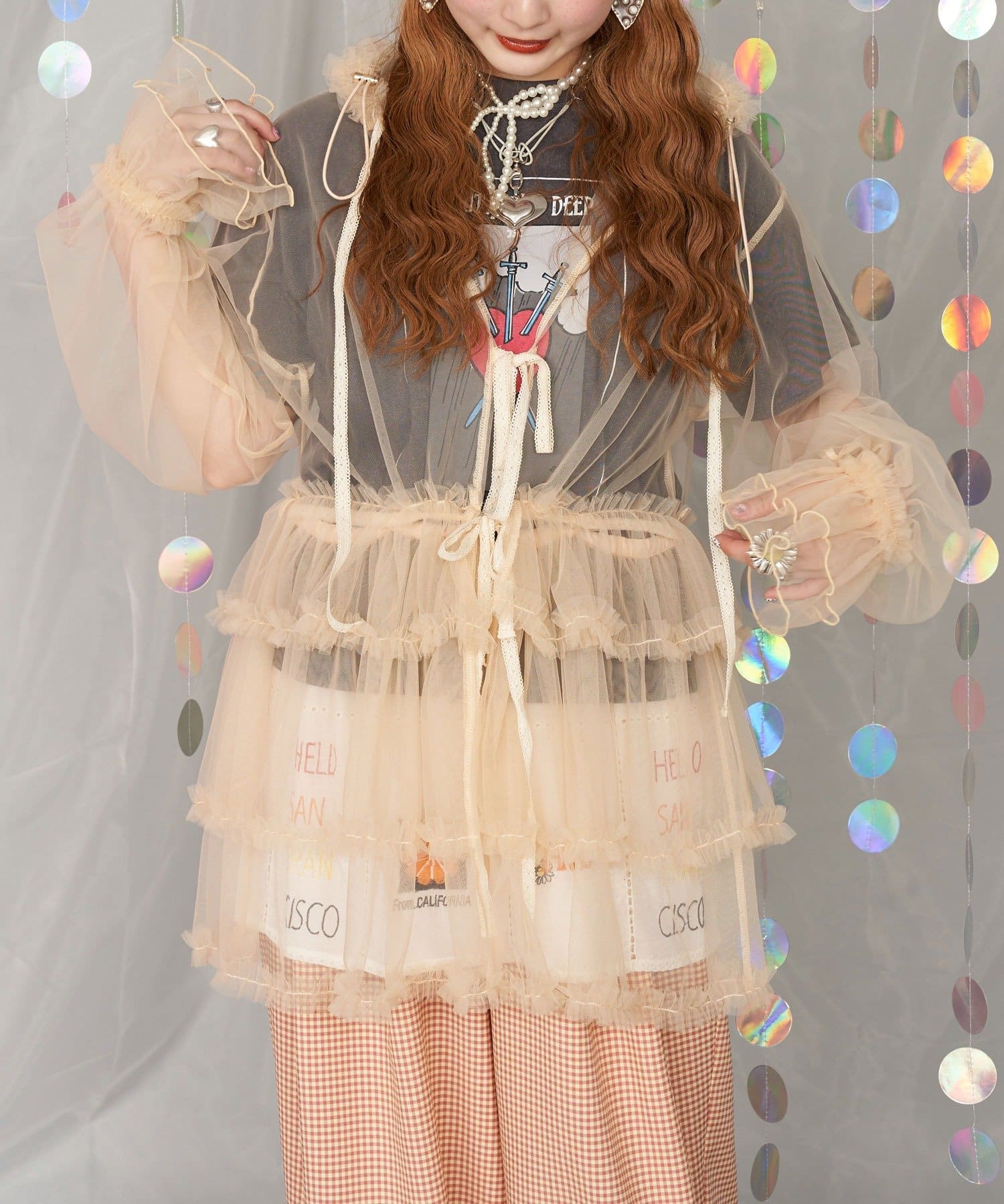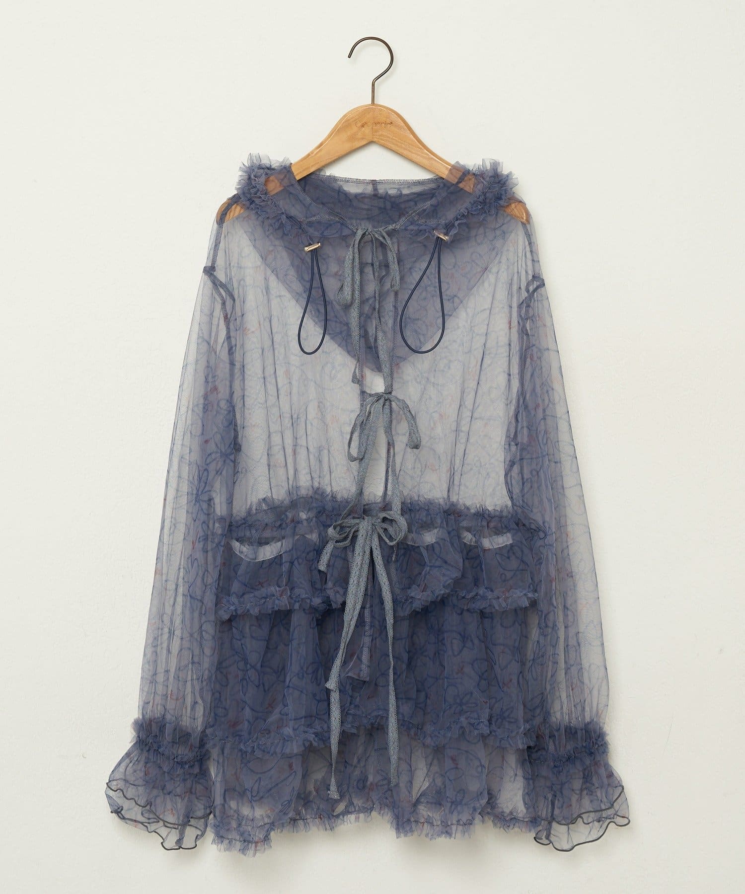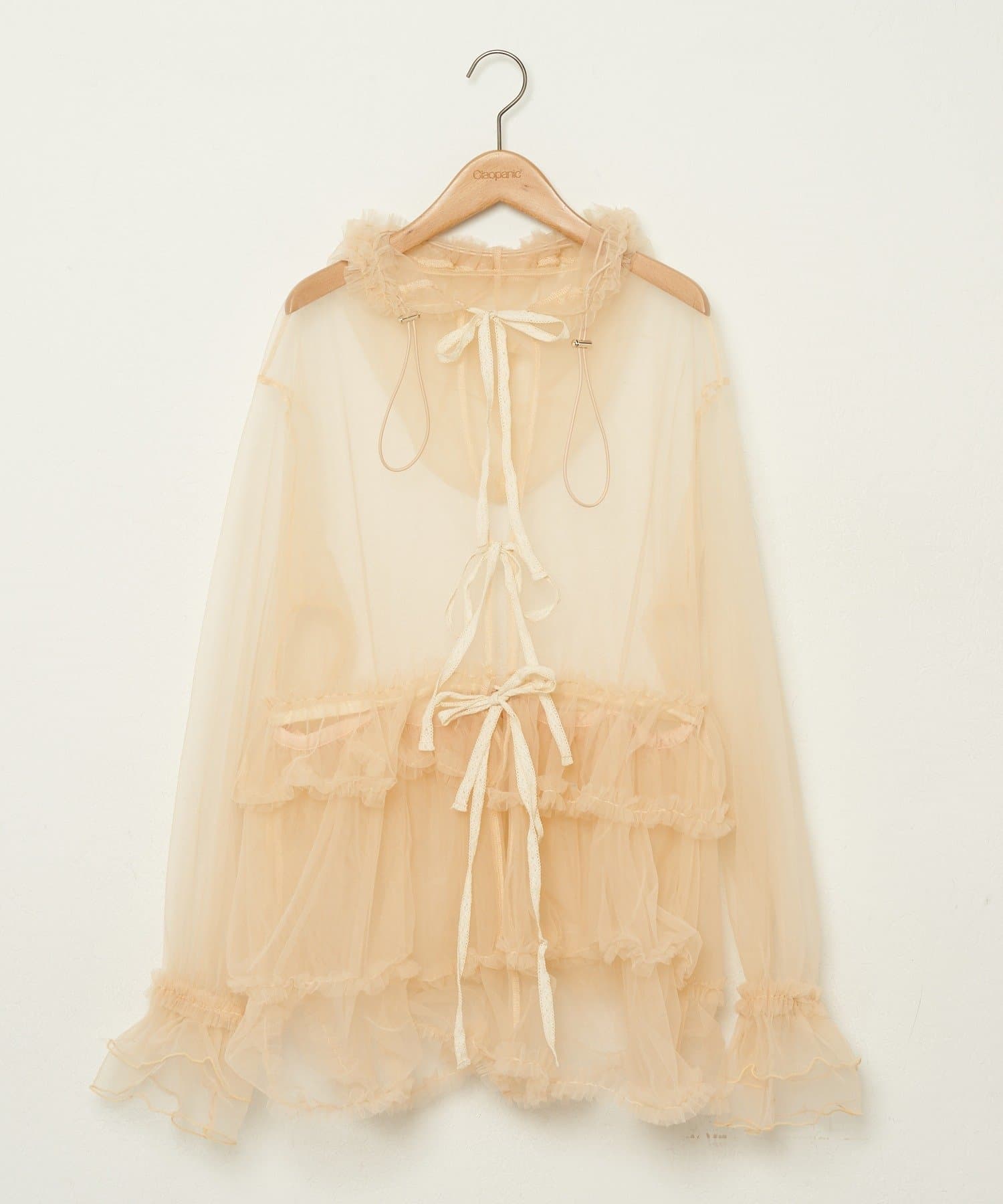 【@yuna_maruu企画】【Me+Me/ミープラスミー】チュールフリルシアーフーディーブラウス