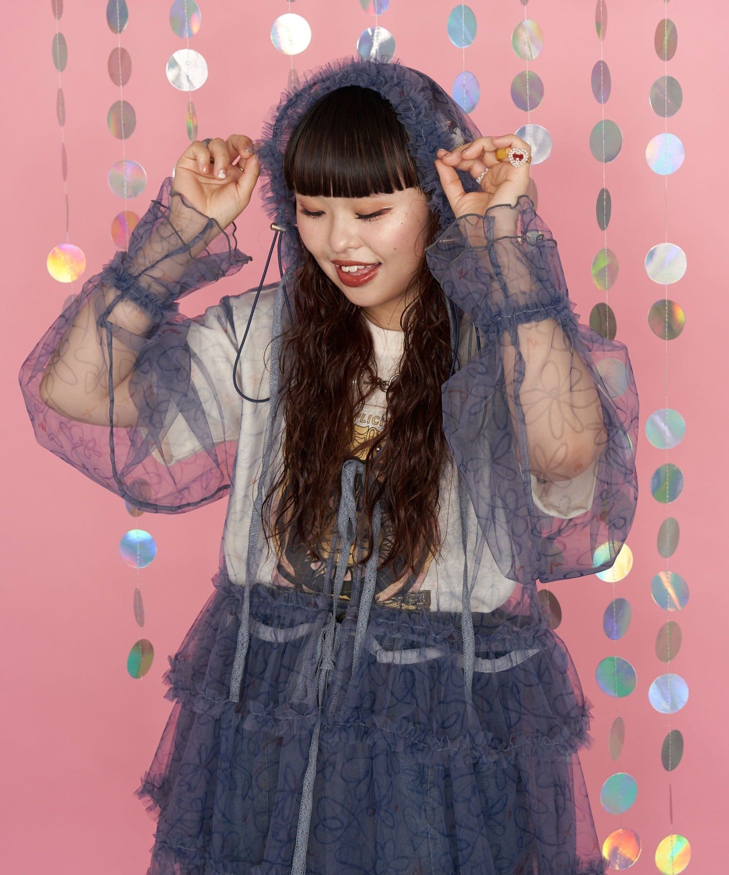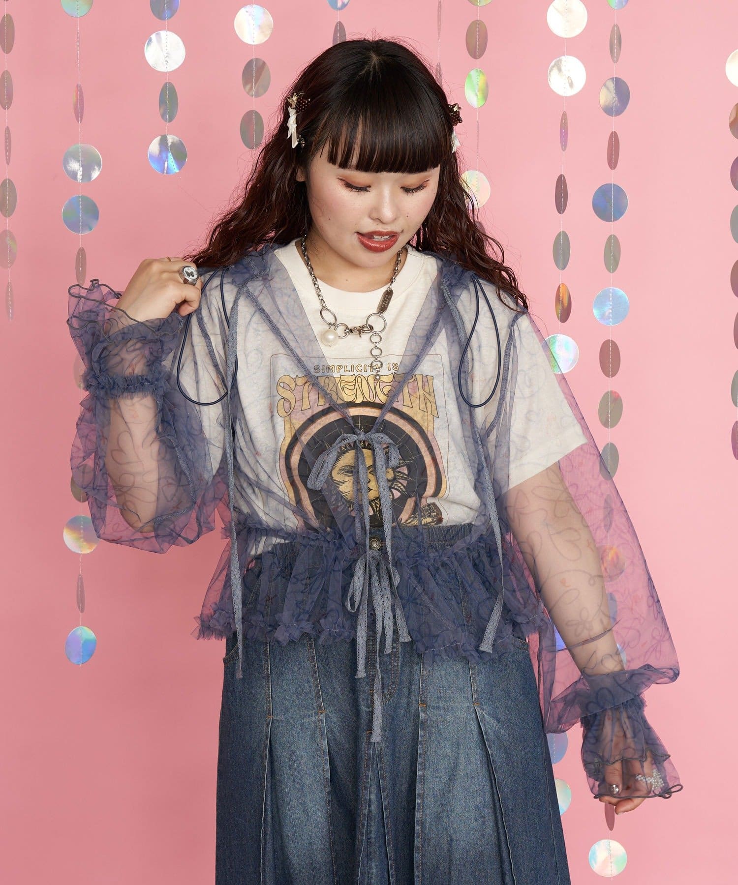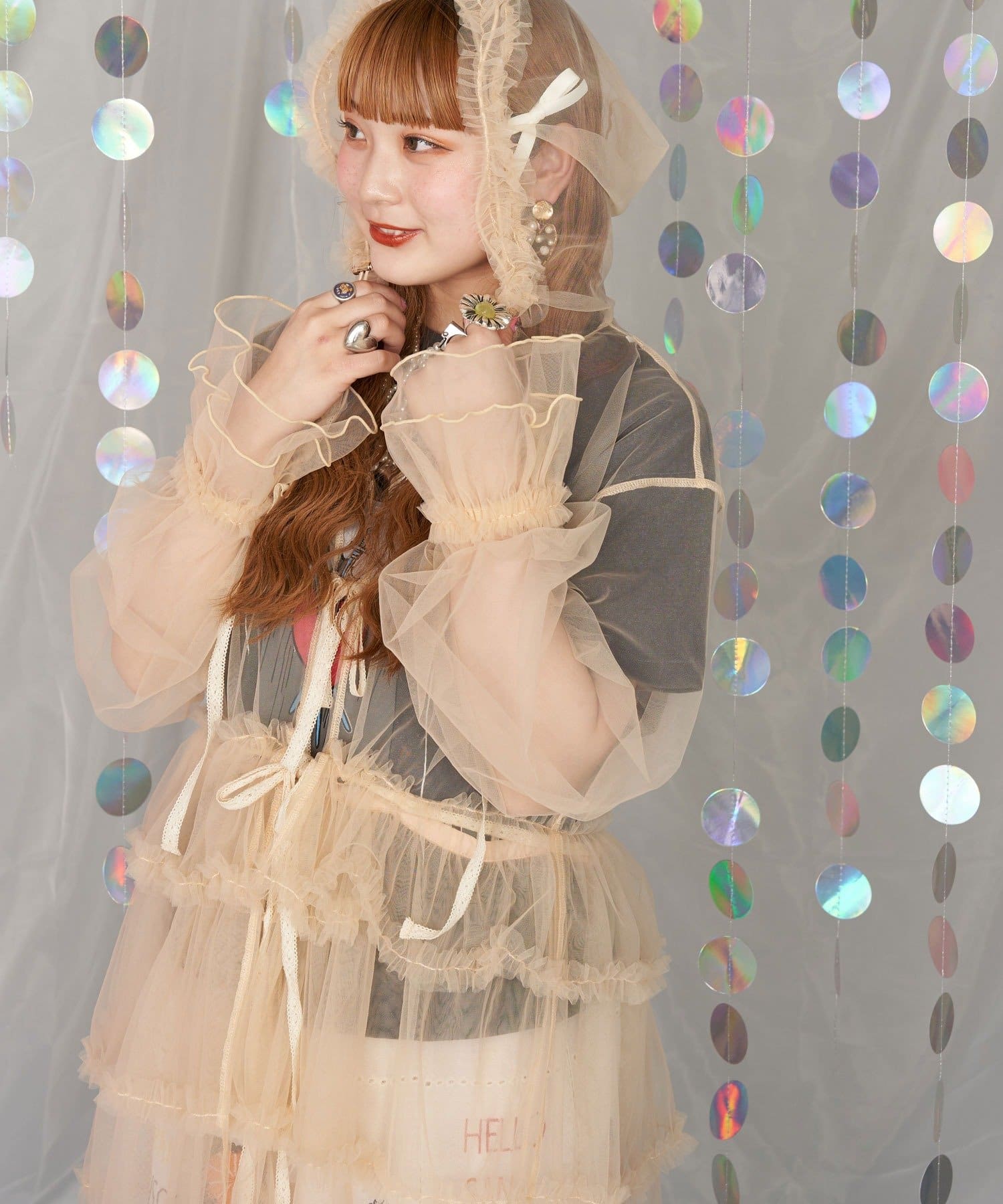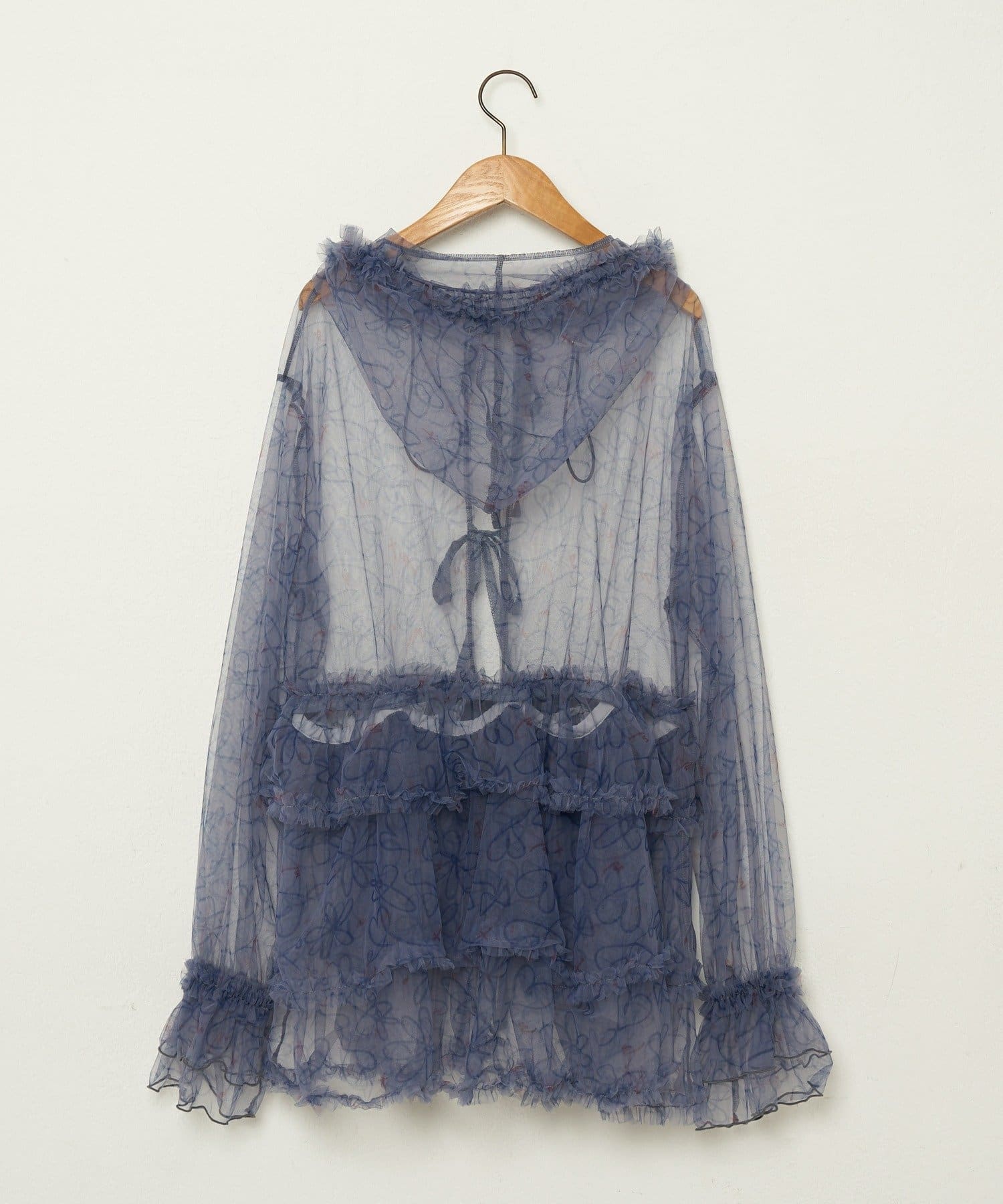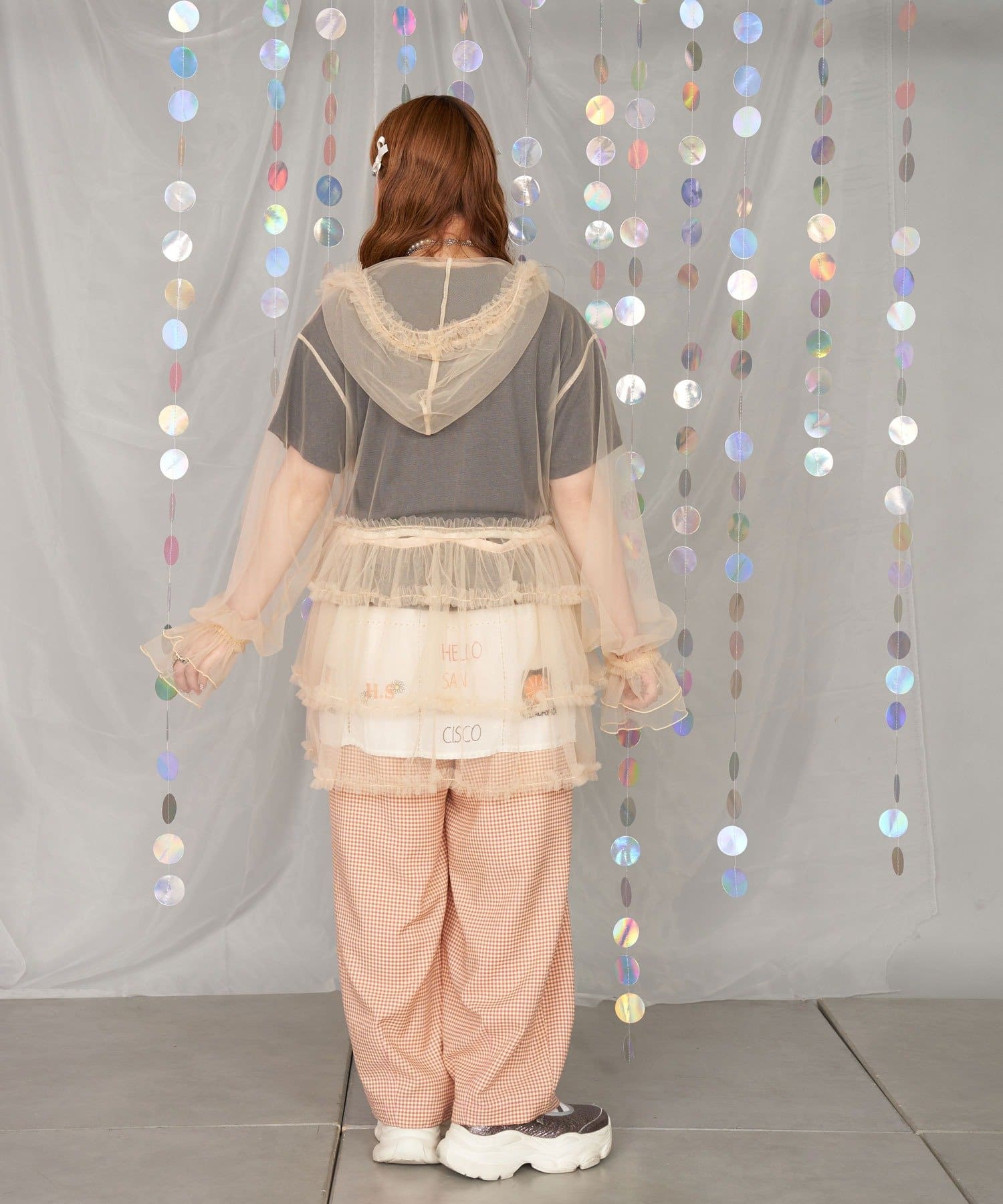 【@yuna_maruu企画】【Me+Me/ミープラスミー】チュールフリルシアーフーディーブラウス