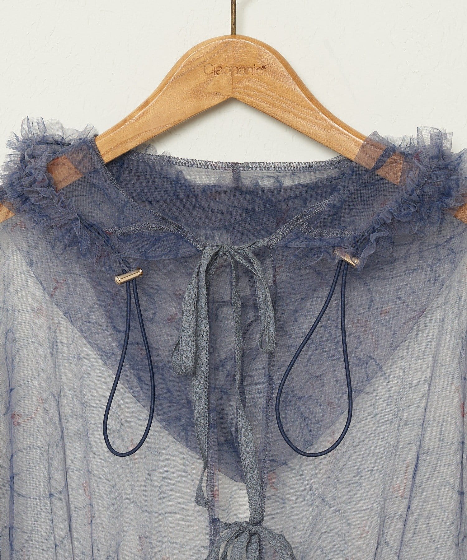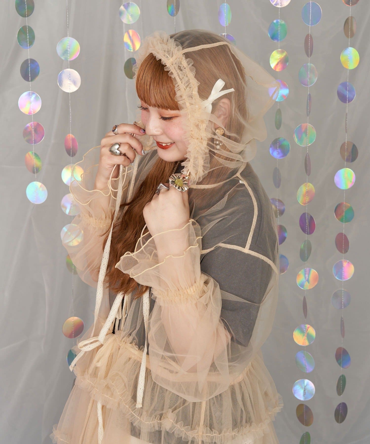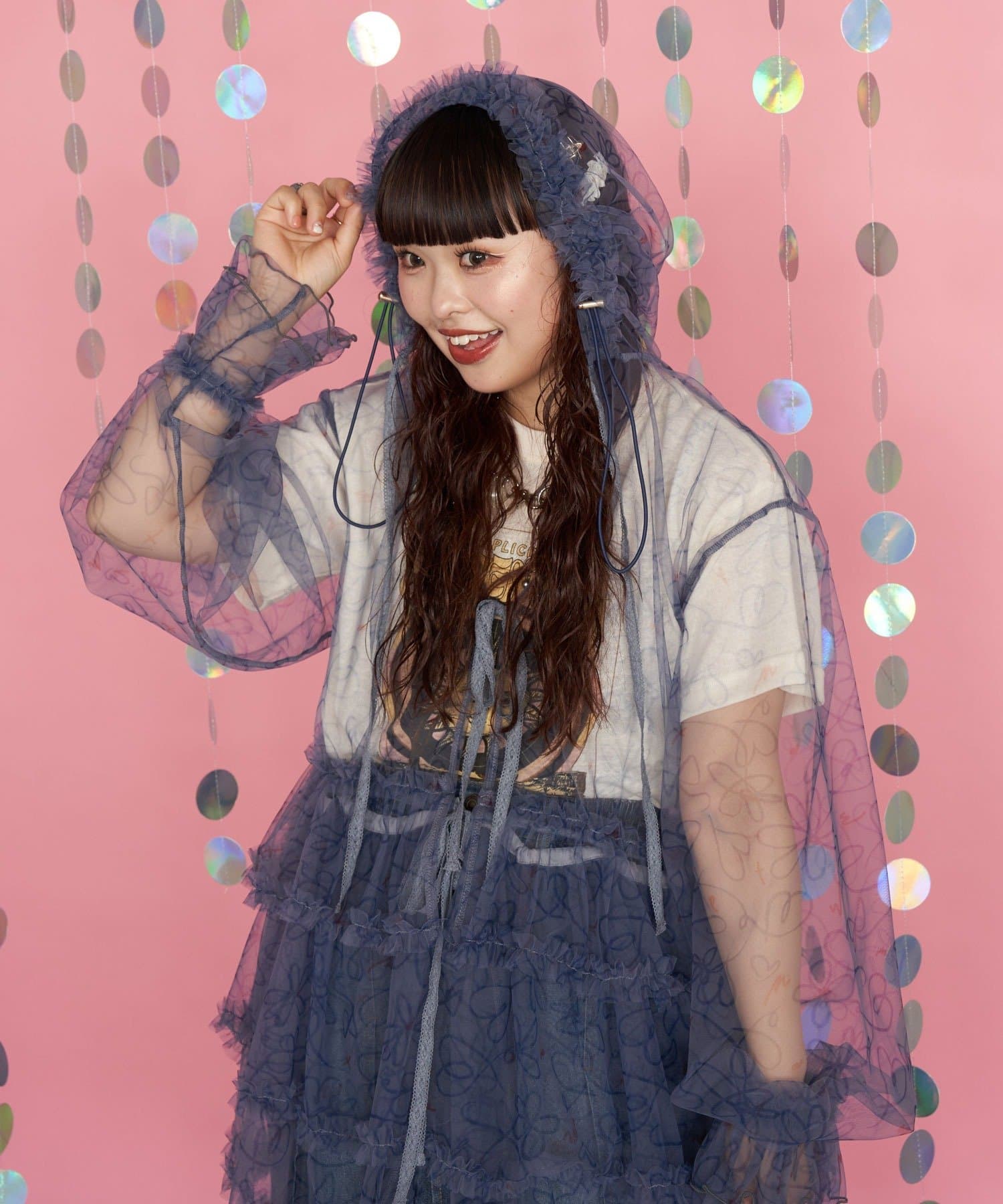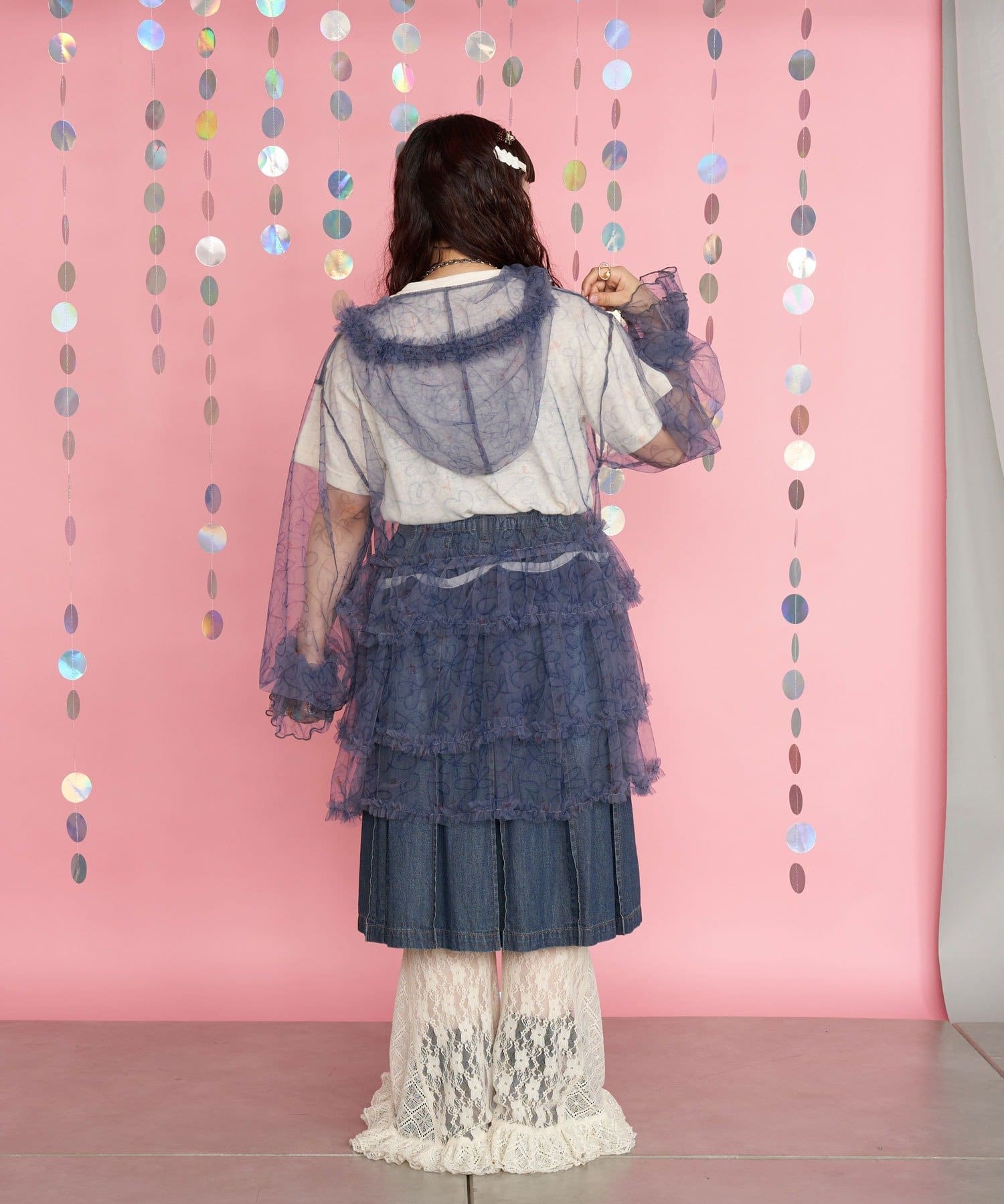 【@yuna_maruu企画】【Me+Me/ミープラスミー】チュールフリルシアーフーディーブラウス