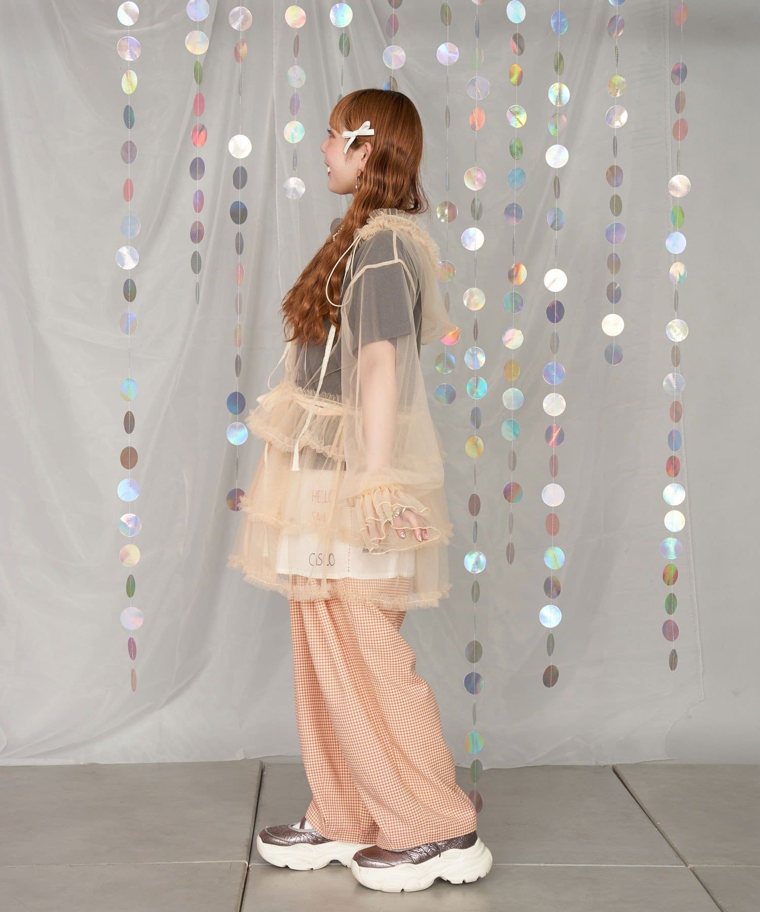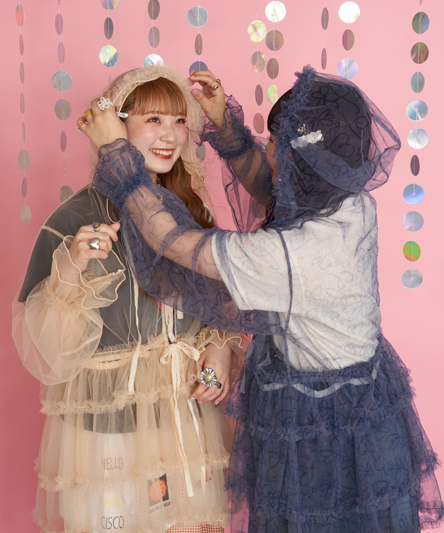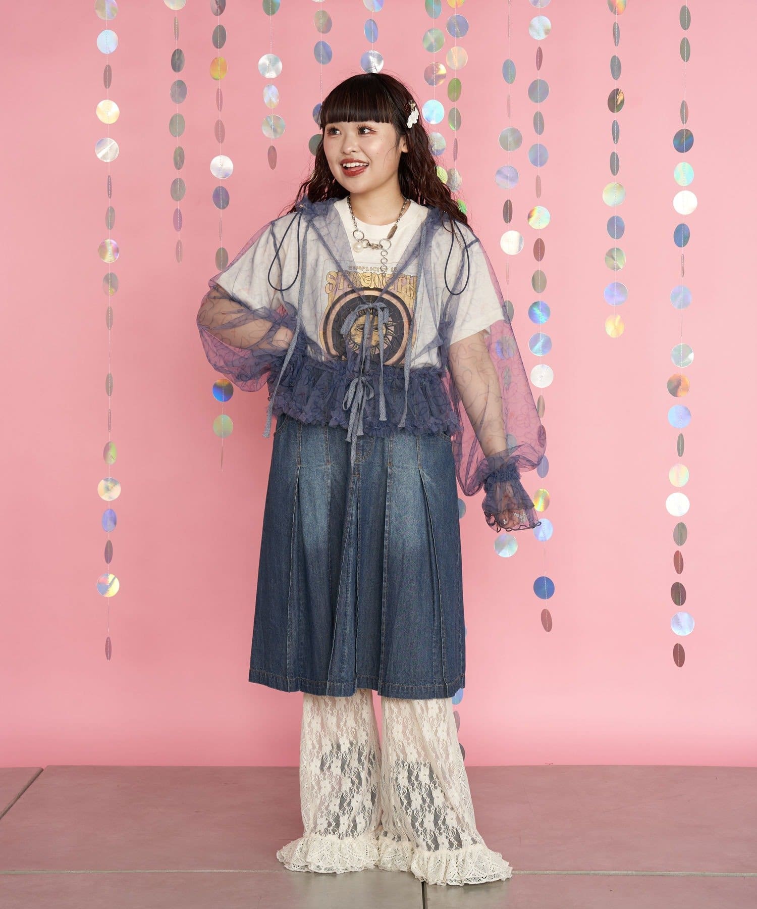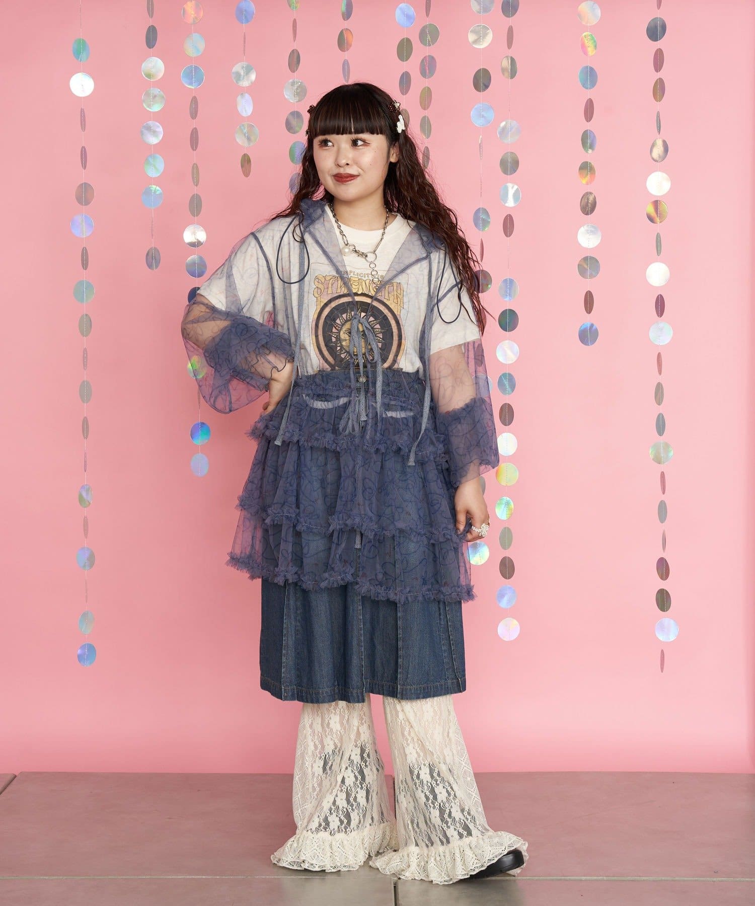 【@yuna_maruu企画】【Me+Me/ミープラスミー】チュールフリルシアーフーディーブラウス