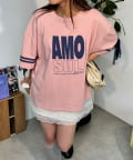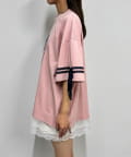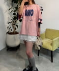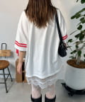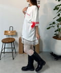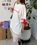 【neutral】リボンスリーブレースレイヤードTシャツワンピ