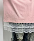 裾からのぞくレースがレイヤード風に仕上がり、一枚で着映えするアイテムです。
