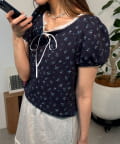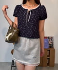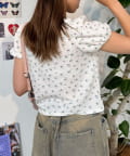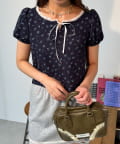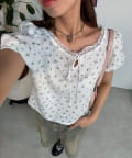 表面感のあるワッフル素材に小花柄をプリントした、甘さとラフさのバランスが絶妙なブラウス。