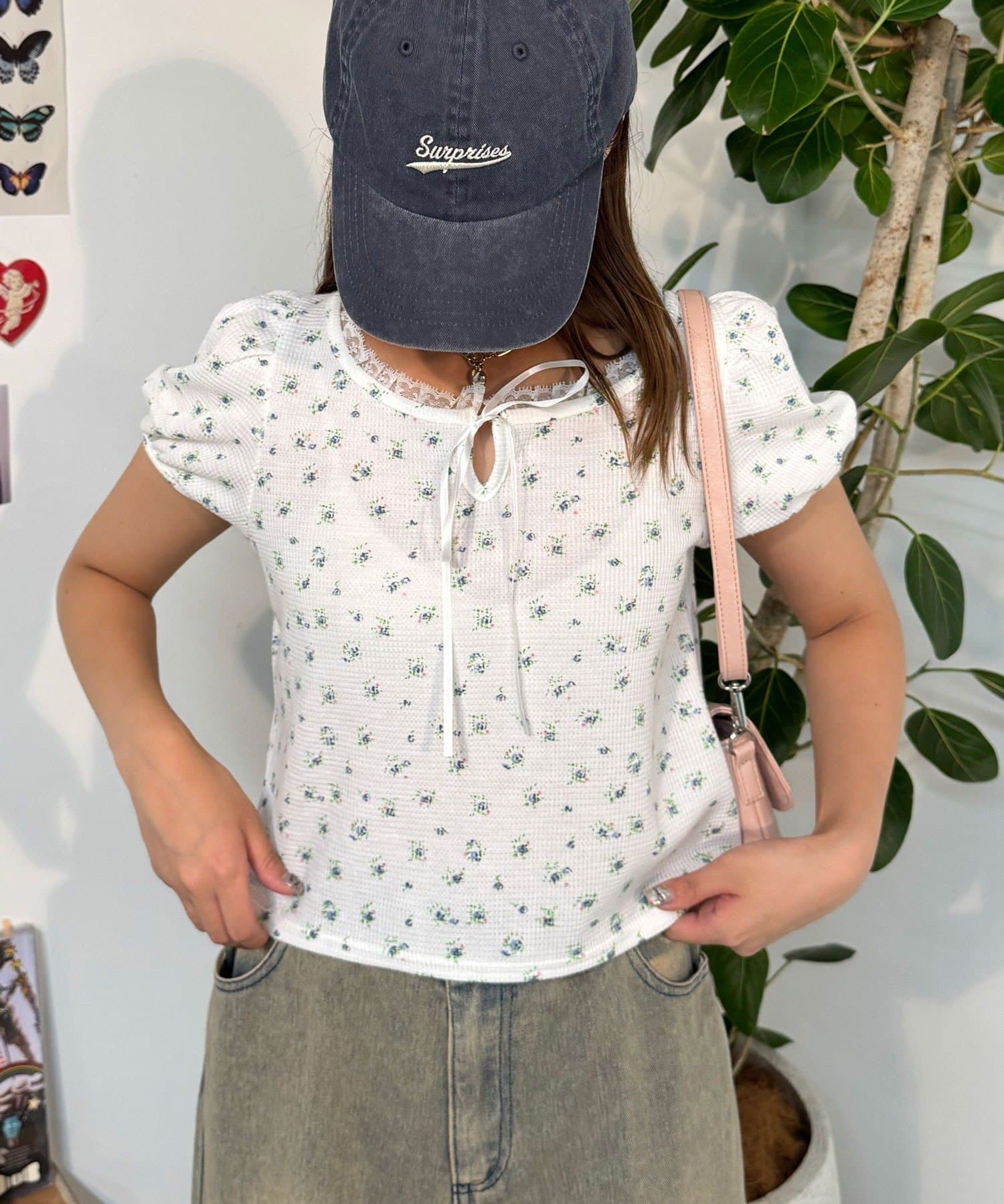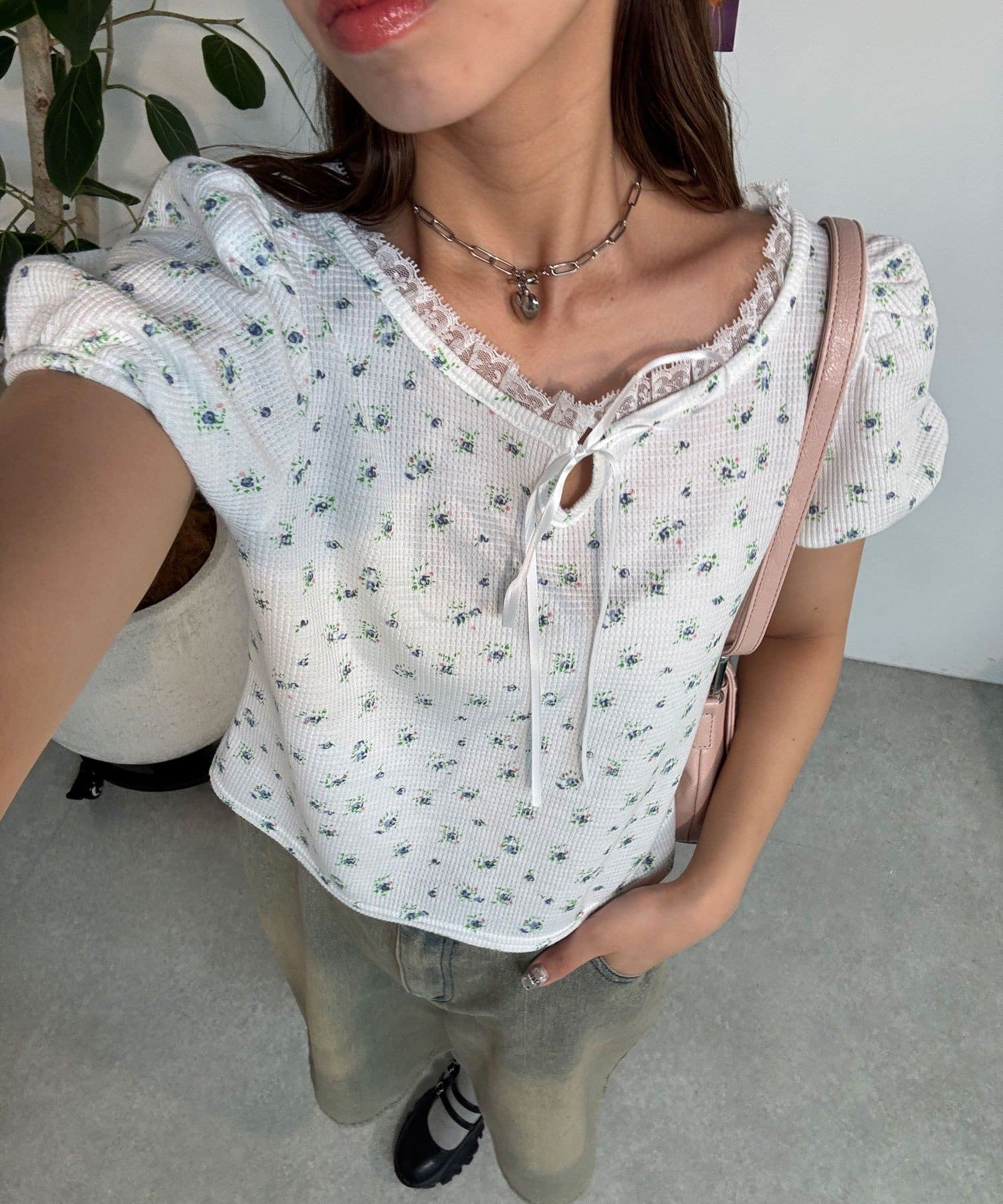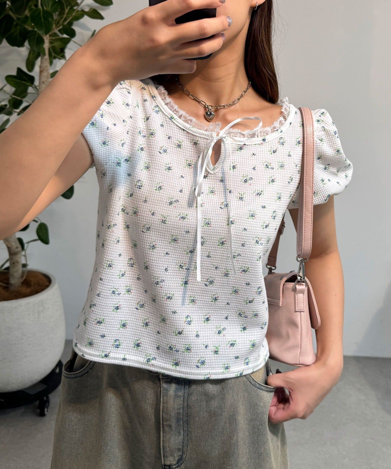 ”花柄×ワッフル”でちょっと差がつくゆるガーリートップス