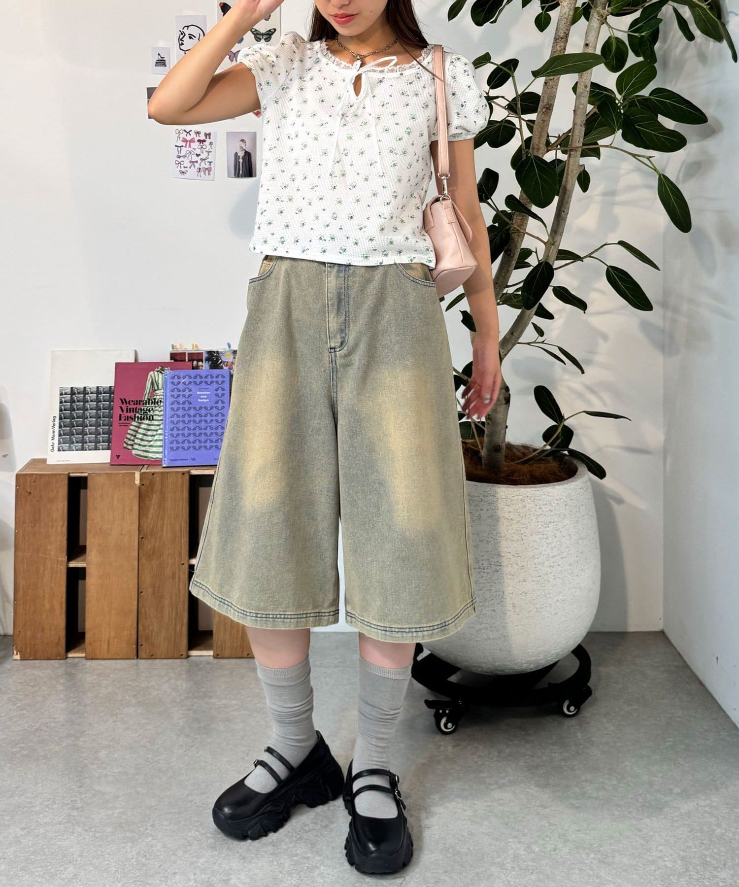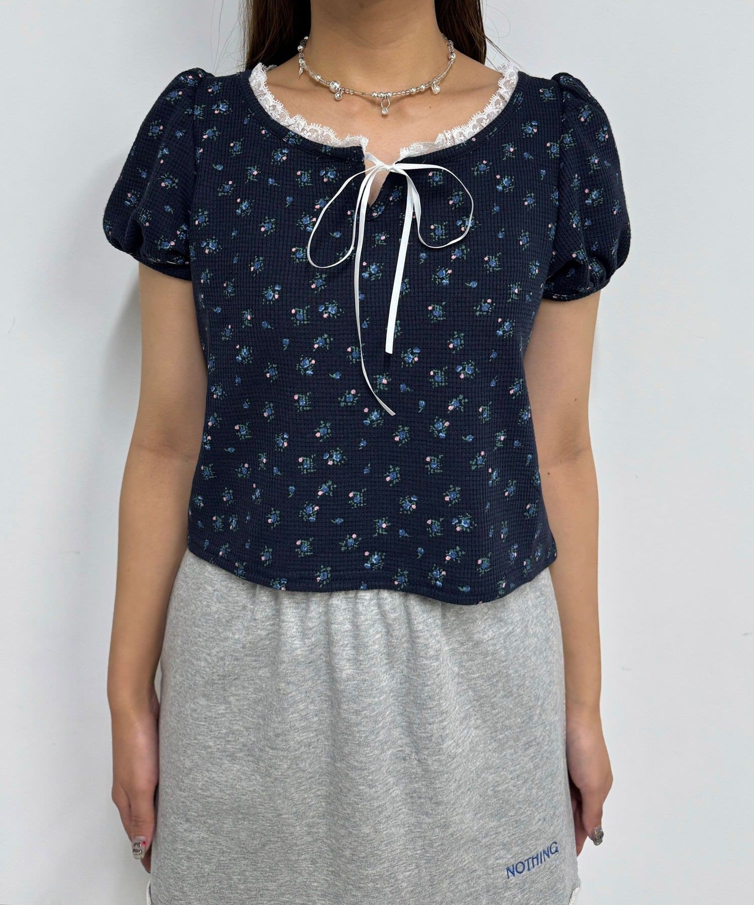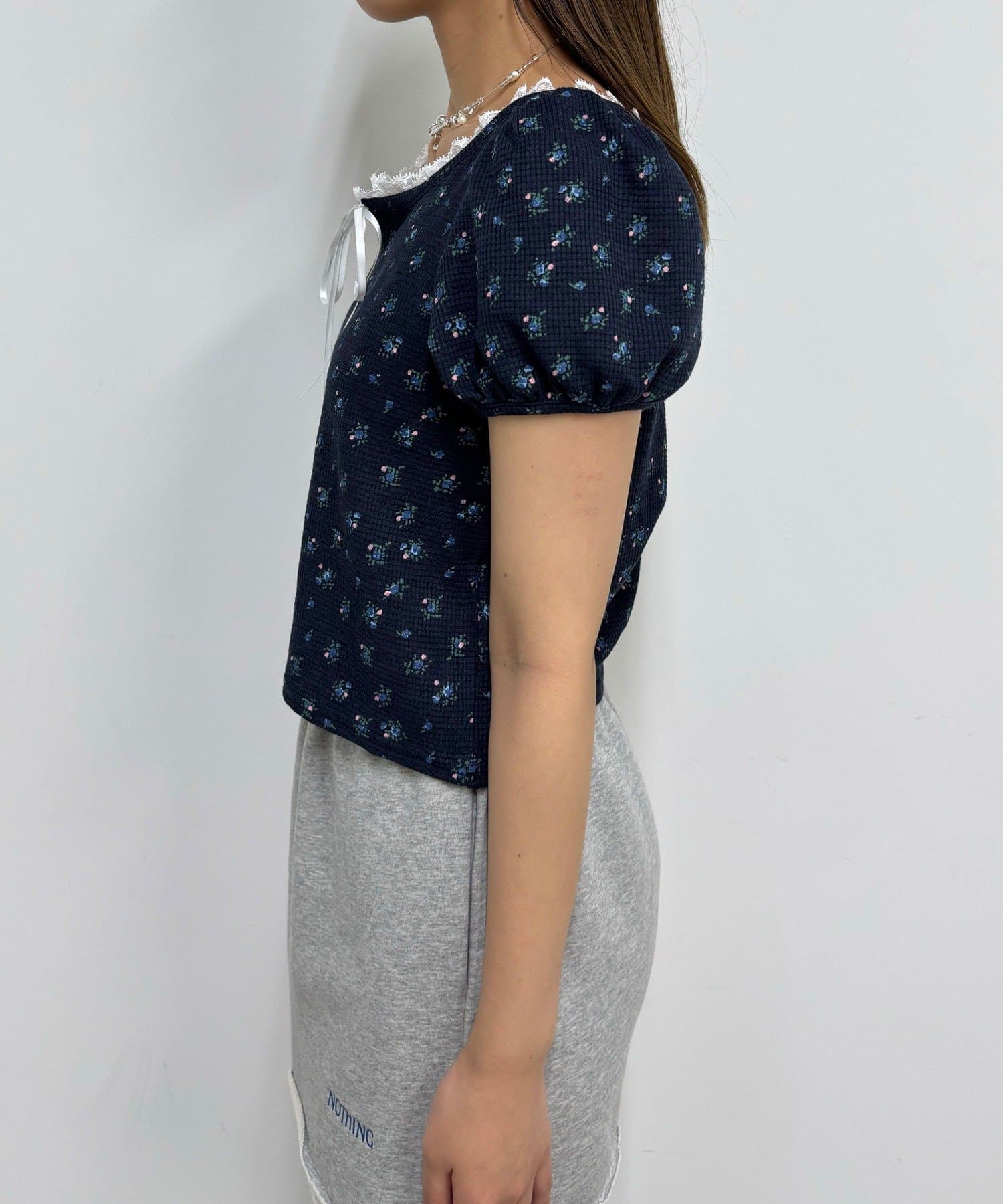 ”花柄×ワッフル”でちょっと差がつくゆるガーリートップス