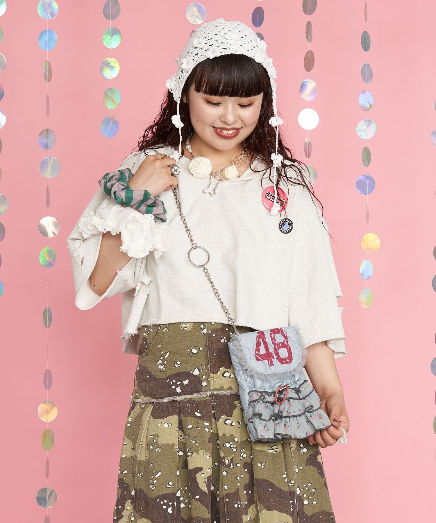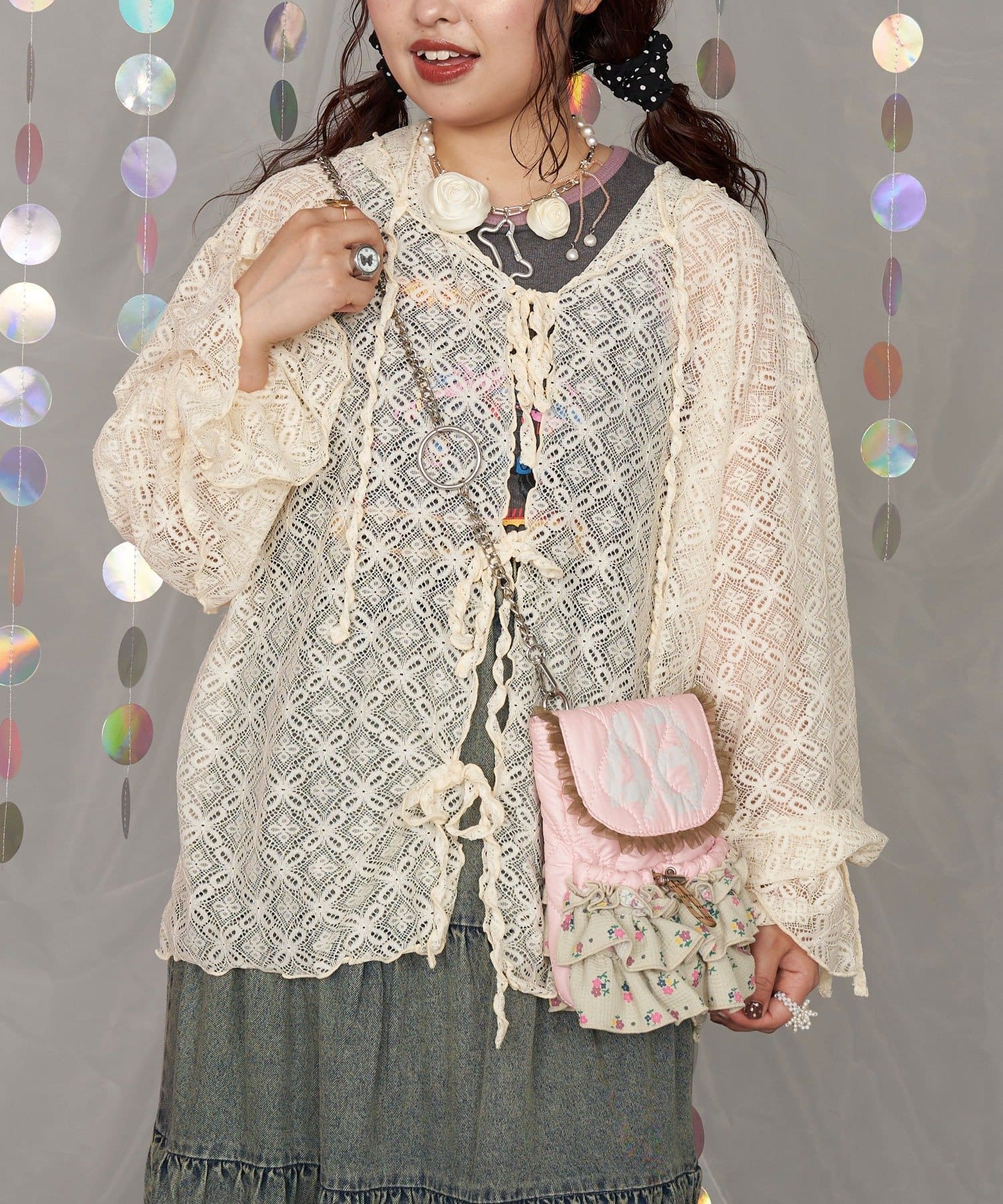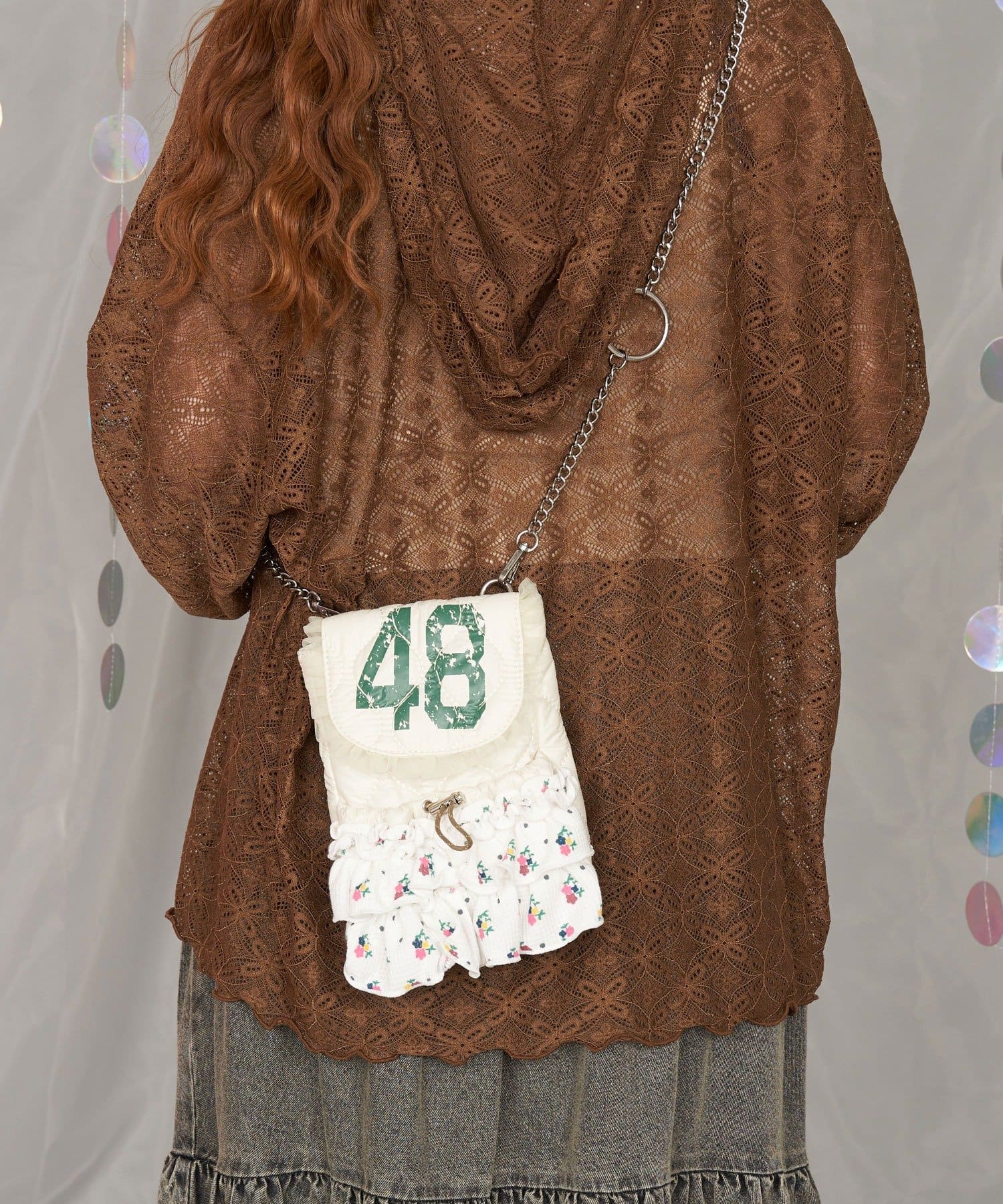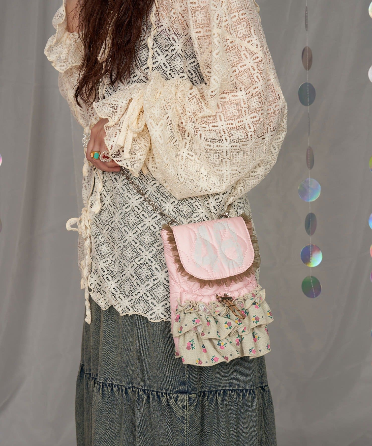 品番 CPZ1051512A0005 素材 【表地】ポリエステル100%【裏地】ポリエステル100%【フリル】ポリエステル65%, 綿35%【チュール】ナイロン100% 原産国 中国 サイズ ONE カテゴリ バッグ > ショルダーバッグ タイプ レディース ギフト ラッピング 可 取り扱い - アイテムサイズ