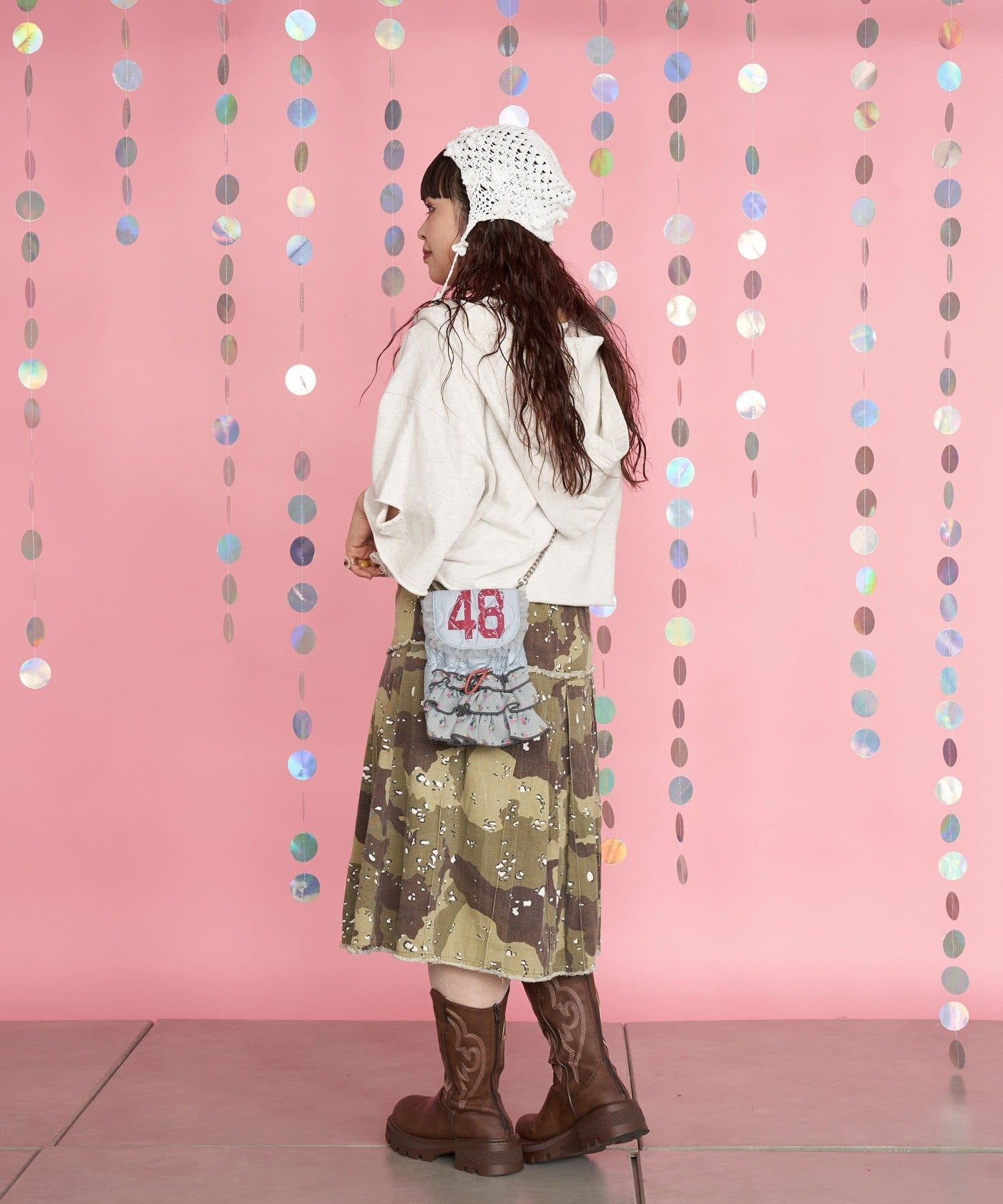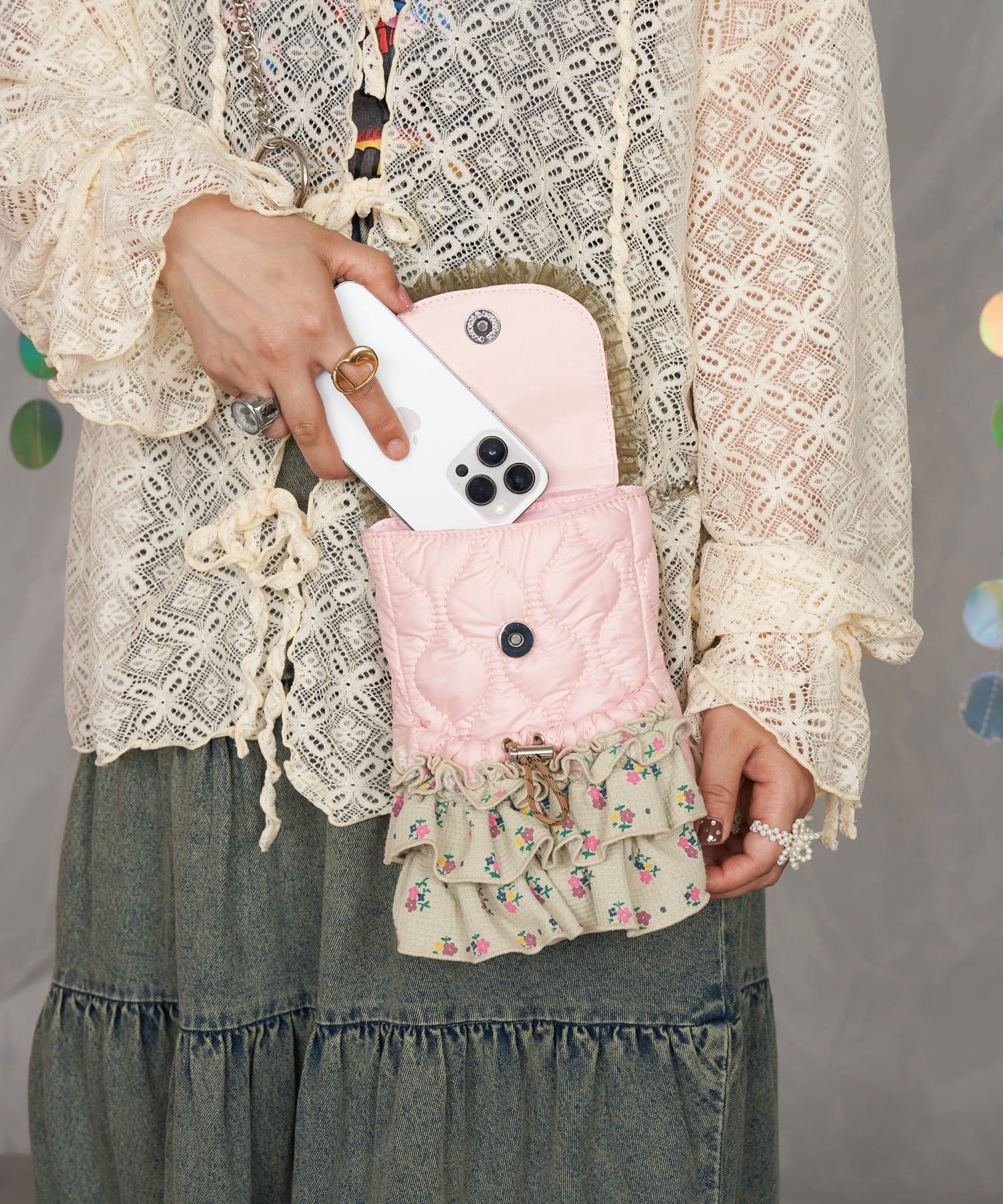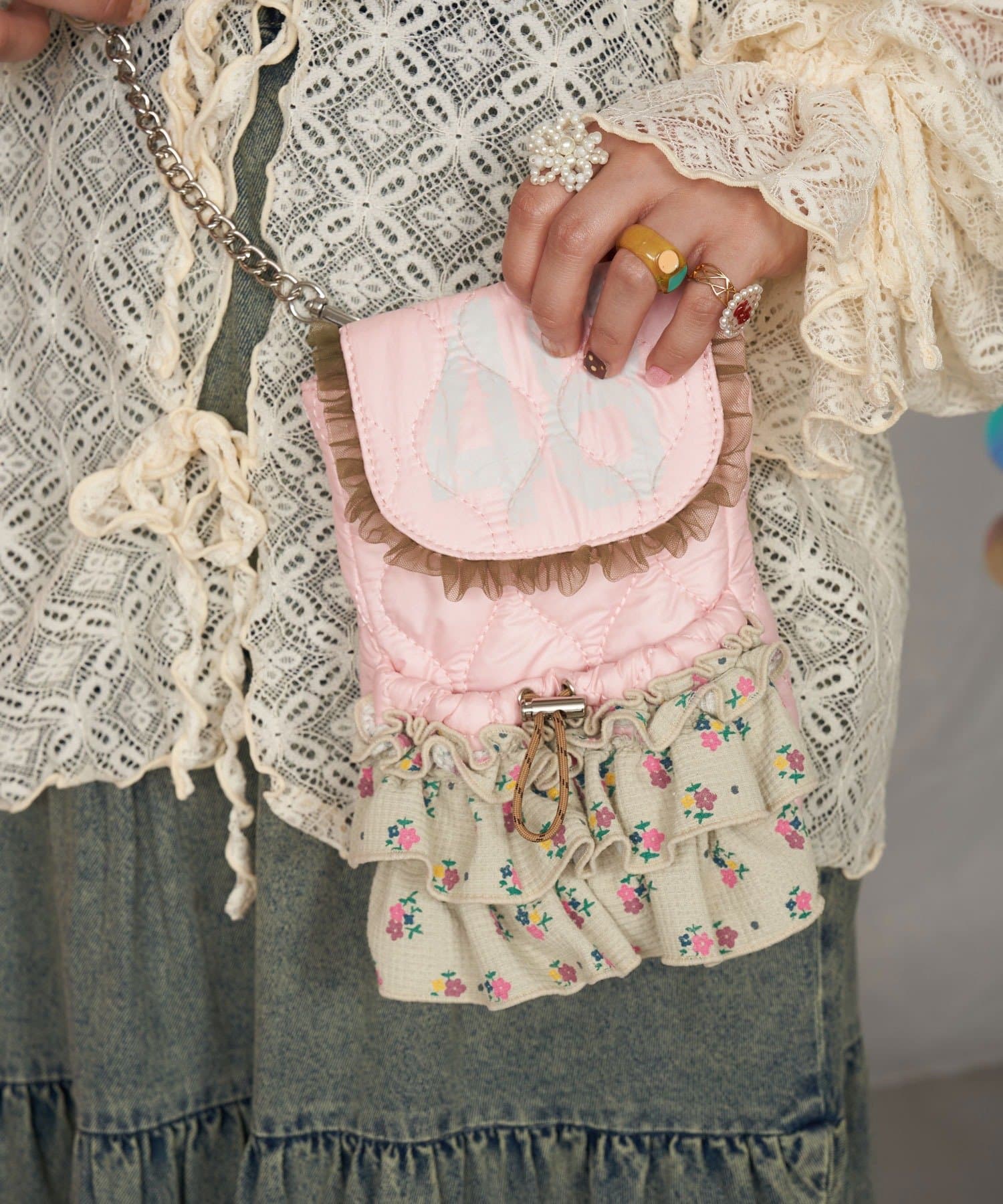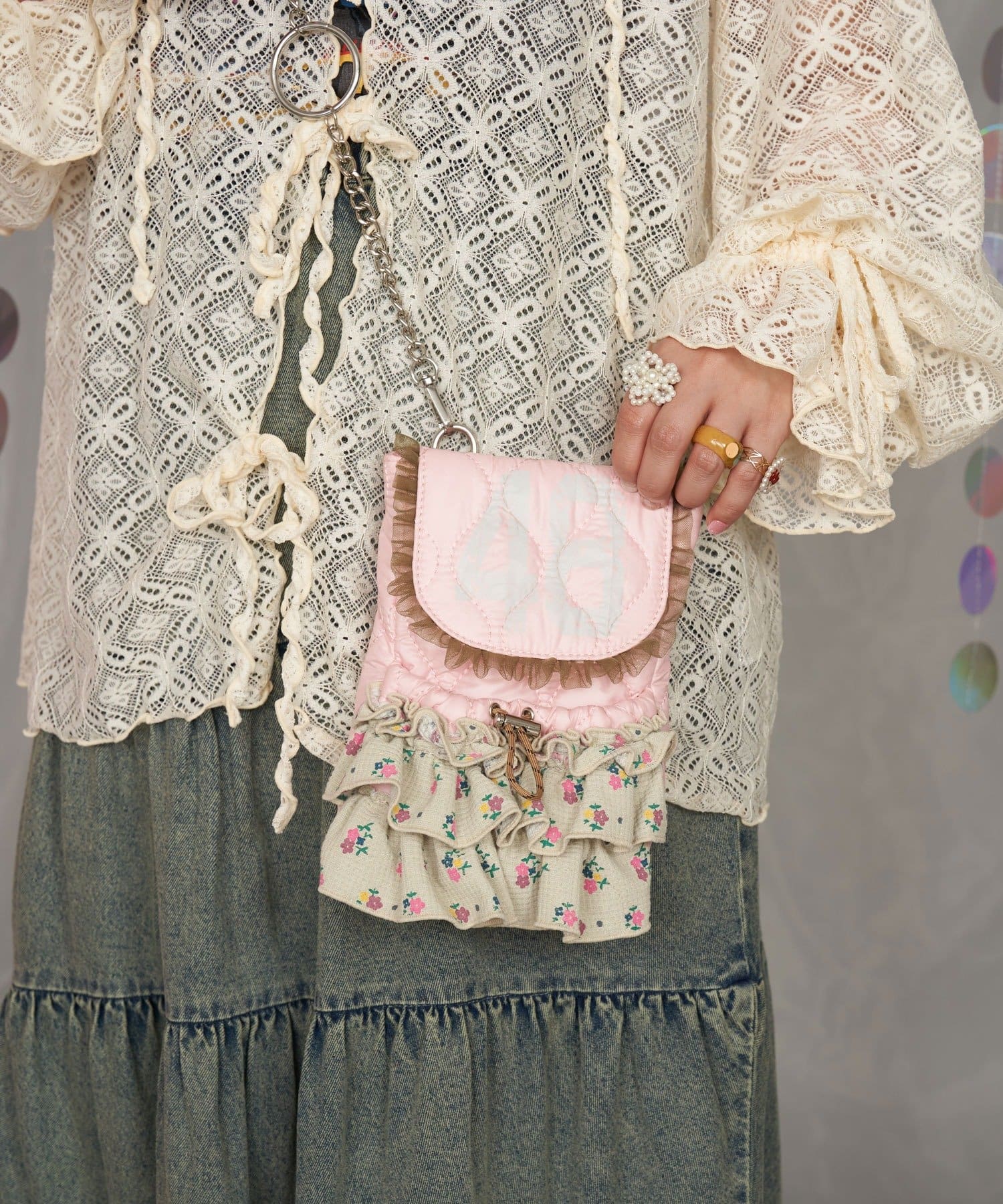 甘くてレトロな印象のワッフルフリルショルダーバッグ