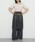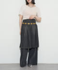 メタリックな輝きが腰まわりに映え、コーディネートのアクセントにぴったり。