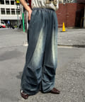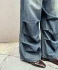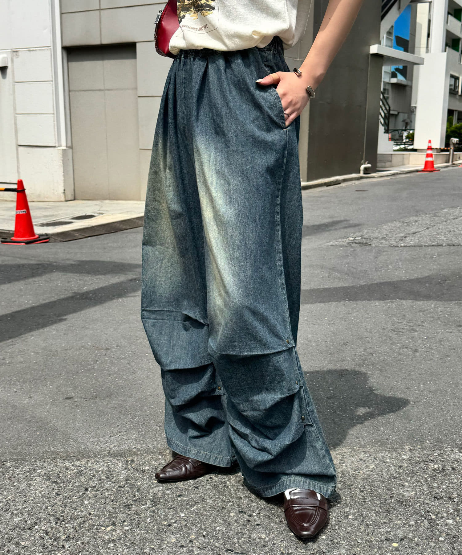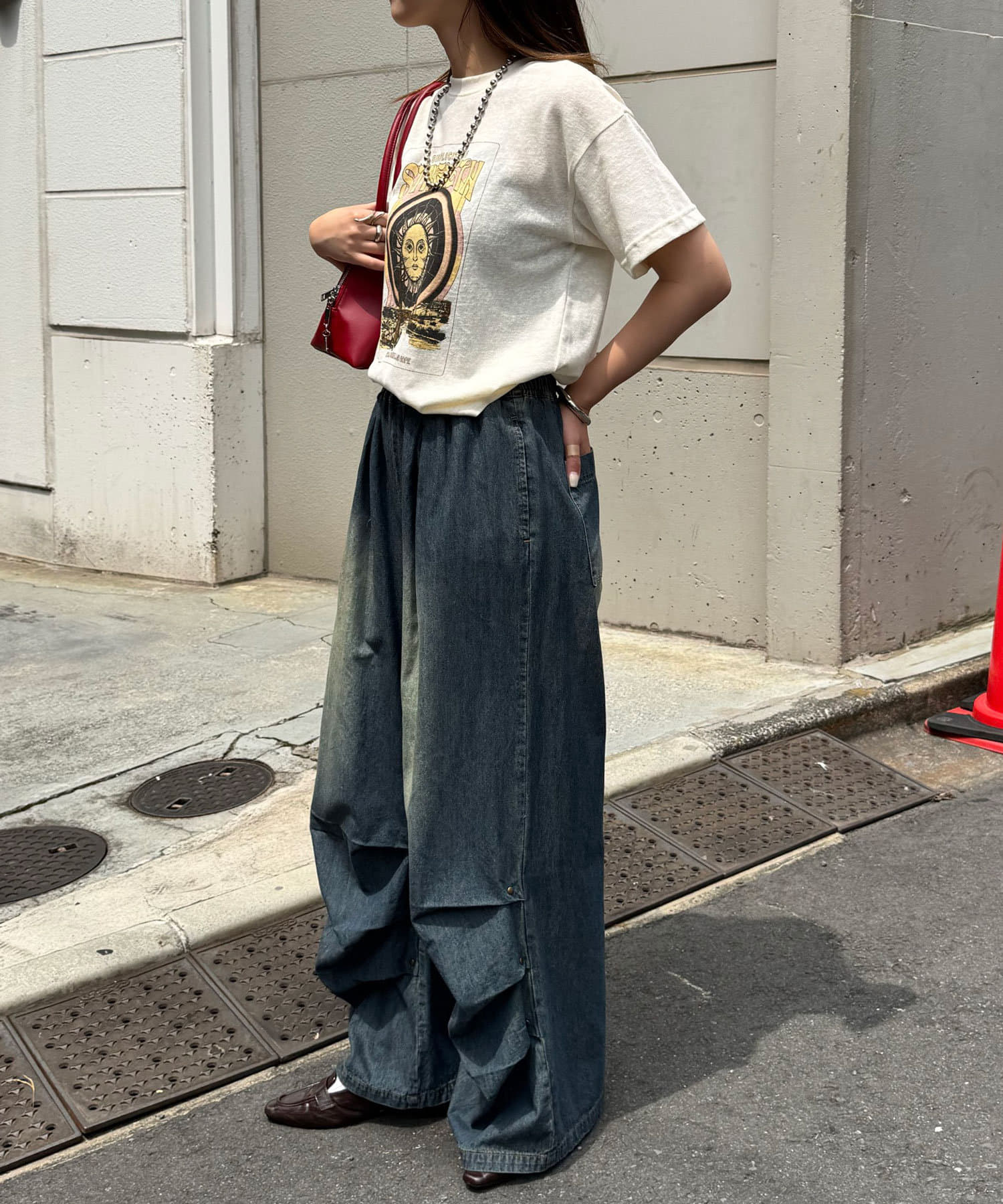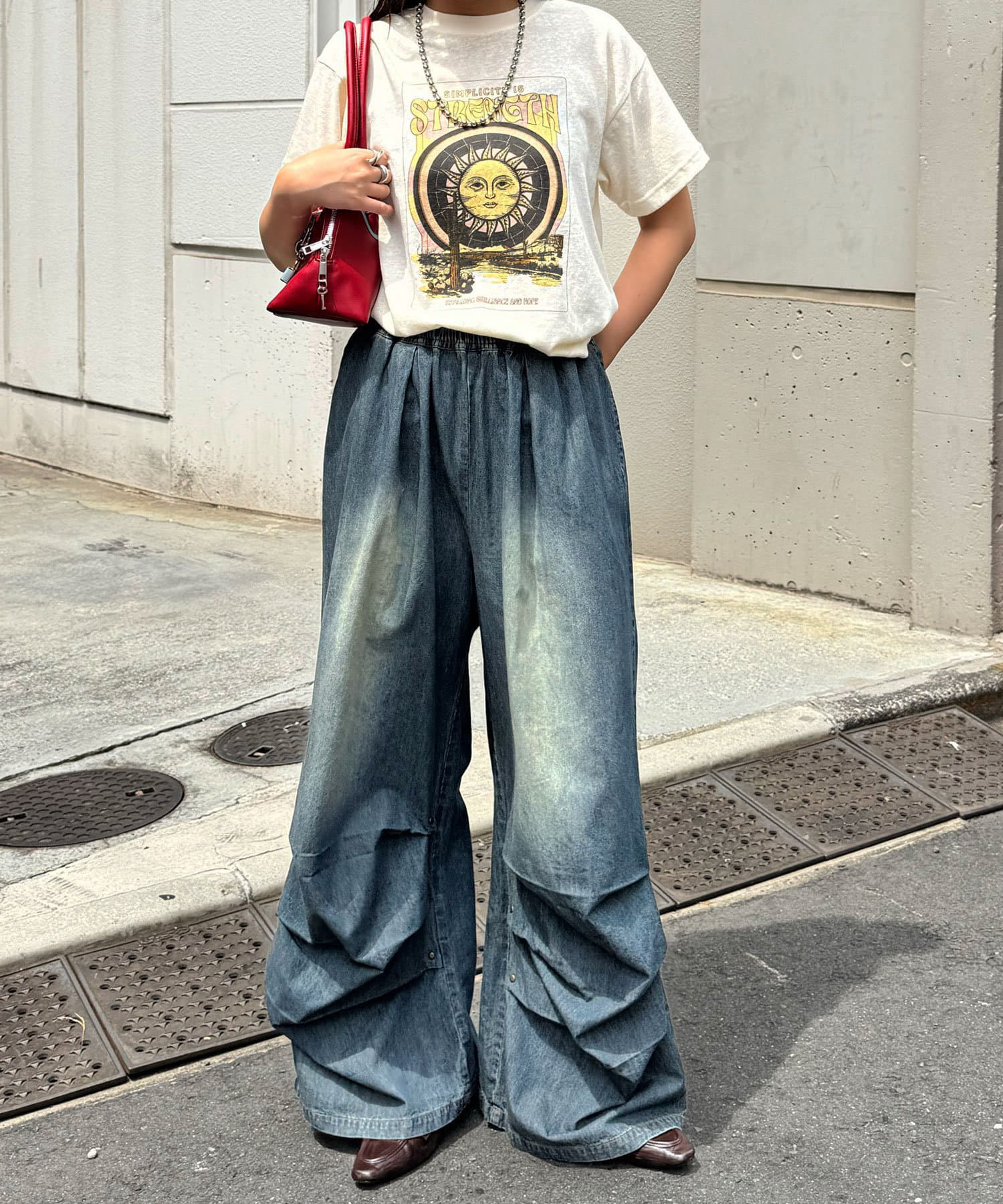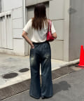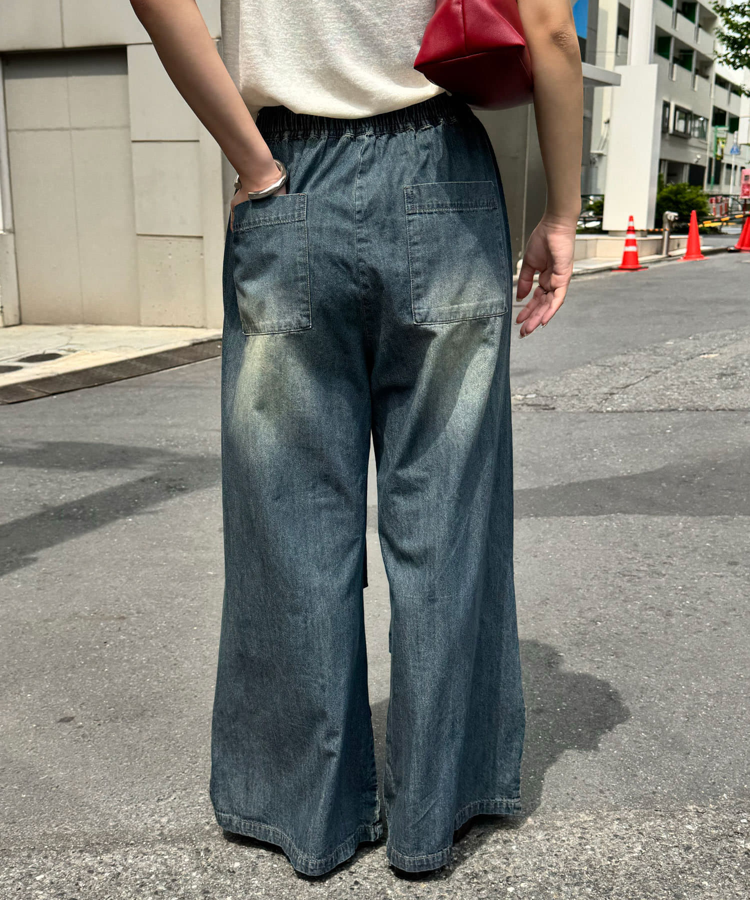 ヴィンテージ感のある色落ちと、ほどよくラフなワイドストレートシルエットが今年らしい雰囲気。