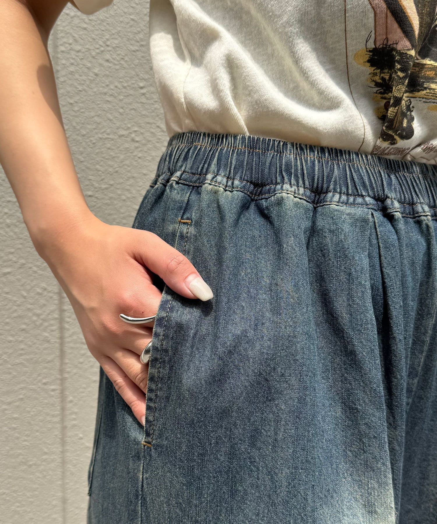 ウエストはゴム+内紐仕様で、見た目以上にリラックス感のあるはき心地もうれしいポイントです。