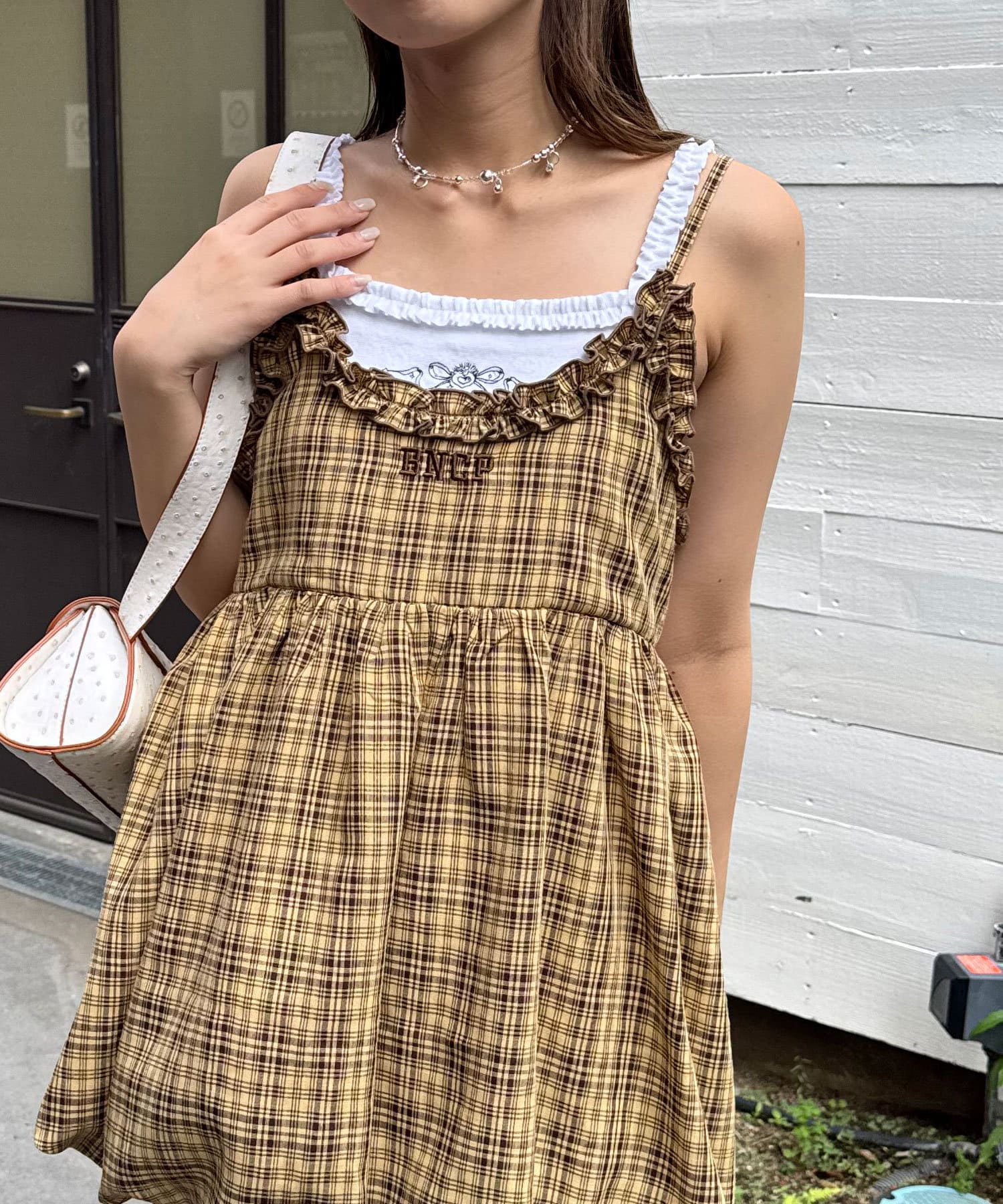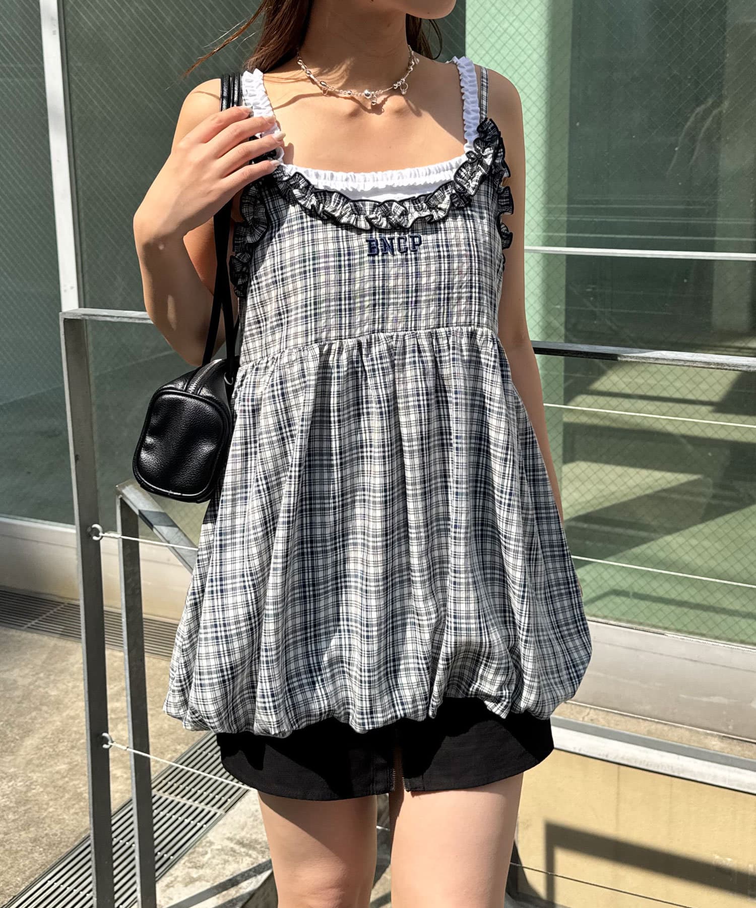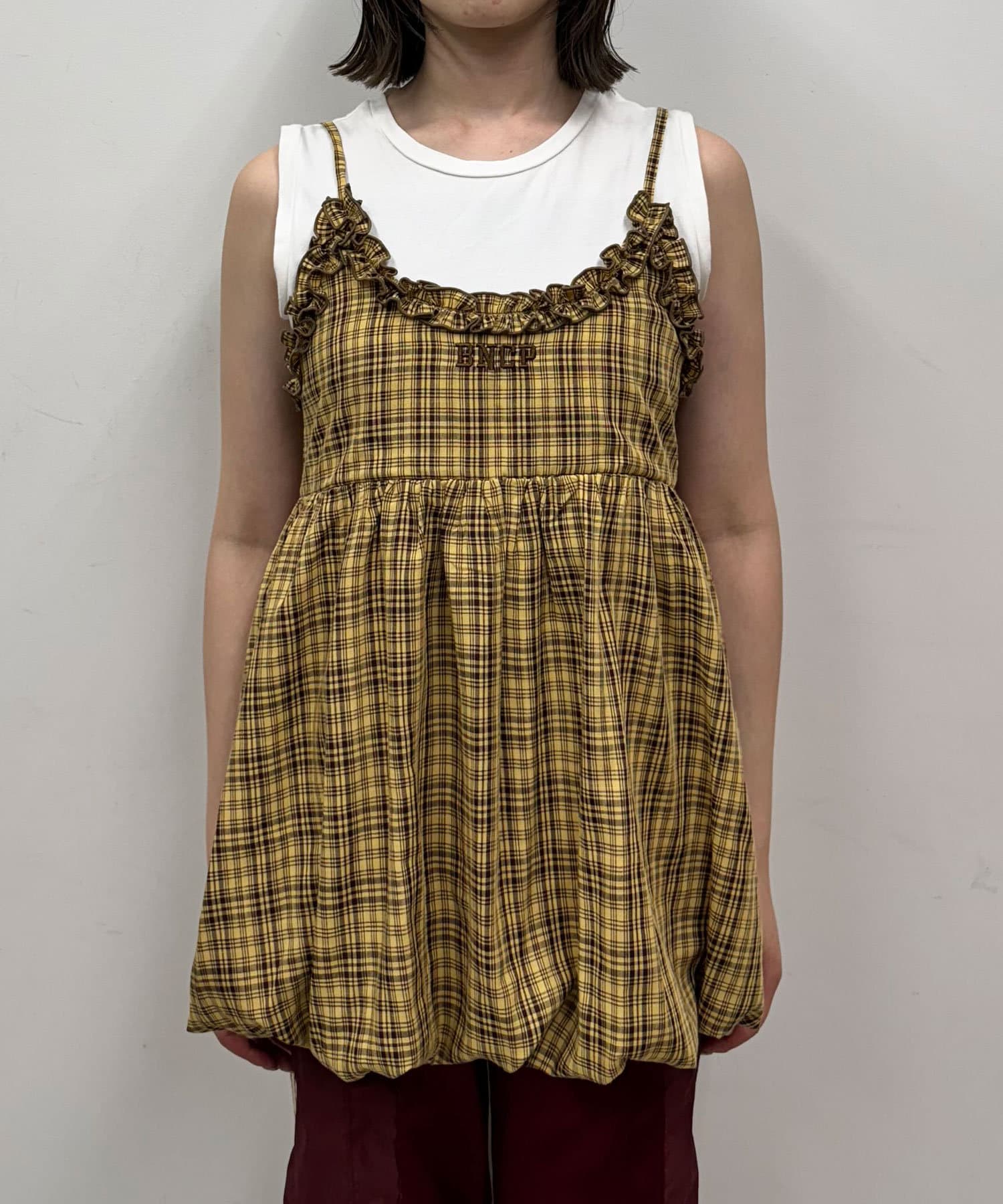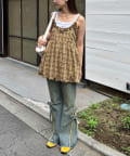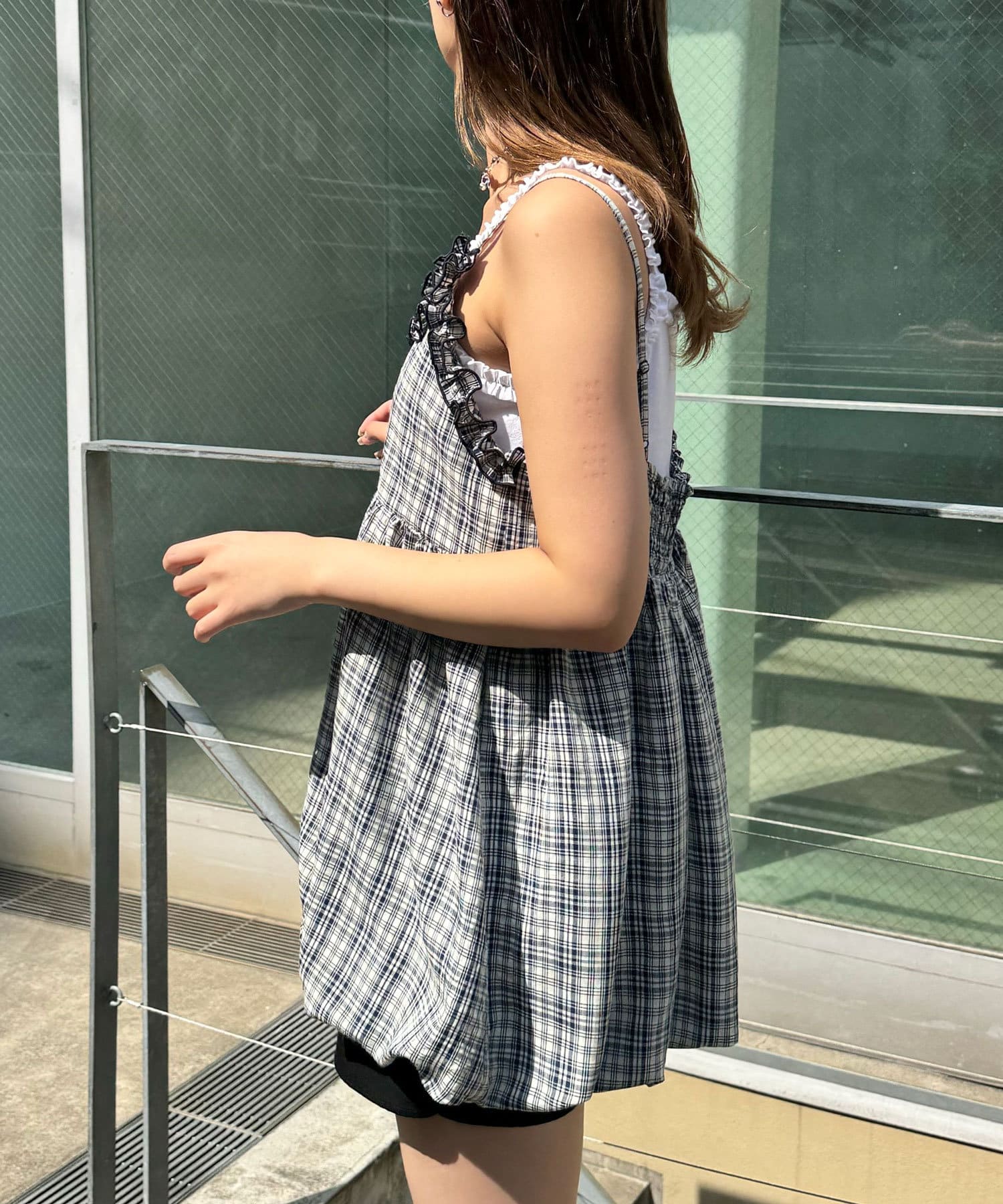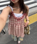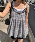 フリルチェックバルーンキャミビスチェ