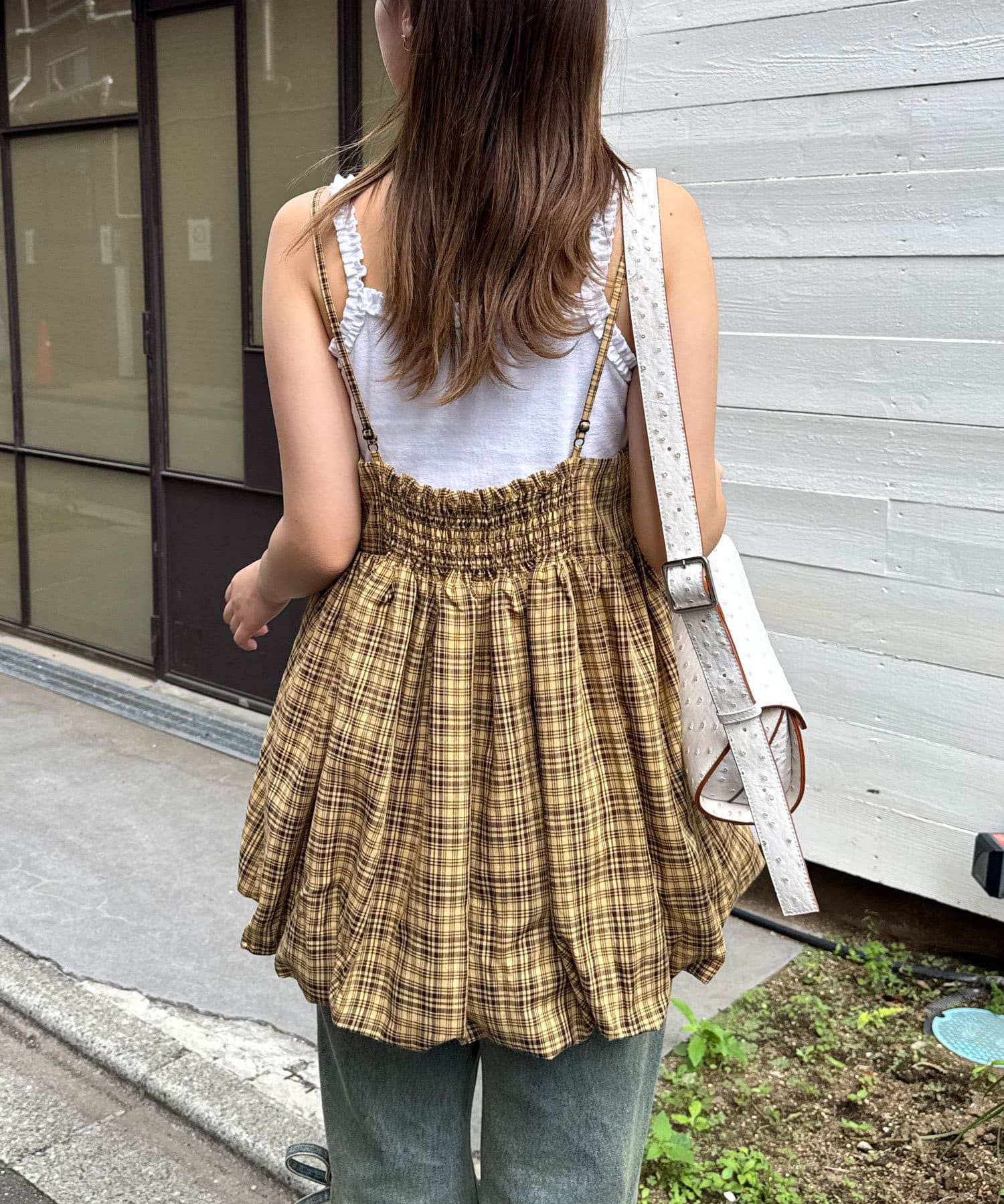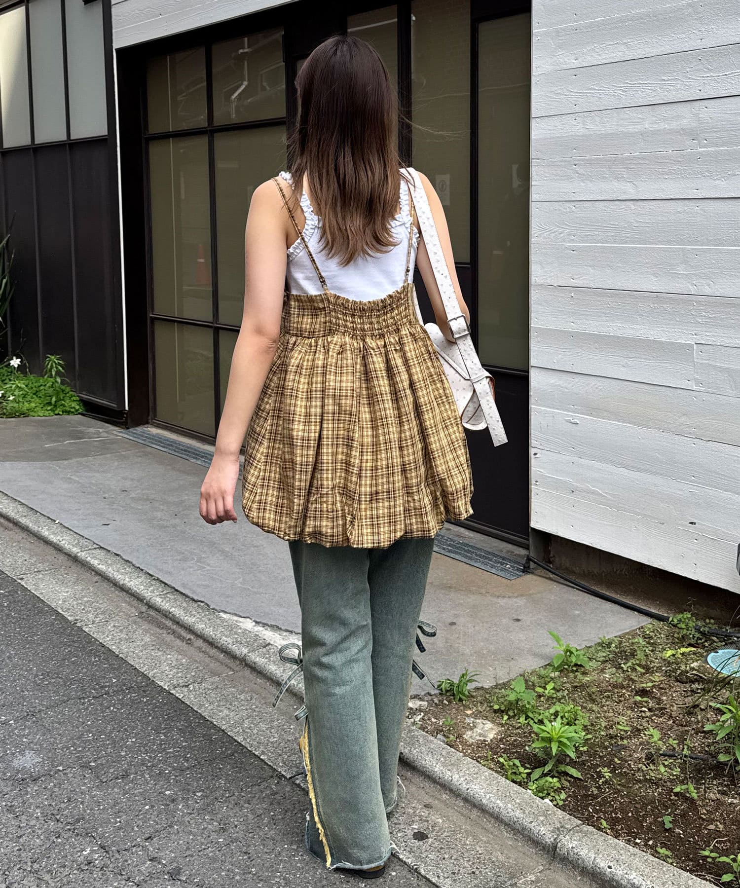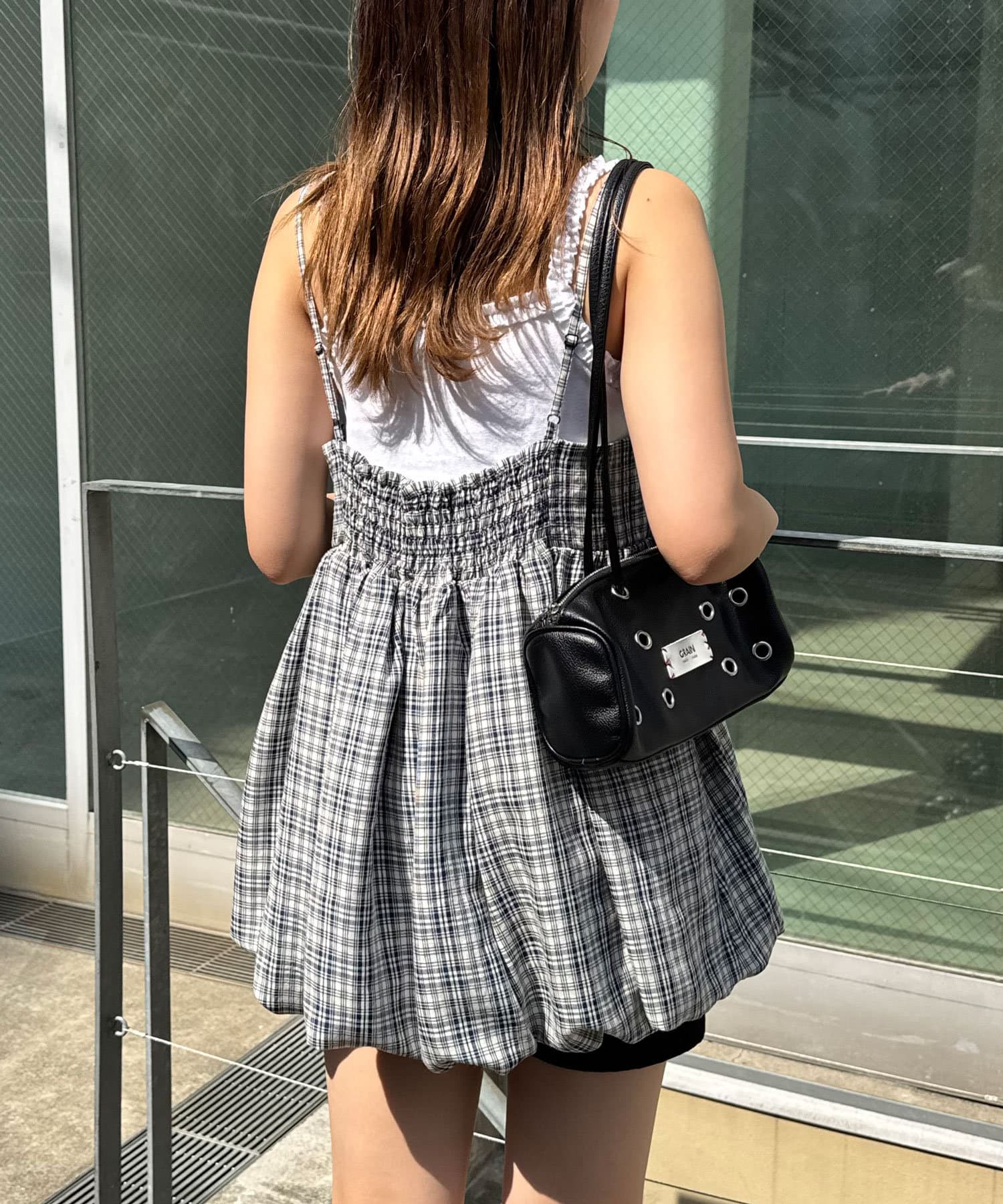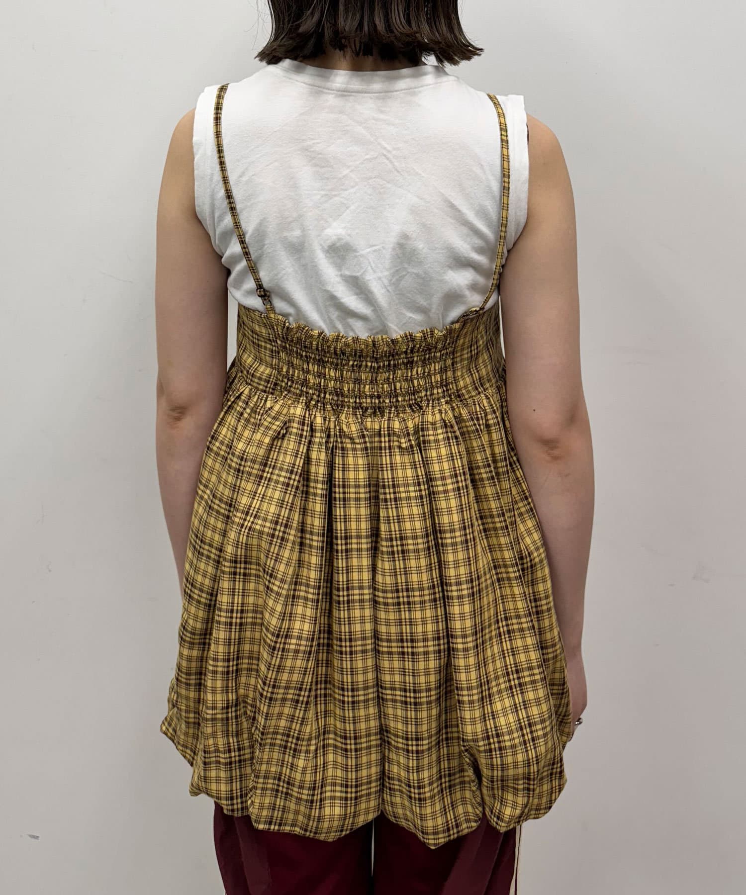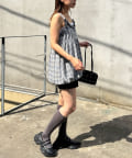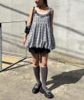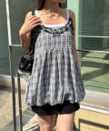 ふんわりバルーンシルエットのチェックビスチェ