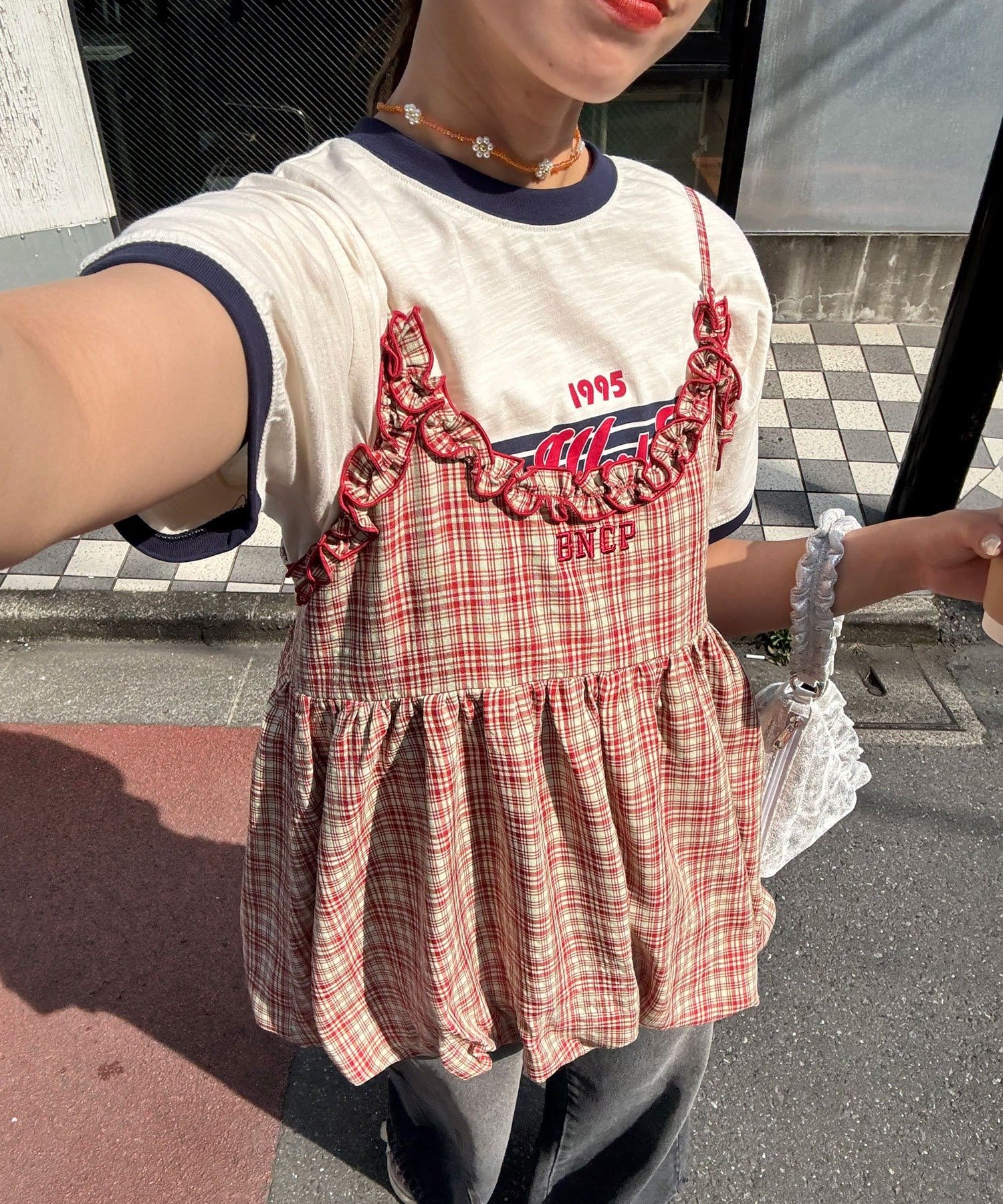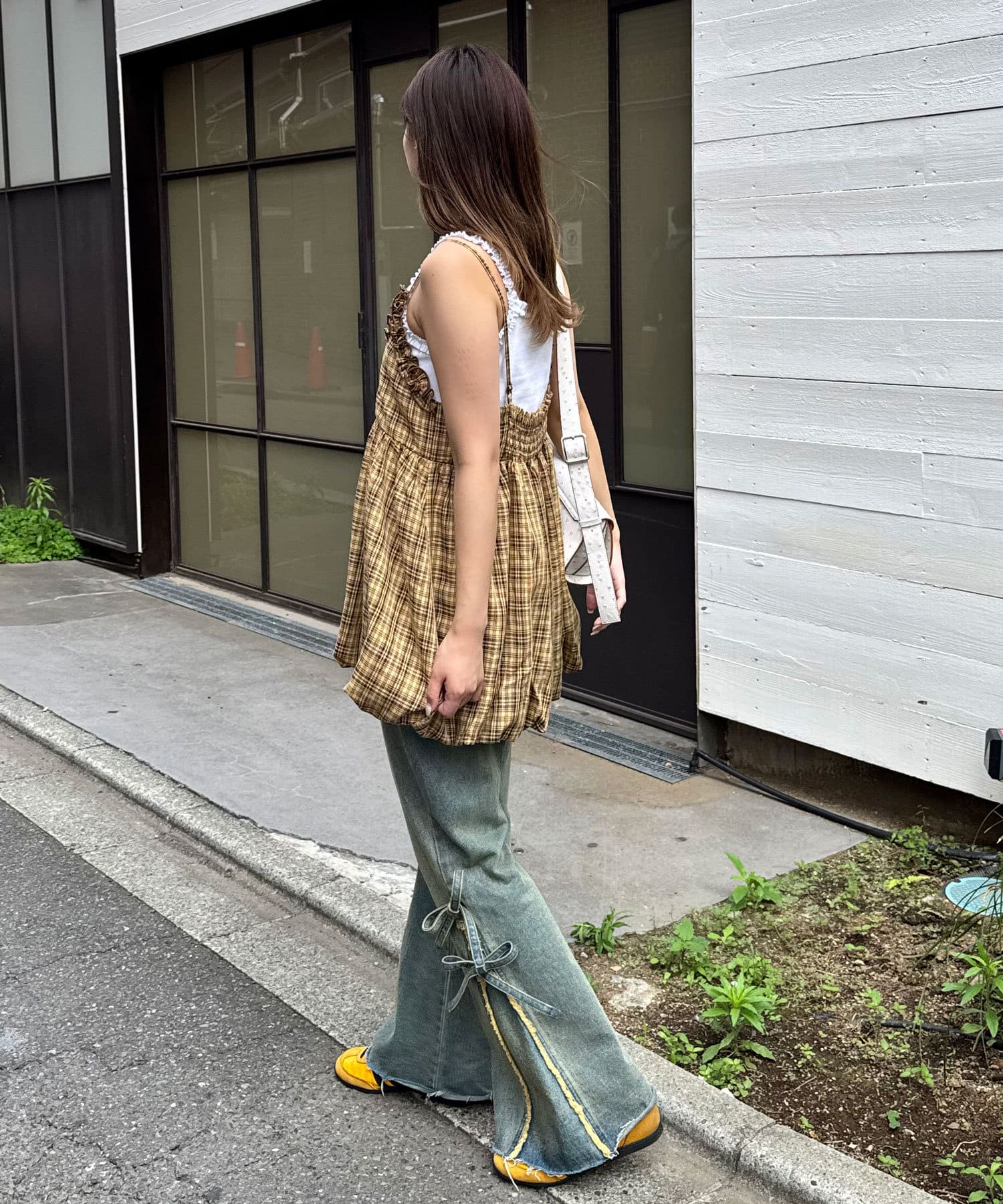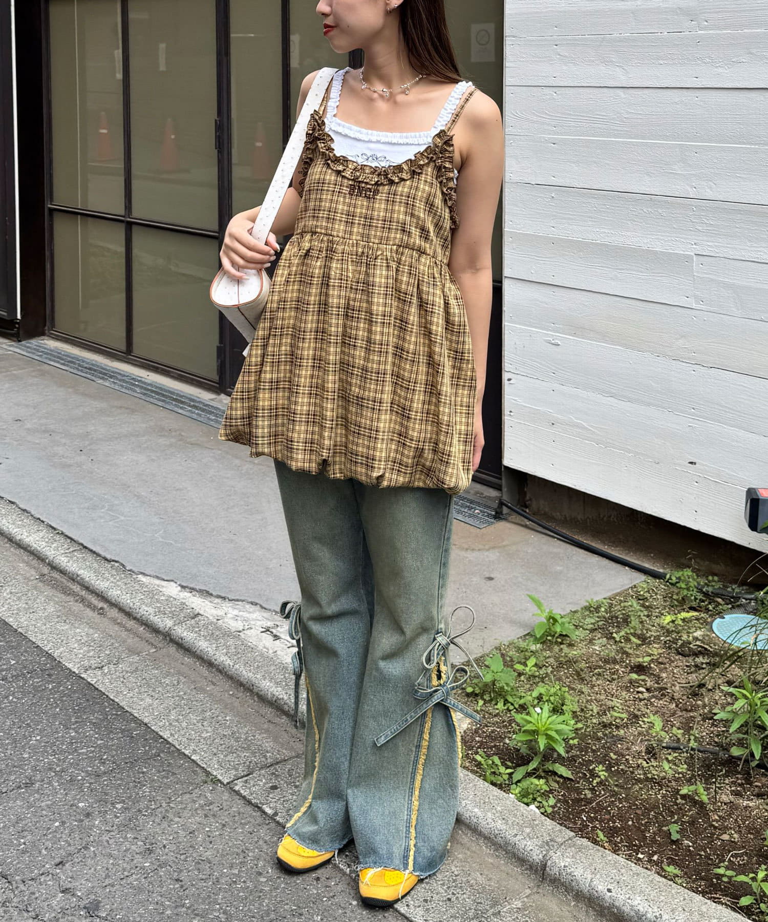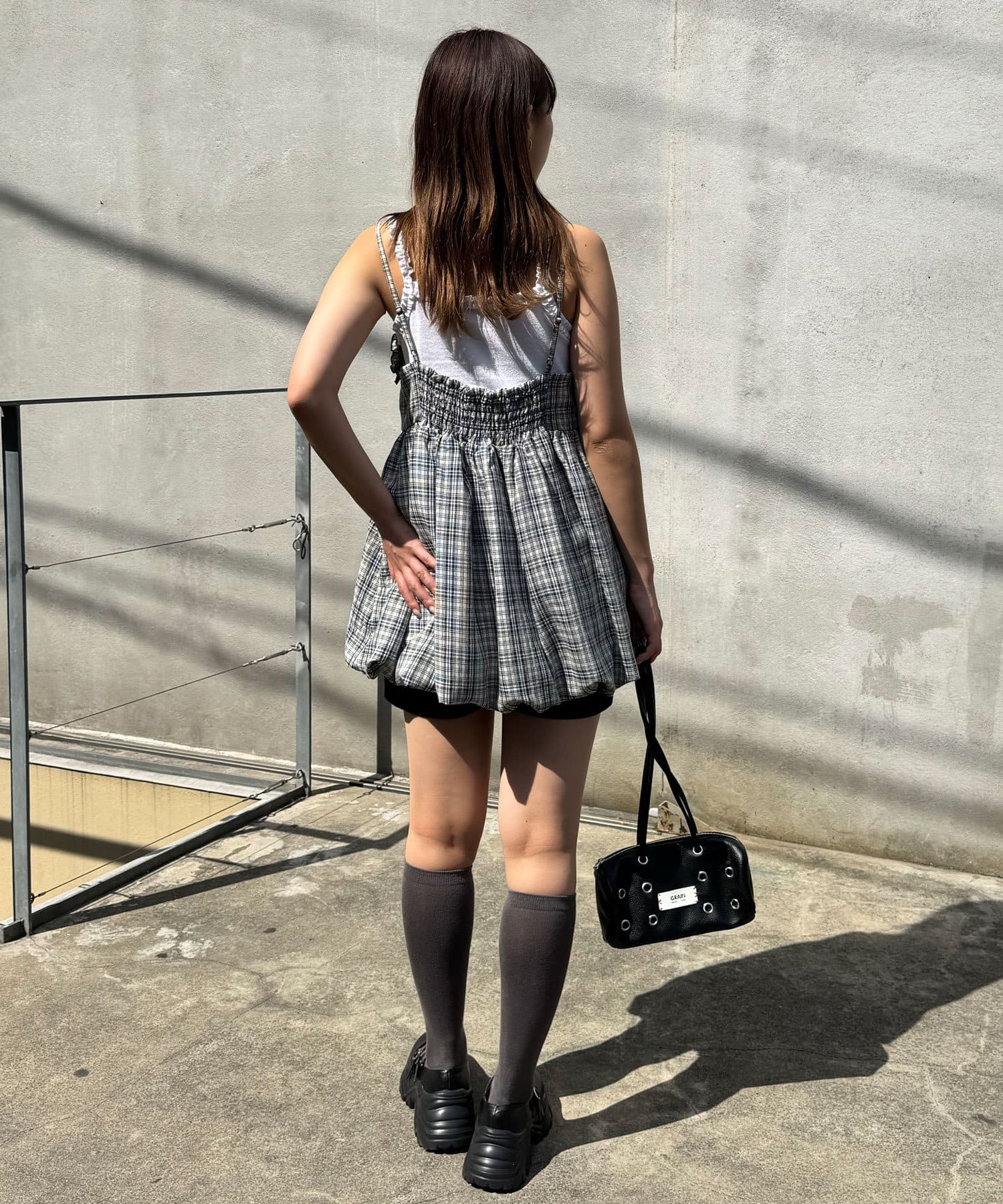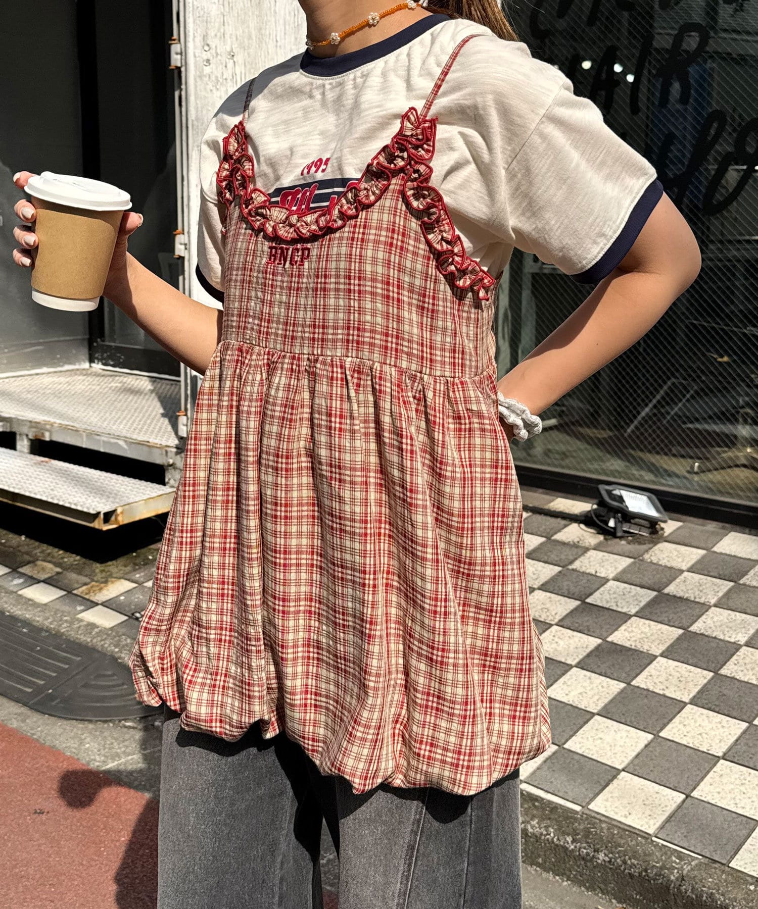 ふんわりバルーンシルエットのチェックビスチェ