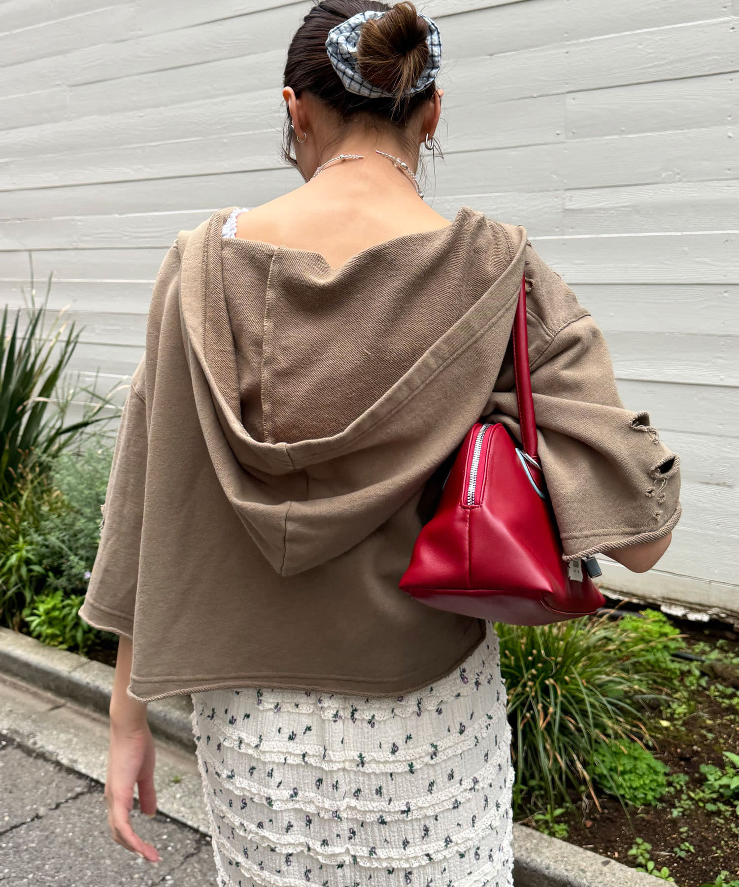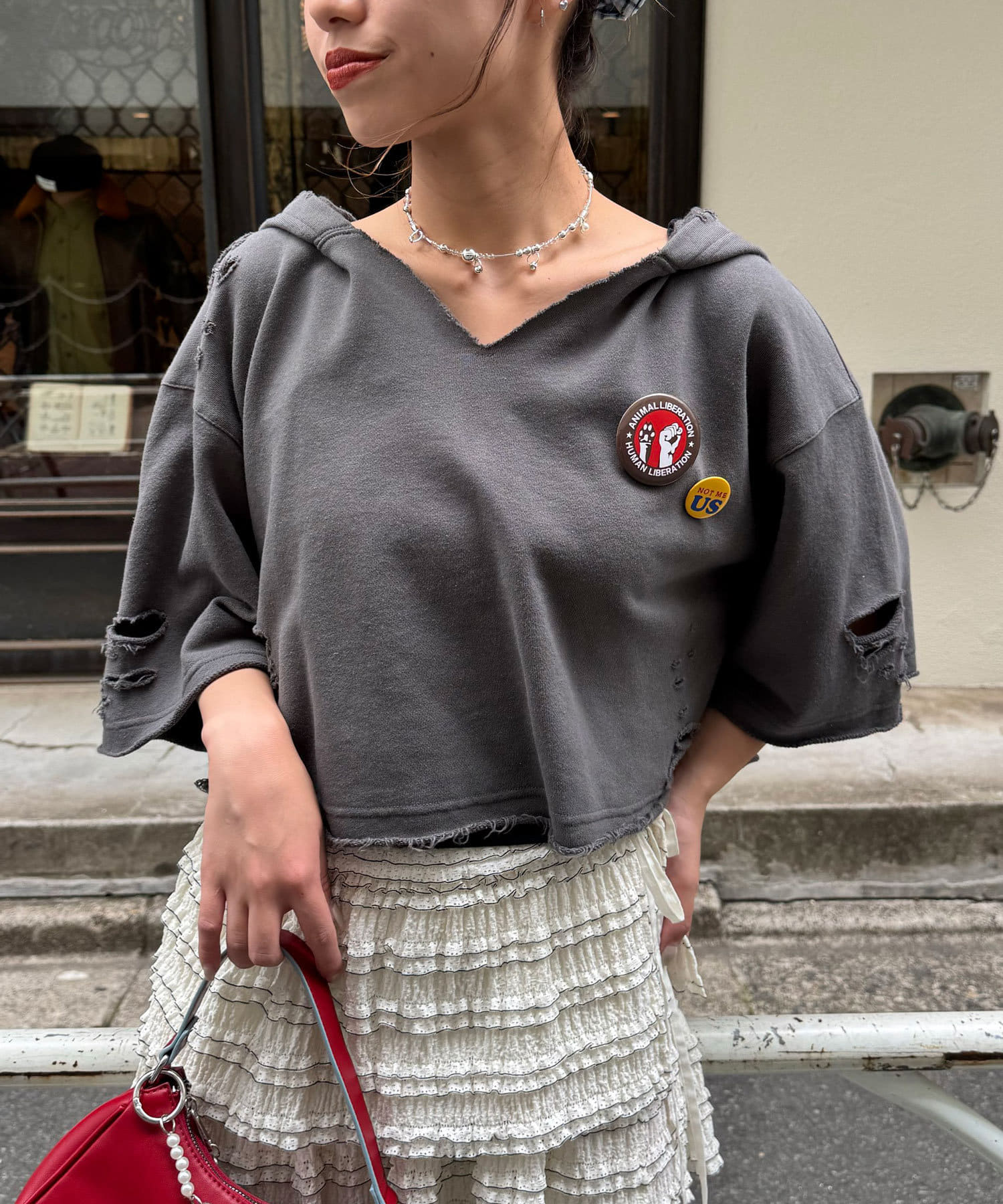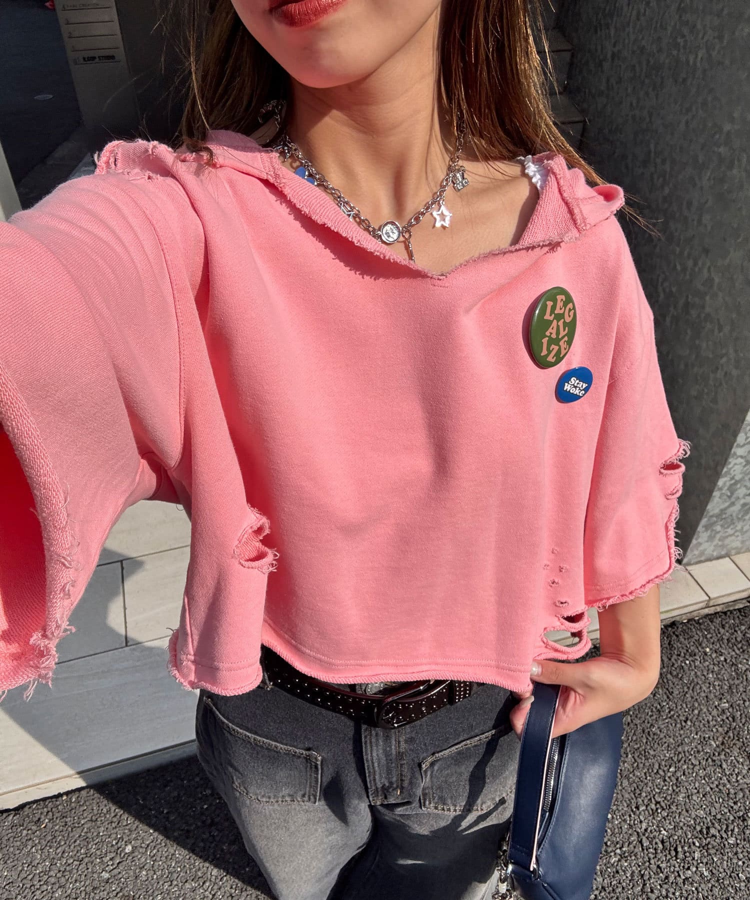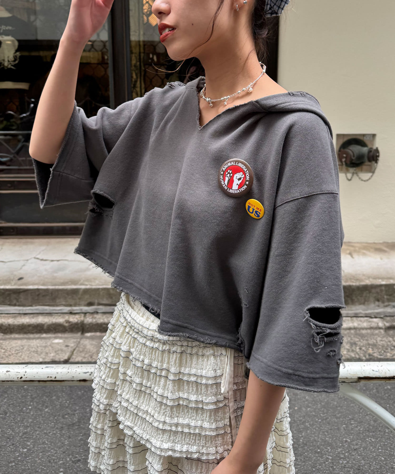 軽やかな裏毛素材で、夏でも快適に着られるダメージスウェットフーディー。