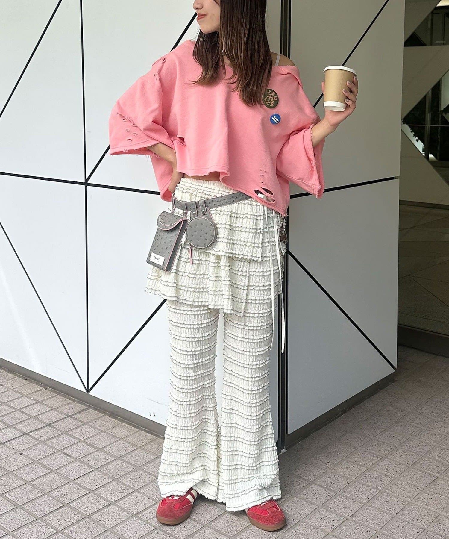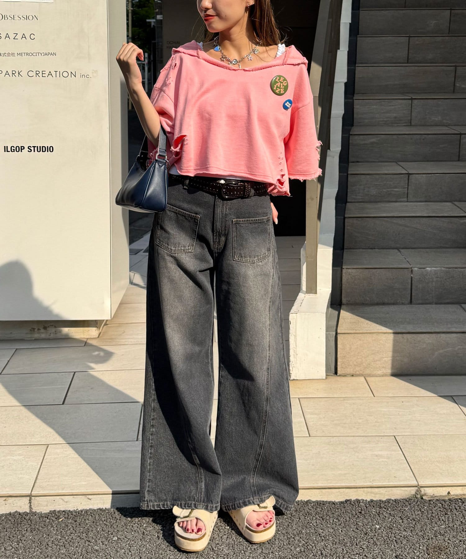 ガーリーなスカートと合わせて甘辛ミックスに、ワイドデニムでとことんラフに着崩すのも◎