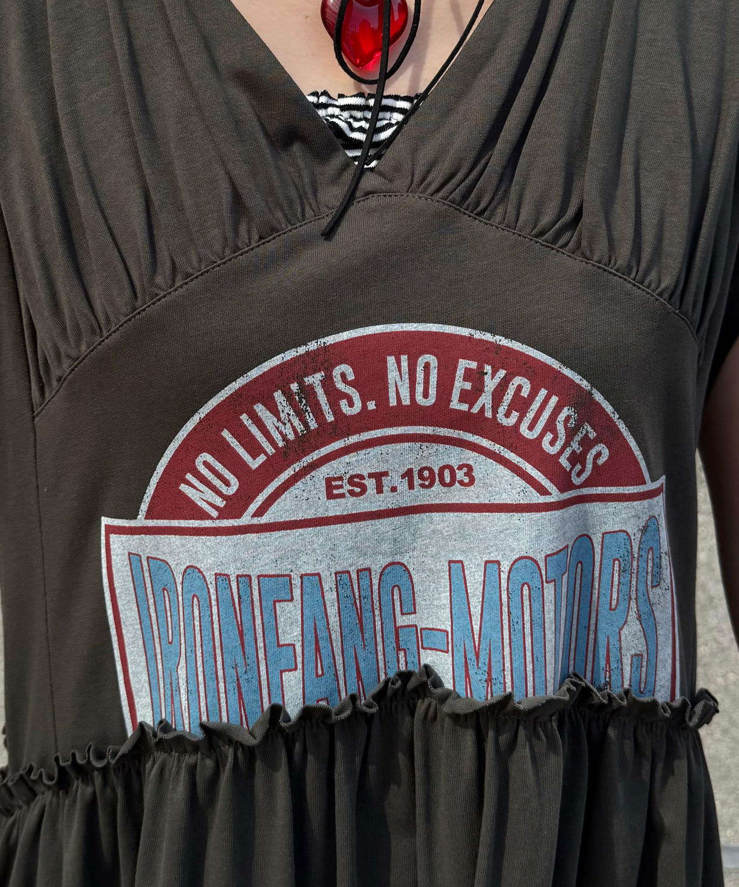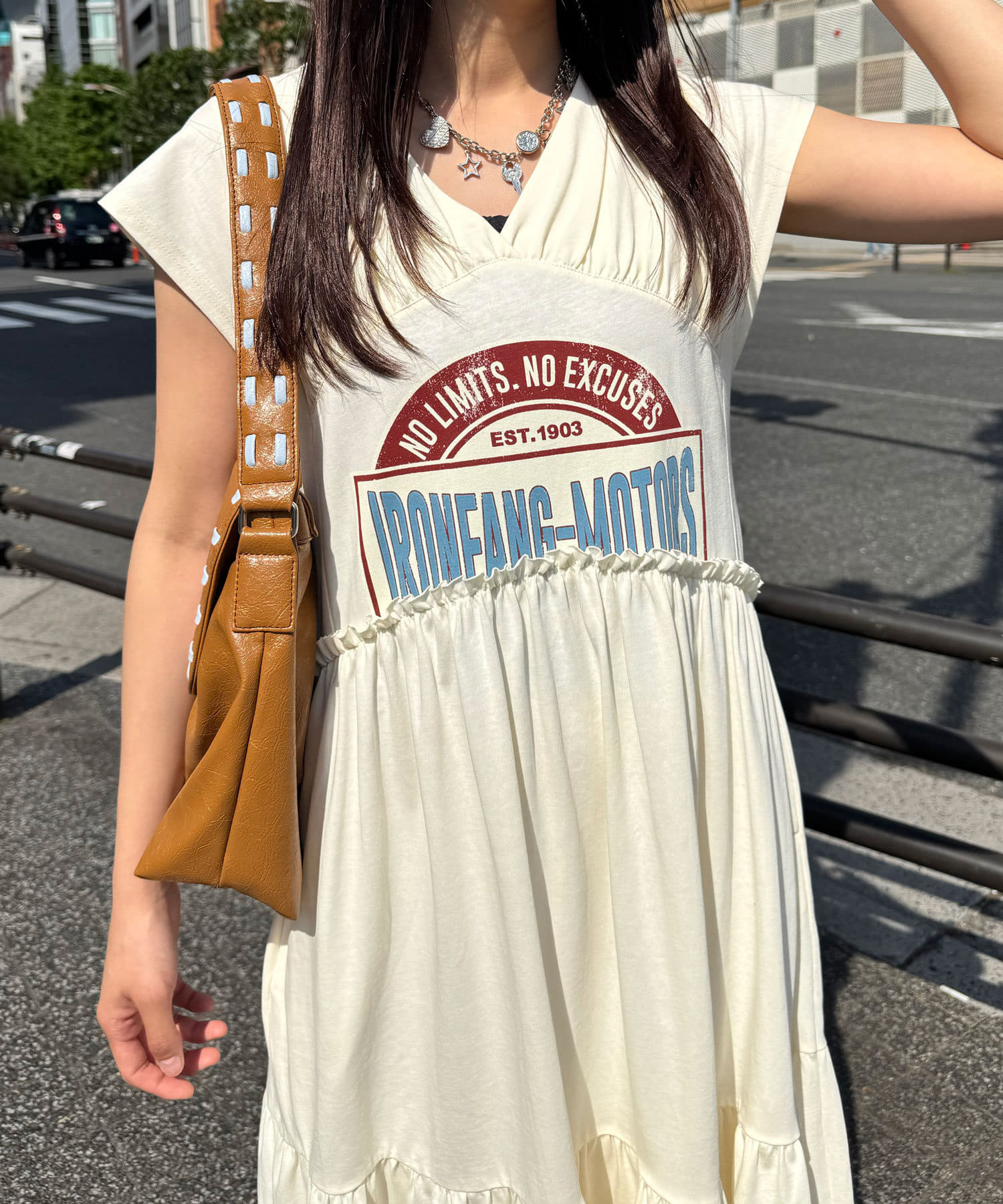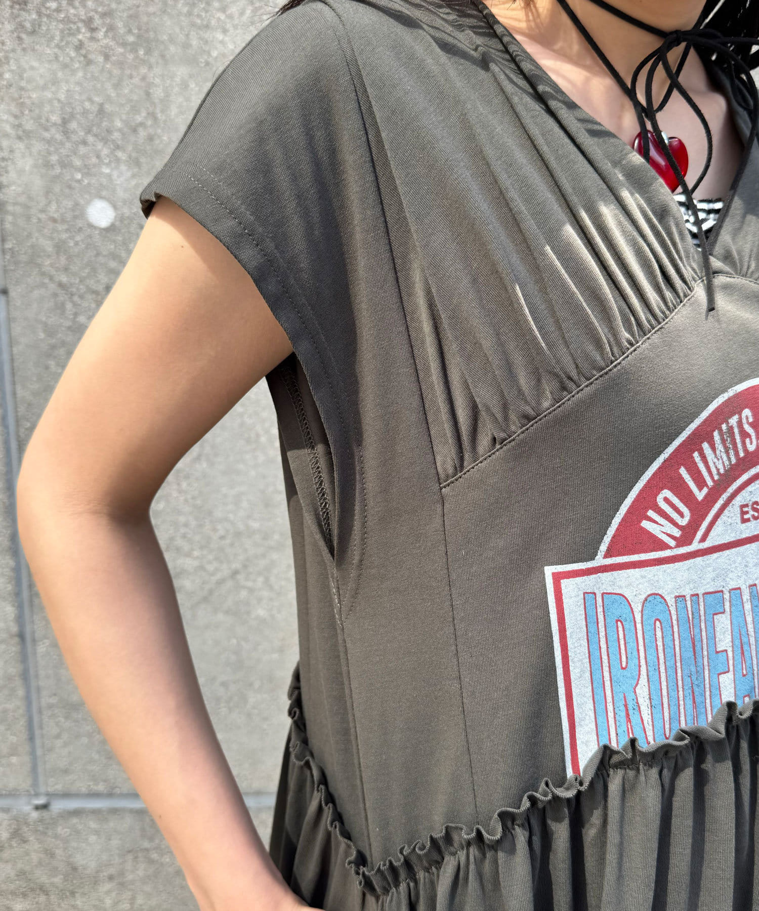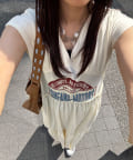 Vネック×高めのギャザー切り替えで、スタイルアップもばっちり。