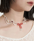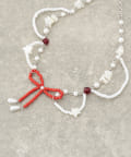 レッドのリボンモチーフが目を引く、遊び心たっぷりの甘めネックレス。