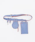 高見えするオーストリッチ風フェイクレザーが目を引く、マルチポーチ付きのベルトバッグ。