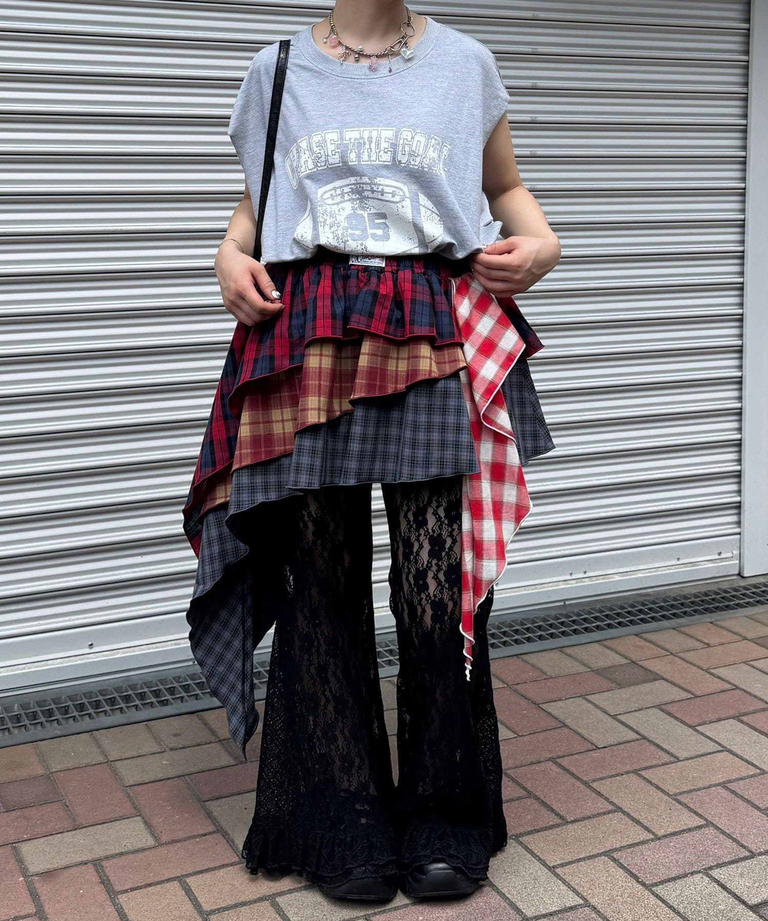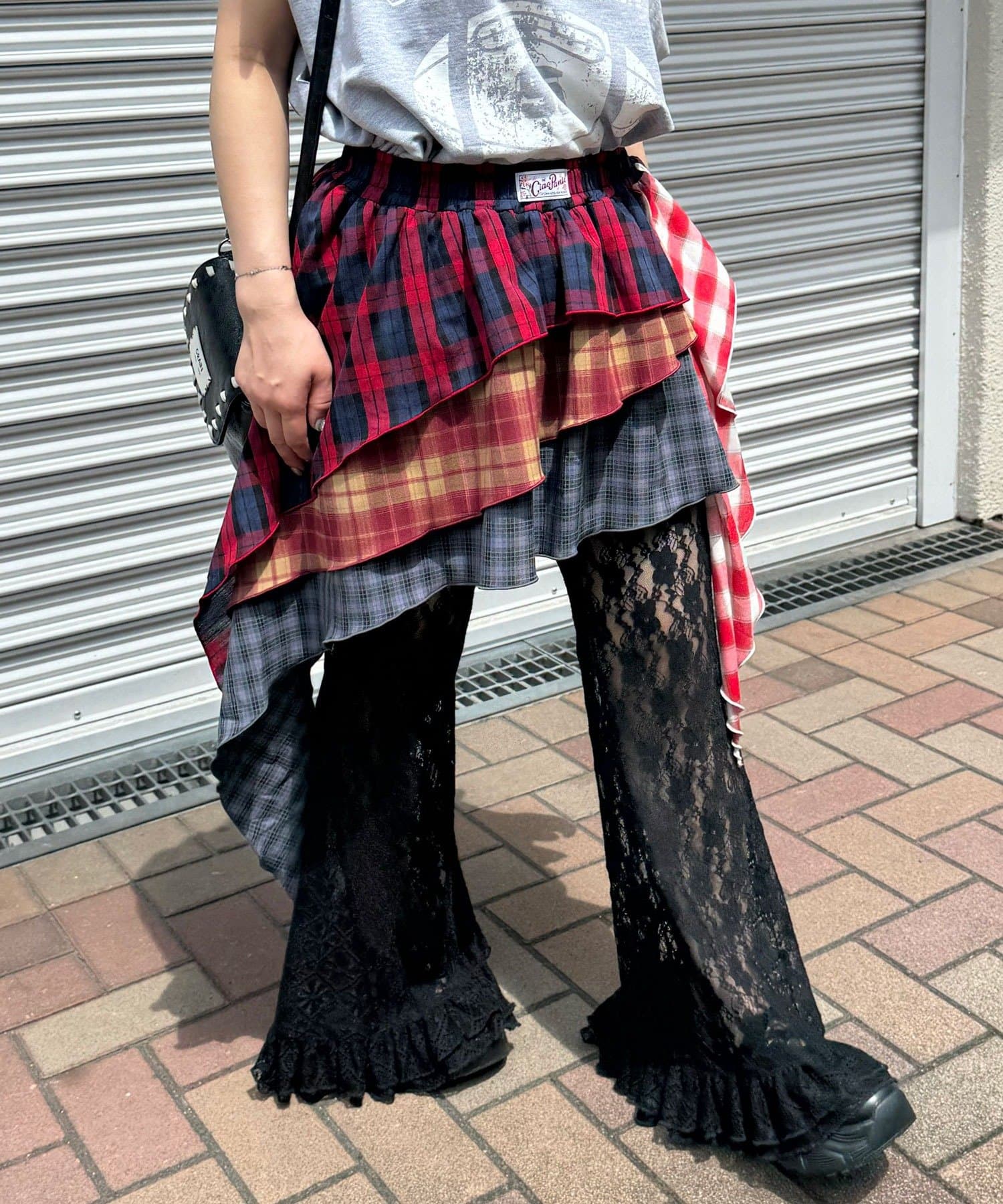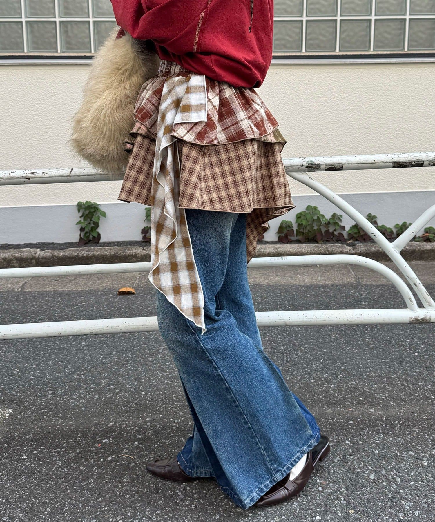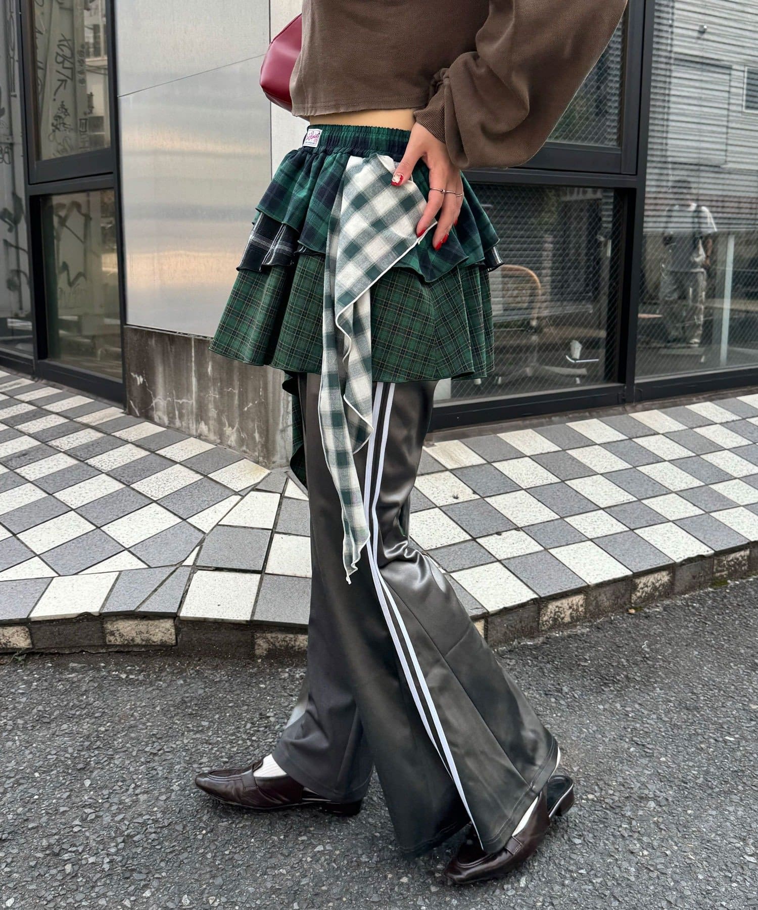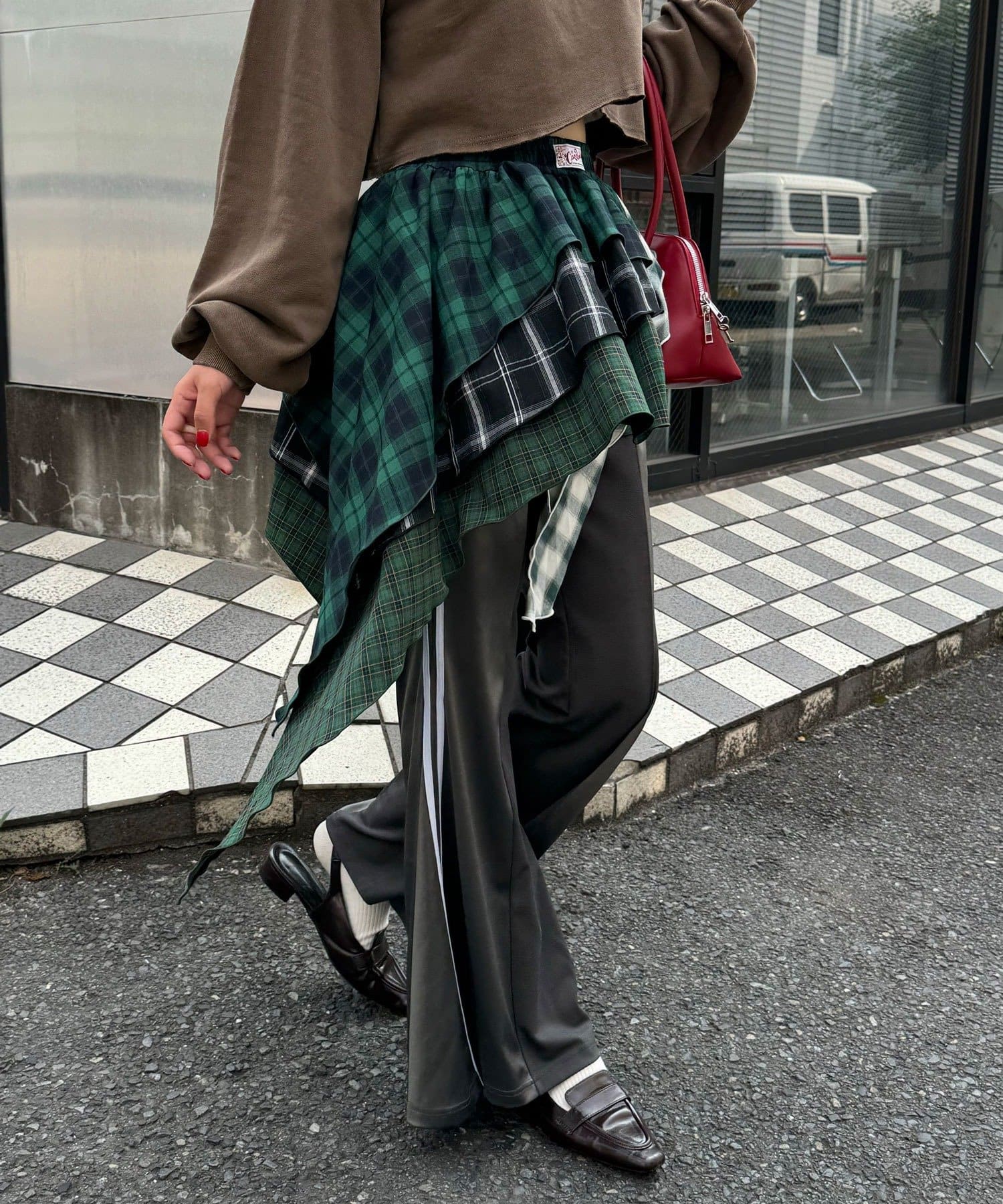 4種類のチェック柄を組み合わせた、視線を集めるティアードミニスカート。