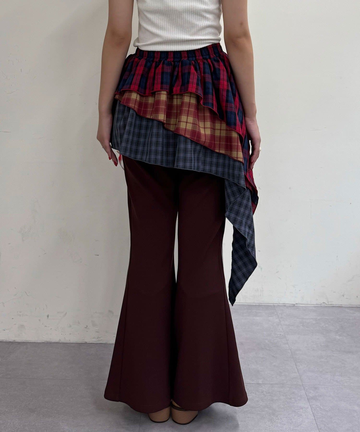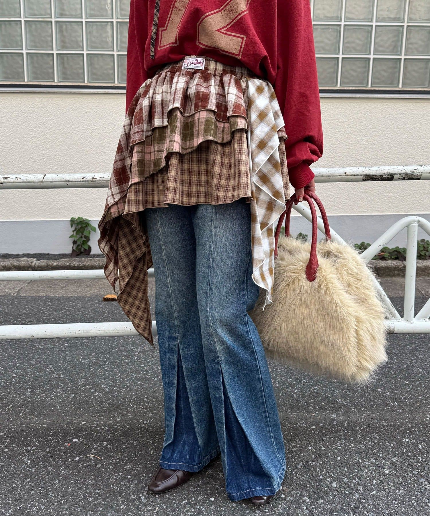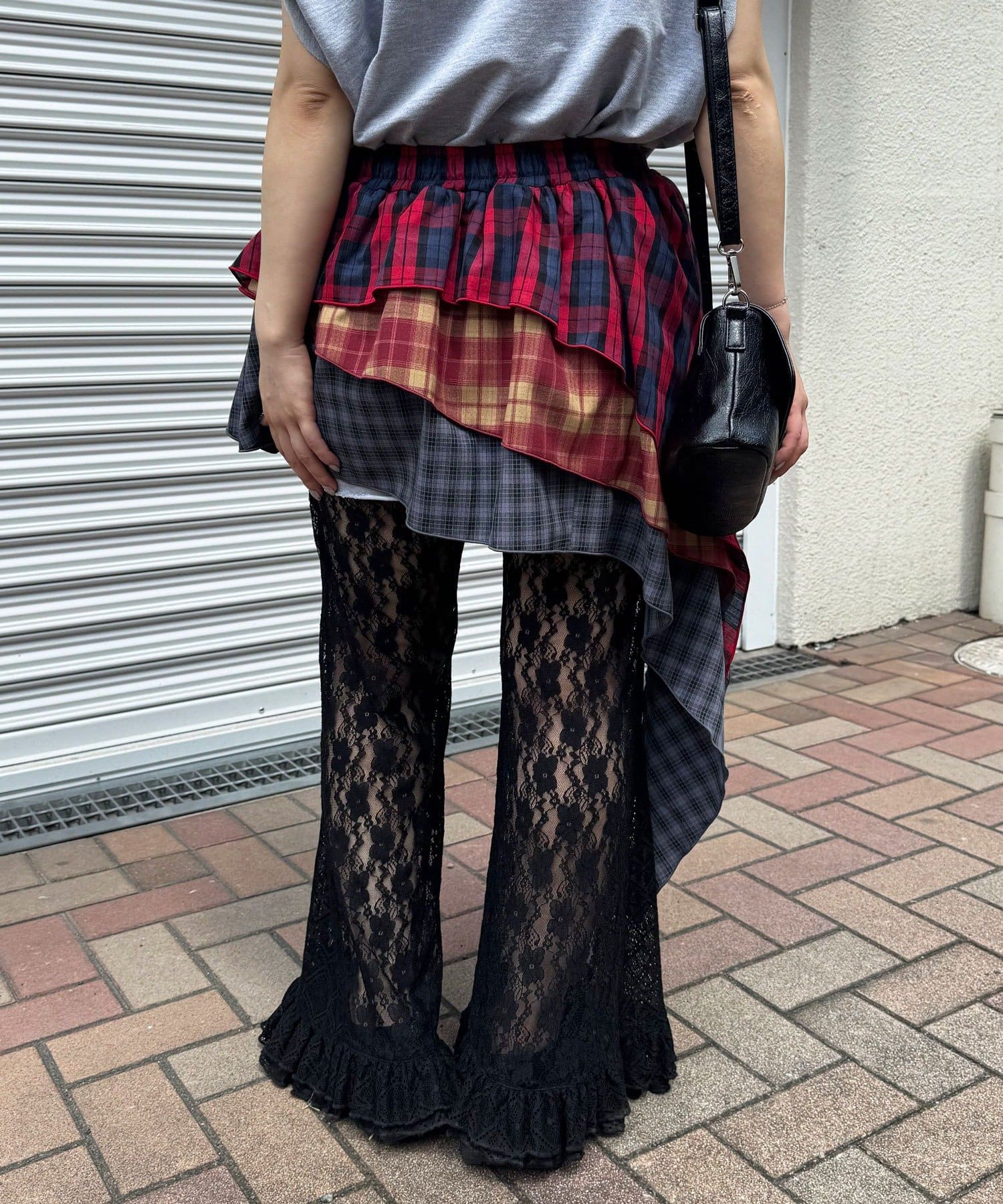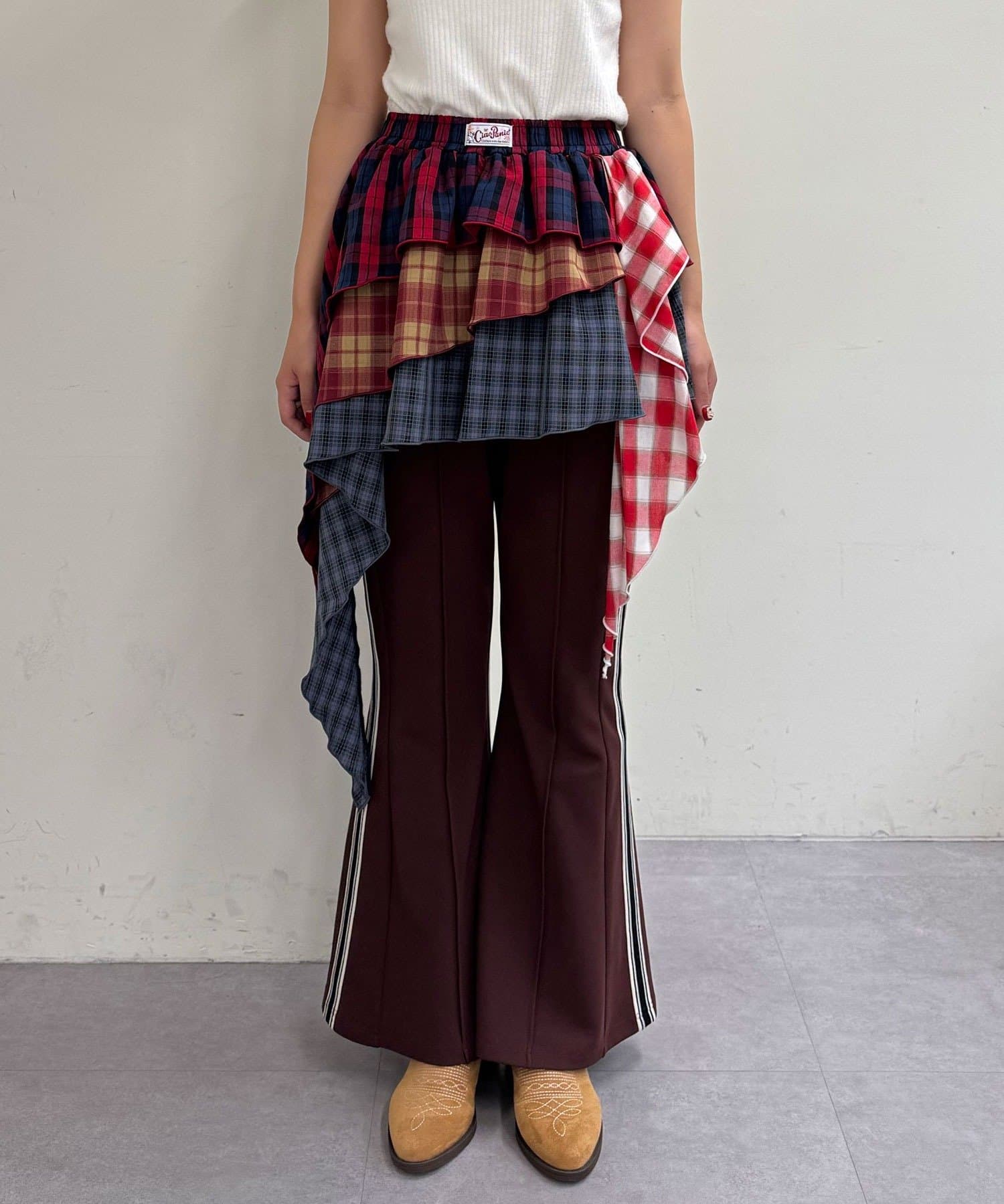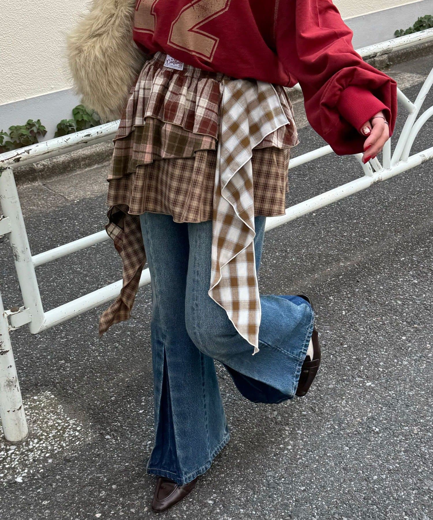 4種類のチェック柄を組み合わせた、視線を集めるティアードミニスカート。