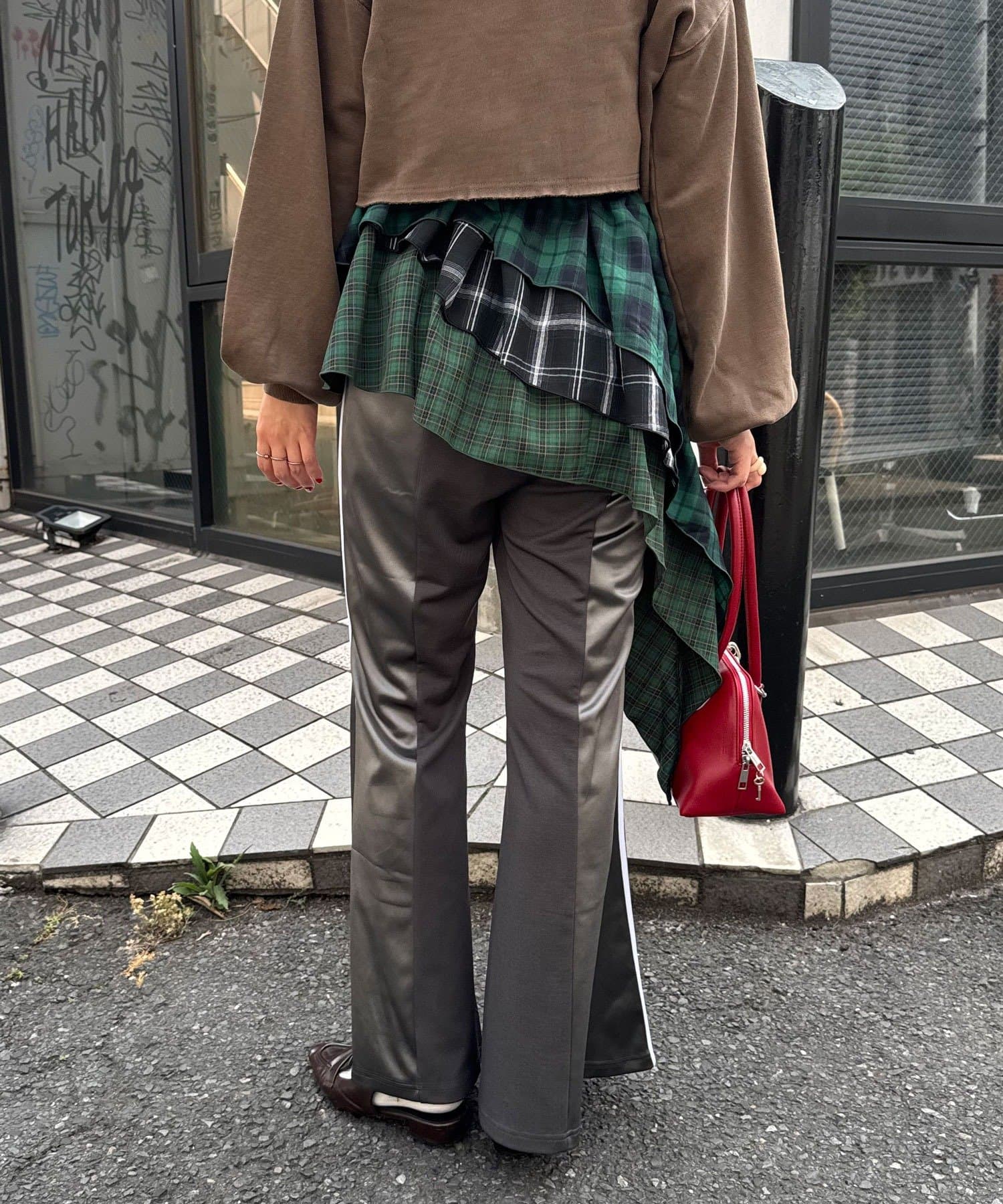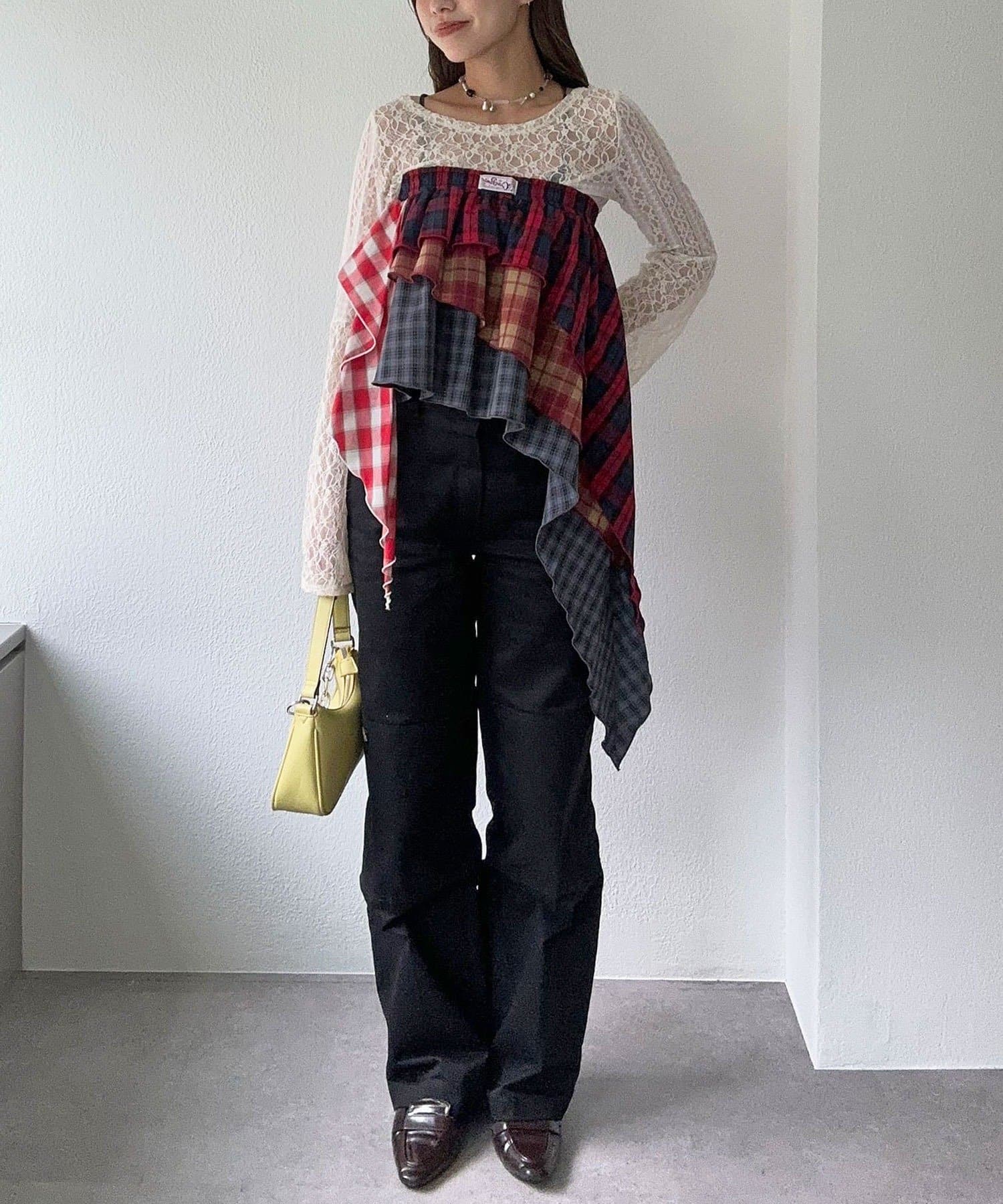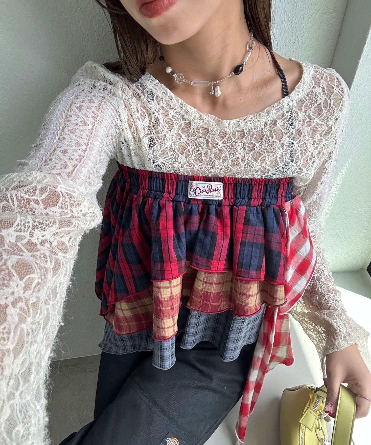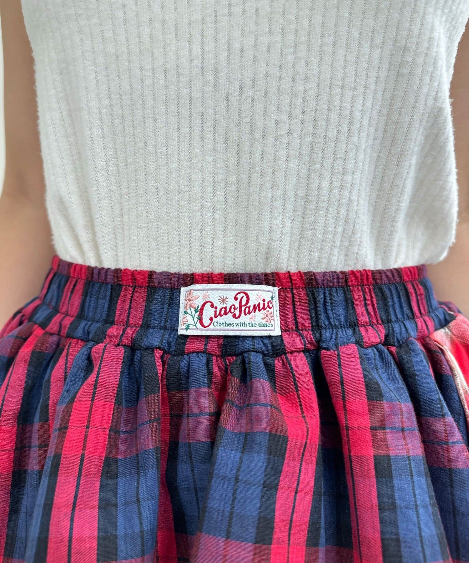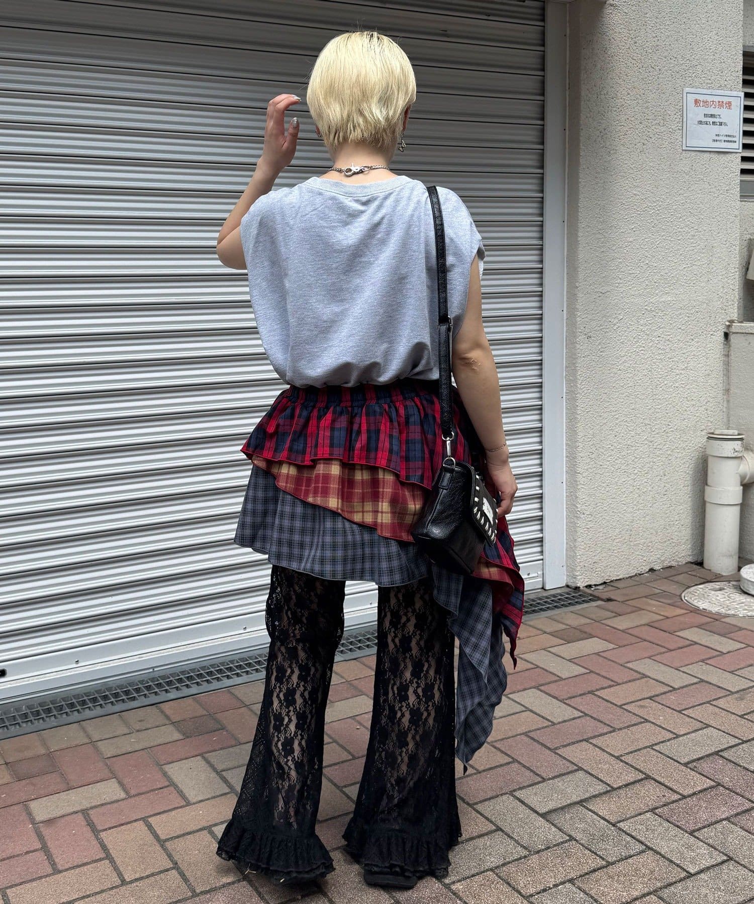 4種類のチェック柄を組み合わせた、視線を集めるティアードミニスカート。